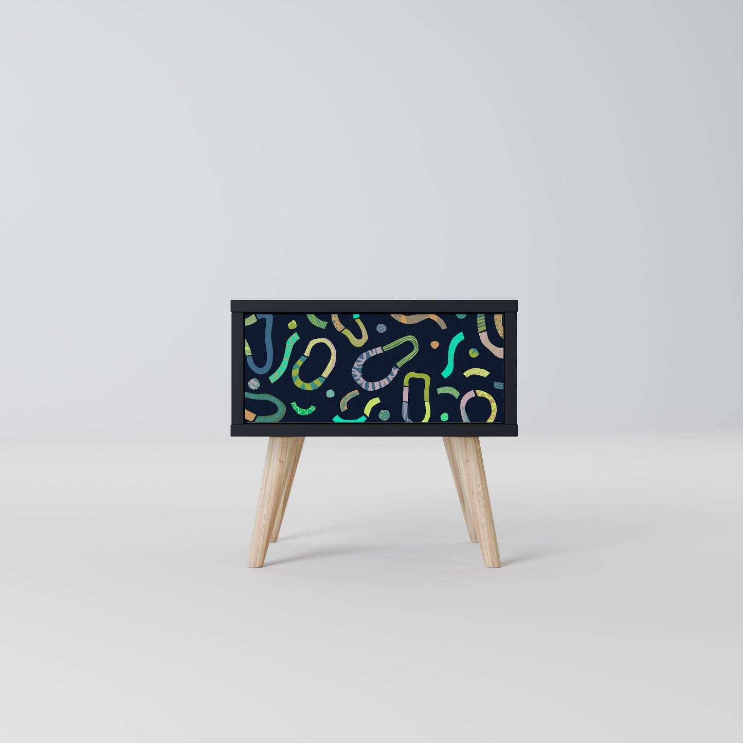 Scoprite raffinatezza e praticità in un design compatto con il nostro comodino con cassetto in un'elegante finitura nera. Questo mobile elegante e funzionale fonde stile contemporaneo e design minimalista, diventando un'aggiunta di grande impatto a qualsiasi camera da letto.