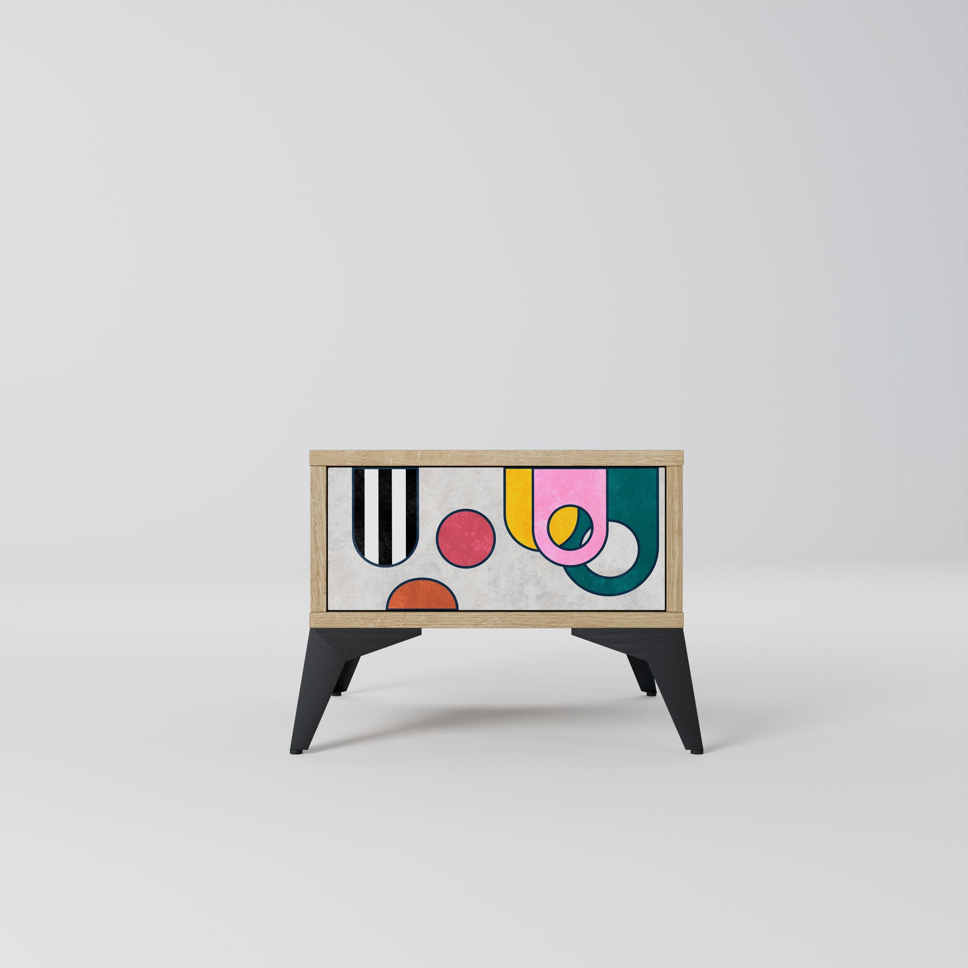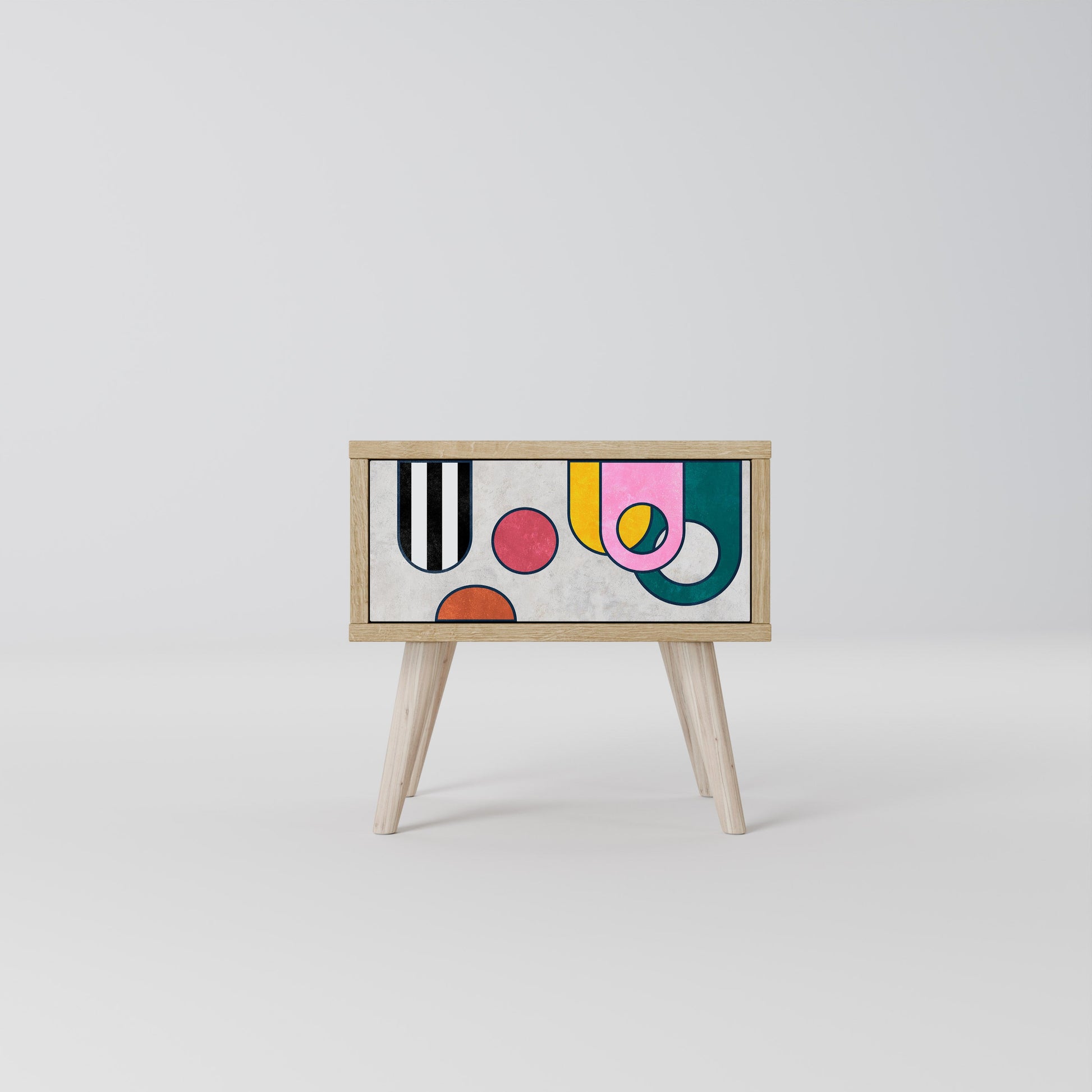 Scopri funzionalità ed eleganza in un formato compatto con il nostro comodino con cassetto. Questo mobile pratico ed elegante coniuga perfettamente la bellezza naturale del legno con il design moderno del frontale del cassetto, creando un elemento armonioso per qualsiasi camera da letto.