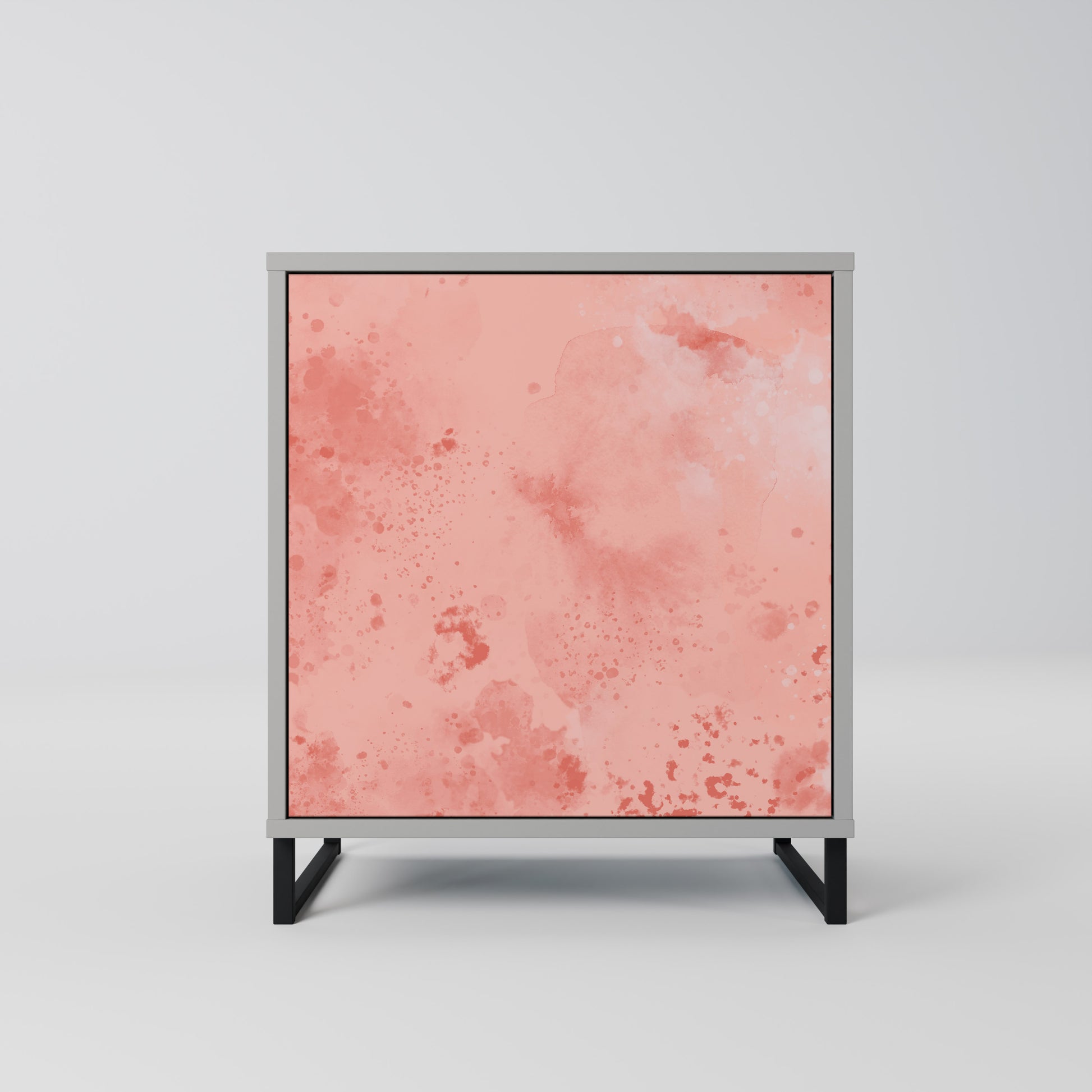 Questo mobile compatto ma straordinariamente elegante colpisce per il suo design minimalista, che si adatta perfettamente sia agli interni moderni che a quelli classici. Il tenue colore grigio della struttura conferisce al mobile un carattere discreto ma distintivo, mentre i frontali con una stampa esclusiva aggiungono un tocco artistico.