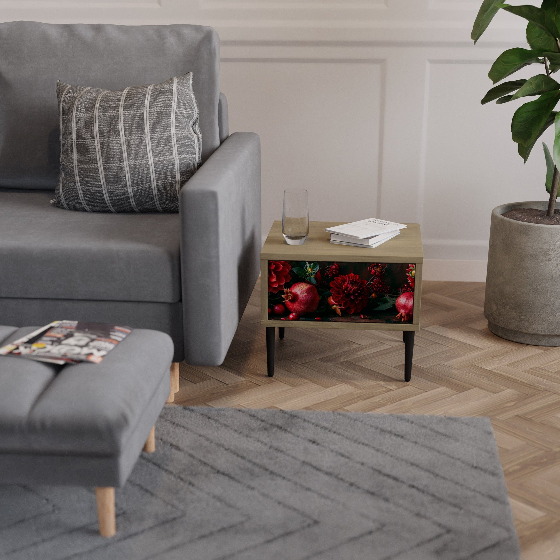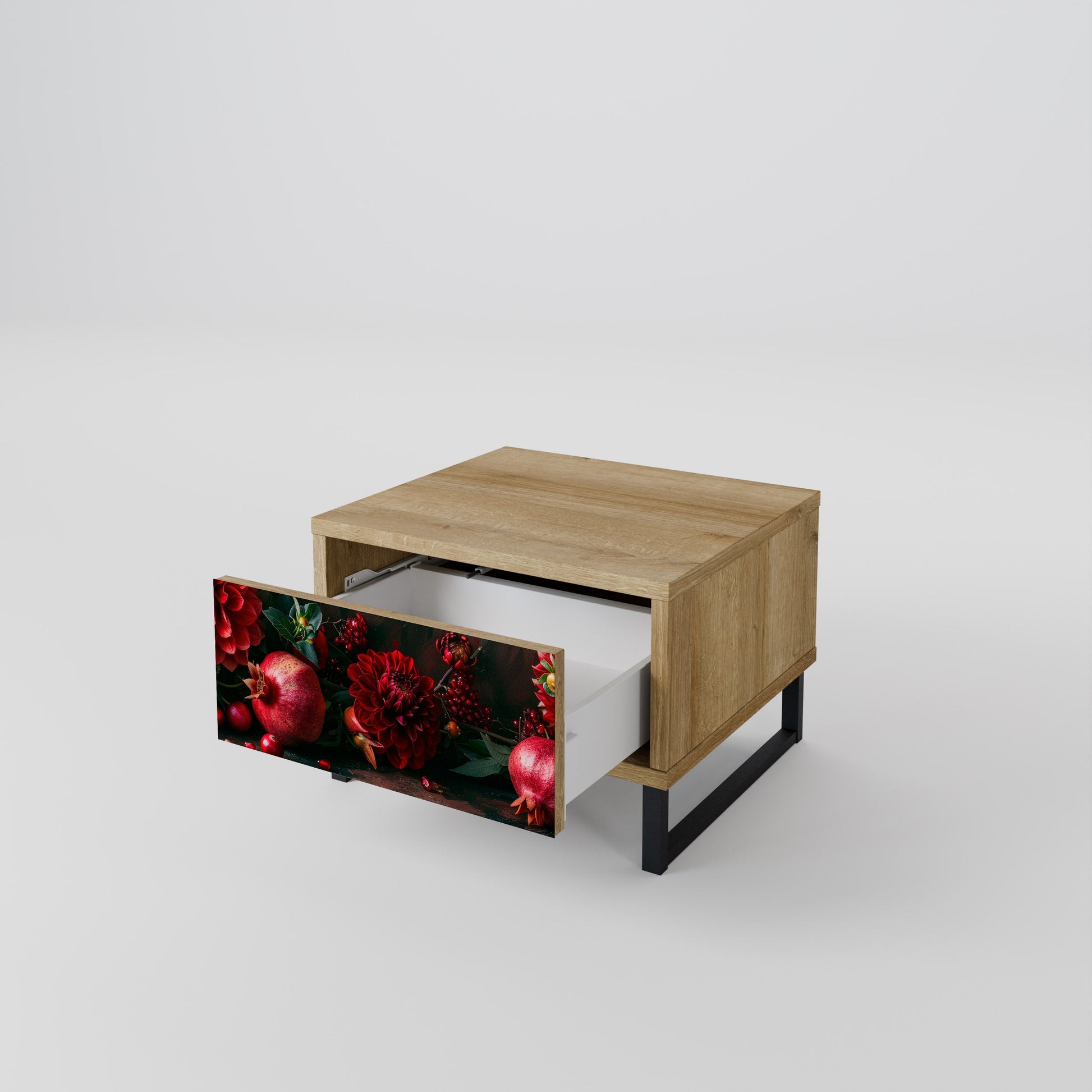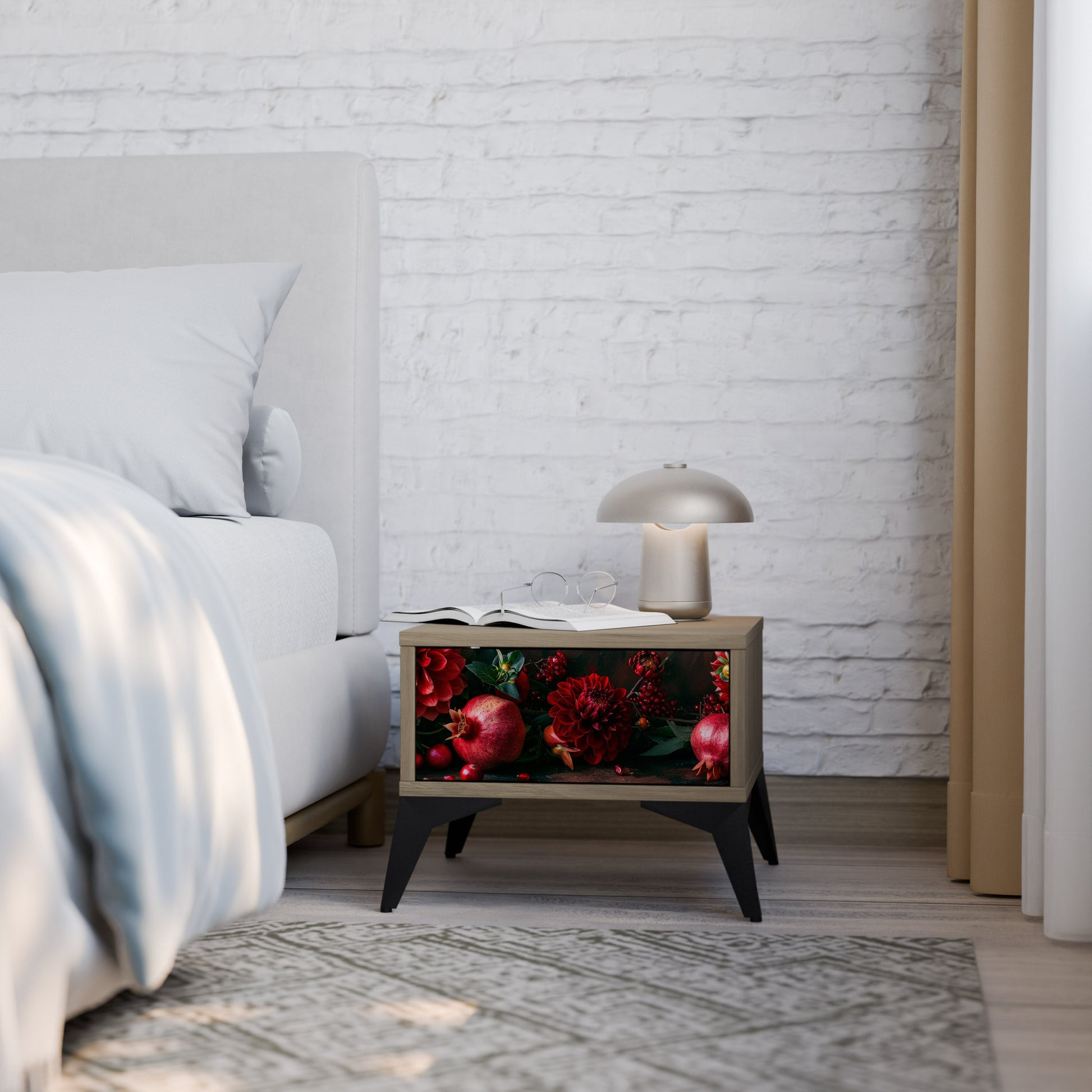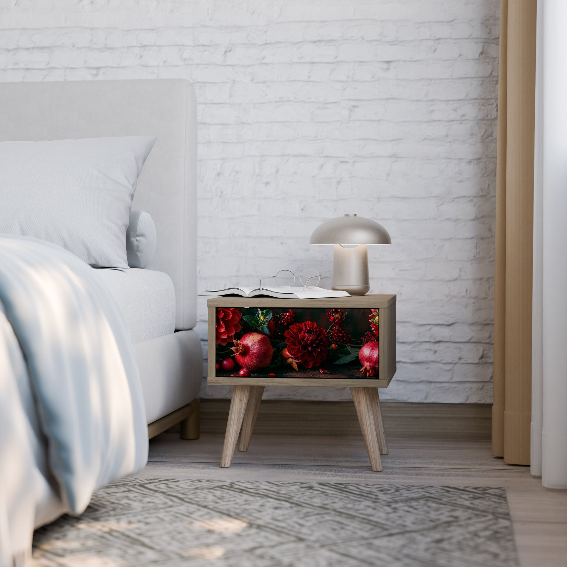 Comodino DAHLIAS AND POMEGRANATES in effetto rovere