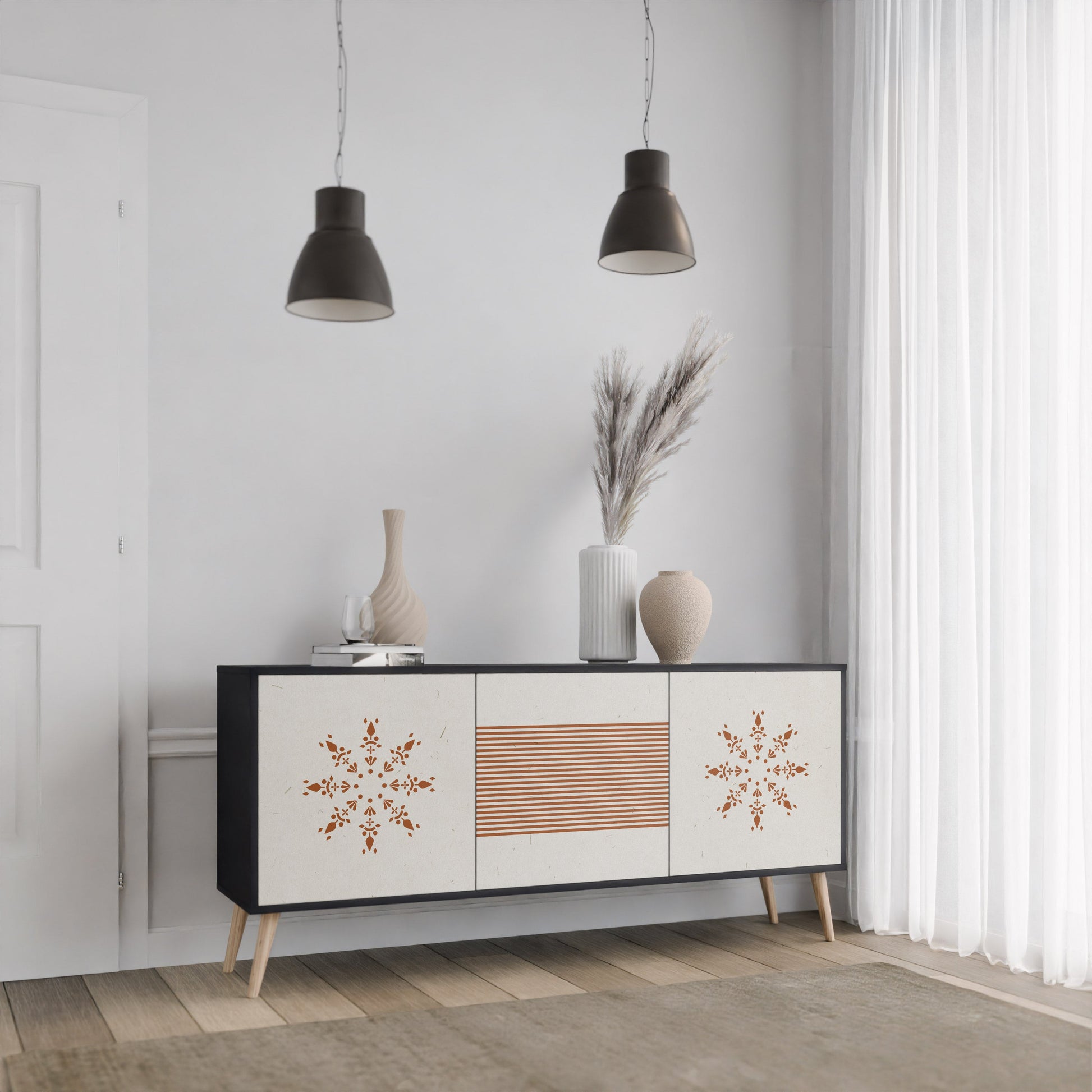 Eleganza e funzionalità in jednym meblu – nasza 3-drzwiowa komoda w czarnym korpusie to idealne rozwiązanie dla miłośników stylowych, nowoczesnych wnętrz. Il corpo di Czerń podkreśla wyrazisty charakter mebla, a fronty z unikalnym nadrukiem dodają artystycznego wyrazu. Doskonale sprawdzi się w salonie, sypialni czy gabinecie, zarówno w aranżacjach nowoczesnych, jak i industrialnych.