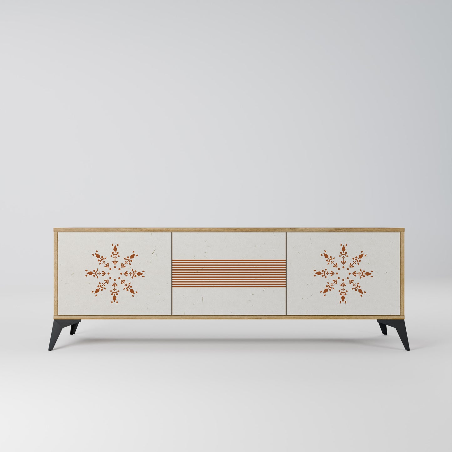 Scopri la soluzione perfetta per riporre e organizzare con il nostro mobile TV a 3 ante. Realizzato con materiali resistenti, che combinano gambe in legno con un corpo laminato, questo mobile è sia elegante che funzionale. Le ante in legno con una stampa accattivante aggiungono un tocco di eleganza, rendendolo una scelta eccellente per qualsiasi interno.