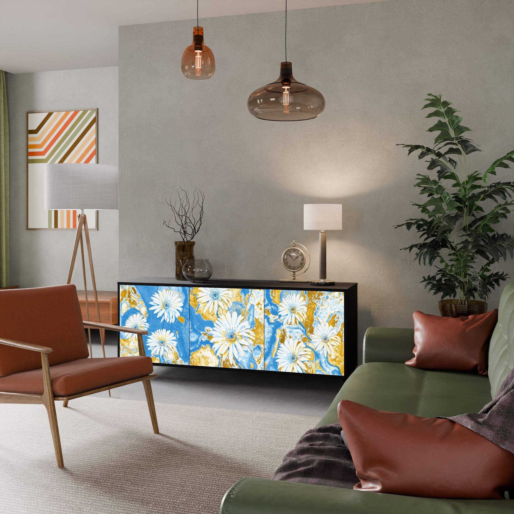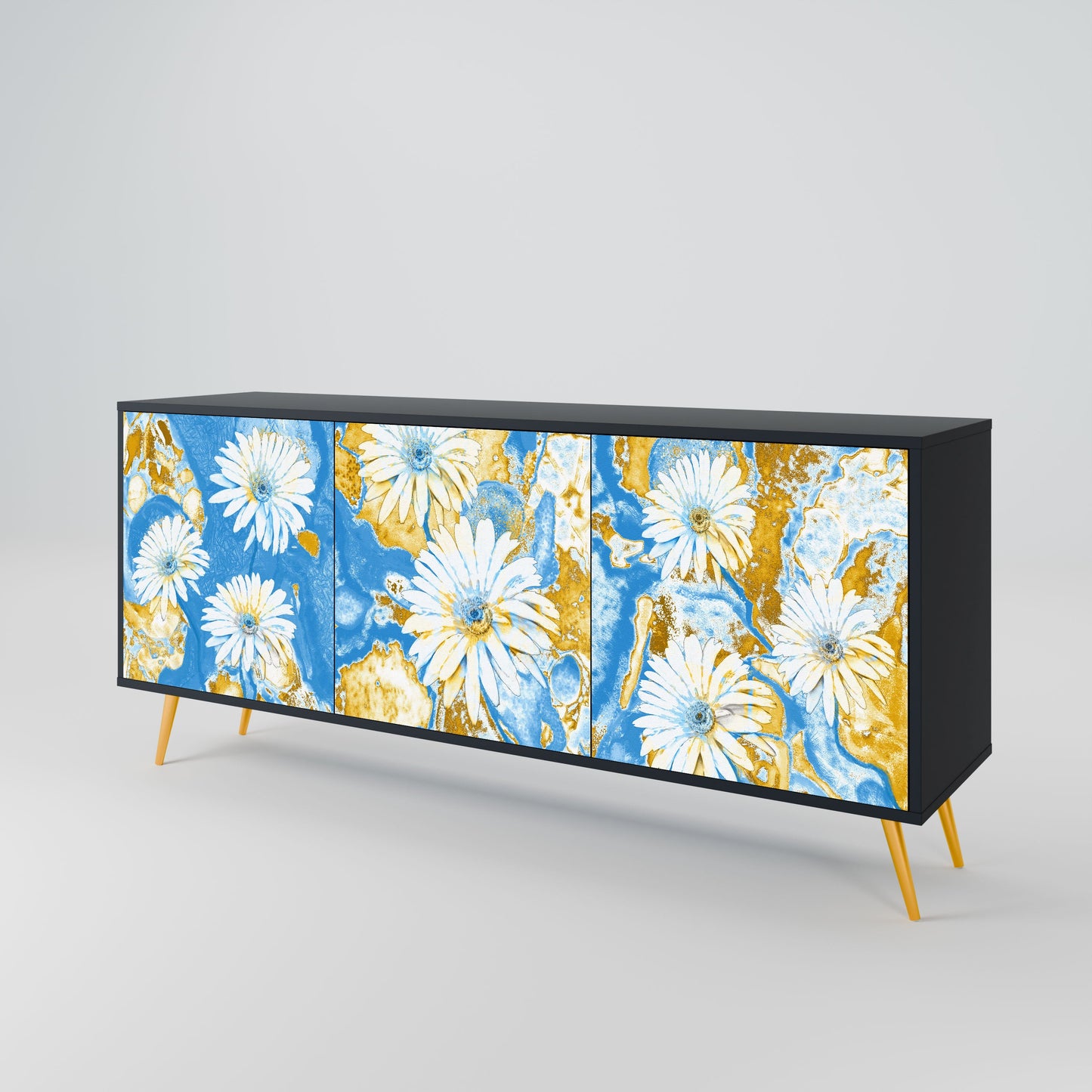 Eleganza e funzionalità in un unico mobile: la nostra credenza a 3 ante con corpo nero è la soluzione perfetta per gli amanti degli interni eleganti e moderni. Il corpo nero enfatizza il carattere audace del mobile, mentre i frontali con una stampa unica aggiungono un tocco artistico. Si adatta perfettamente al soggiorno, alla camera da letto o all'ufficio, completando sia gli arrangiamenti moderni che quelli industriali.