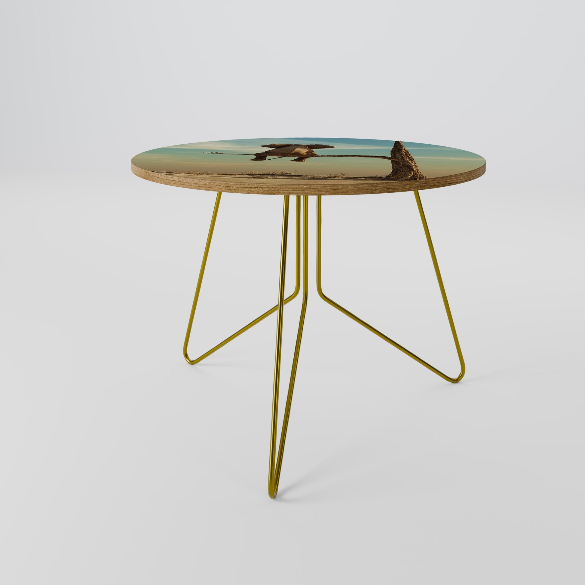 - Gambe con pinna dorata / Bordo del piano del tavolo effetto rovere