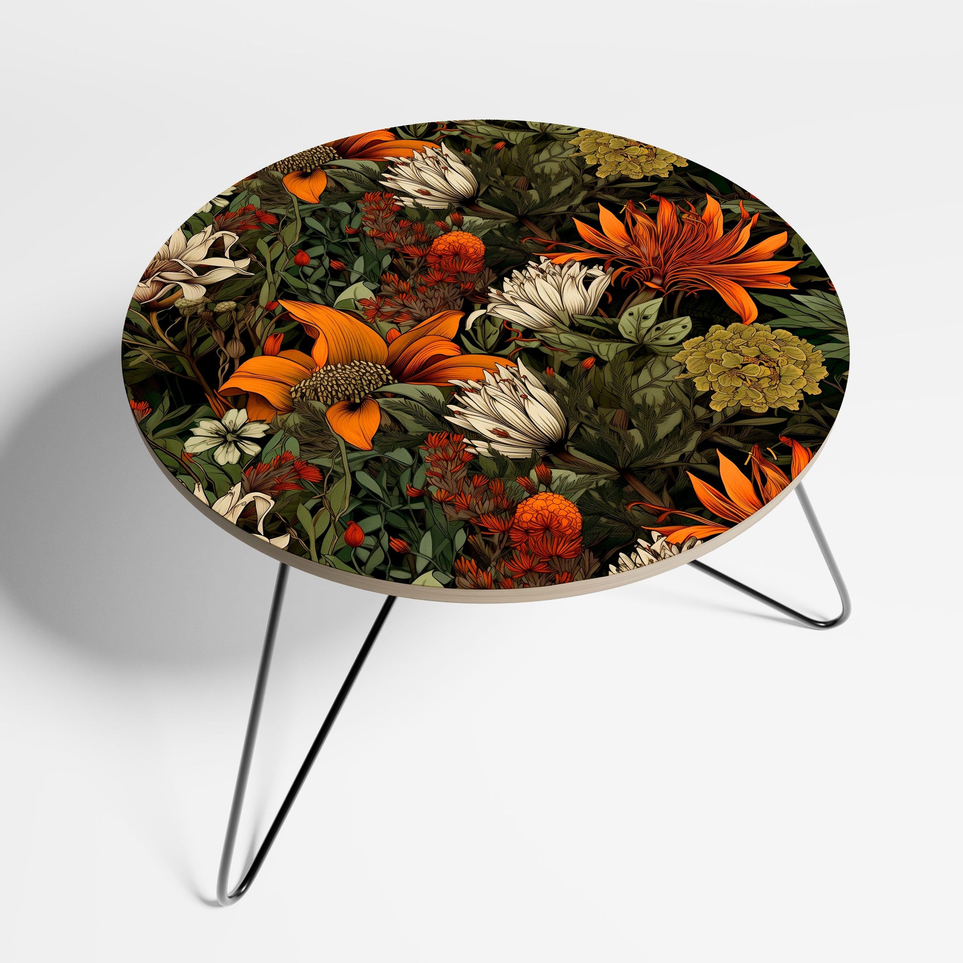 Il piano del tavolo presenta un motivo stampato di alta qualità, che aggiunge un tocco artistico distintivo al tuo spazio. Realizzato in resistente truciolato rivestito in laminato, garantisce un utilizzo duraturo e resistenza all'usura quotidiana.