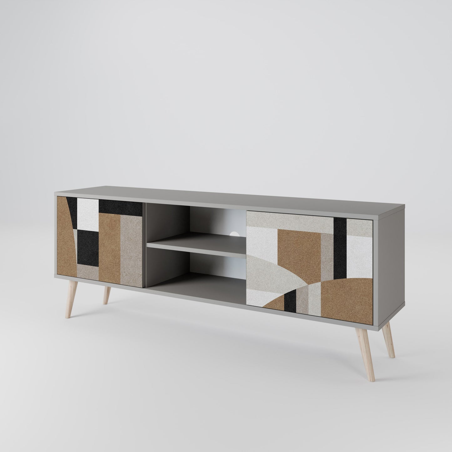 La struttura grigia conferisce al mobile TV un aspetto contemporaneo e raffinato, mentre i frontali con una stampa eccezionale catturano l'attenzione, diventando il punto focale di ogni stanza. L'ampio spazio interno offre spazio per dispositivi elettronici, cavi, telecomandi e altri accessori, aiutando a mantenere ordine e organizzazione.