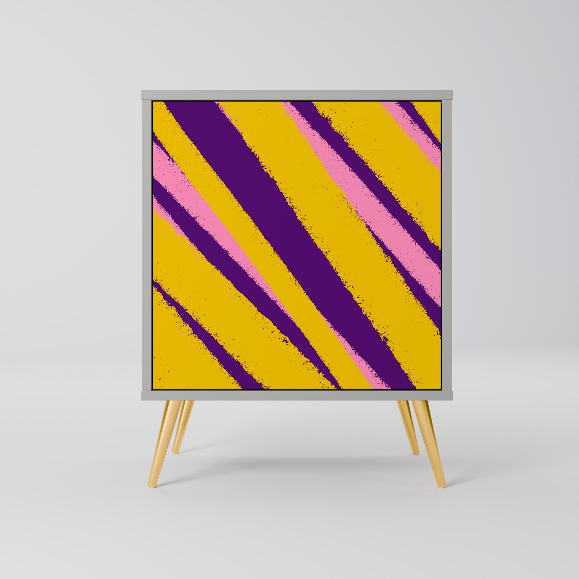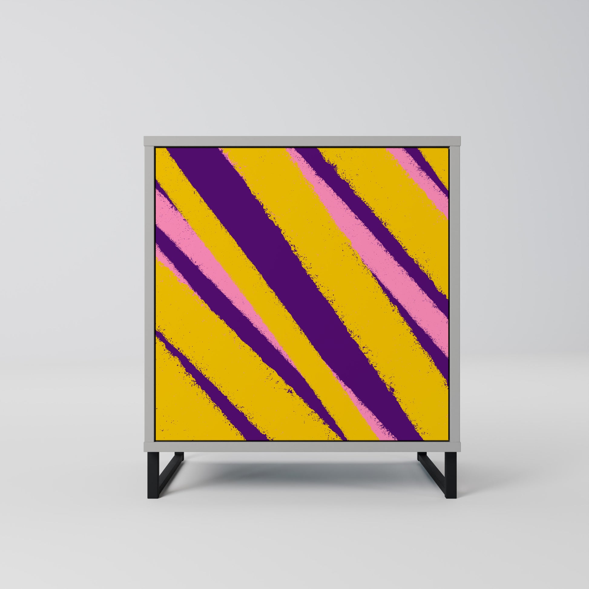 Questo mobile compatto ma straordinariamente elegante colpisce per il suo design minimalista, che si adatta perfettamente sia agli interni moderni che a quelli classici. Il tenue colore grigio della struttura conferisce al mobile un carattere discreto ma distintivo, mentre i frontali con una stampa esclusiva aggiungono un tocco artistico.