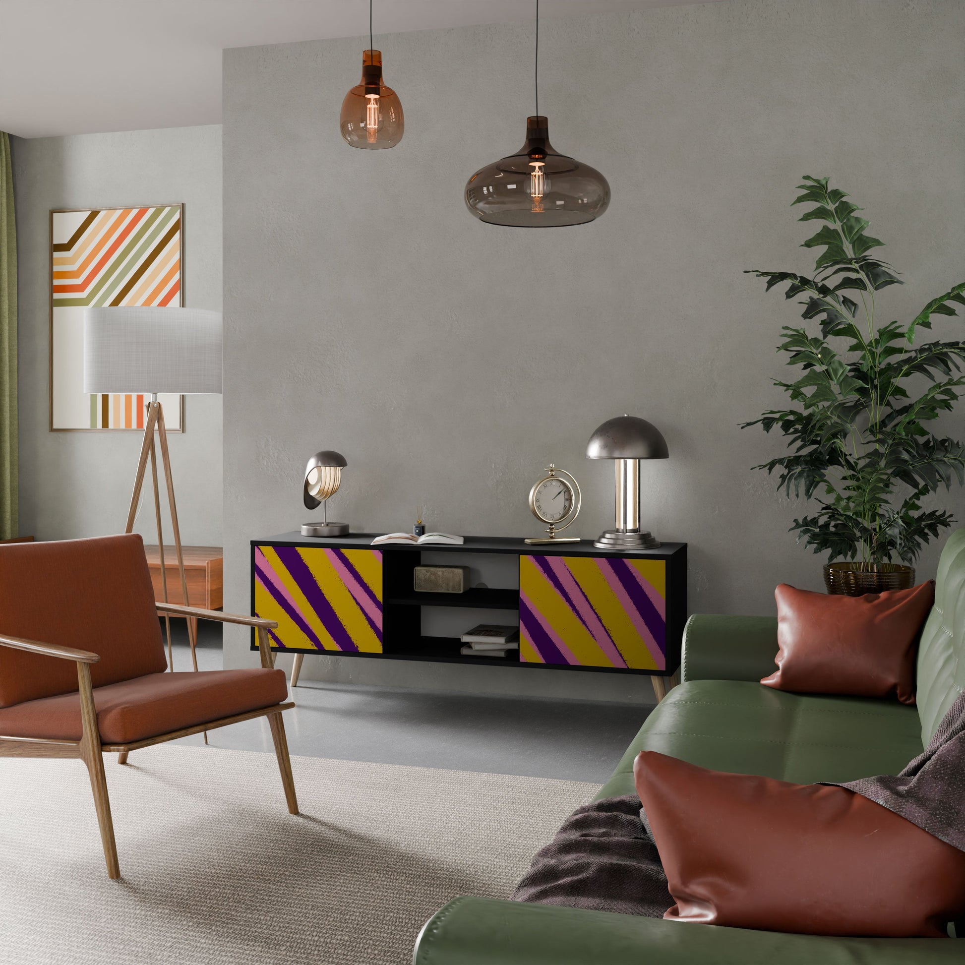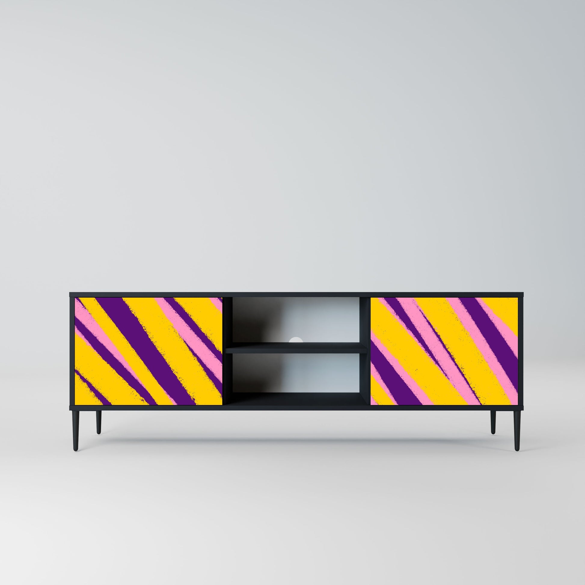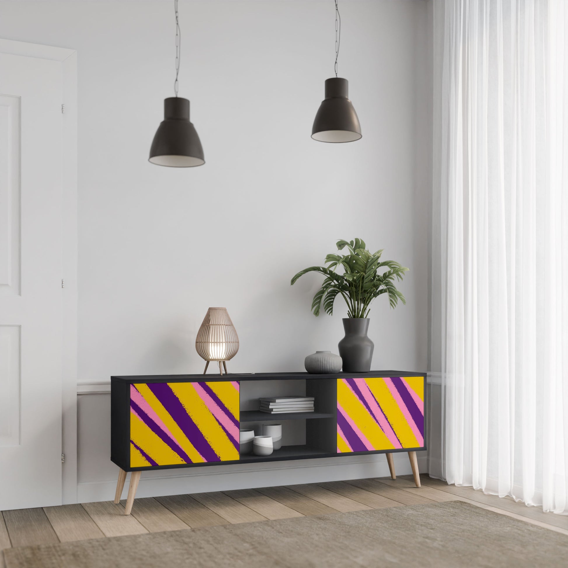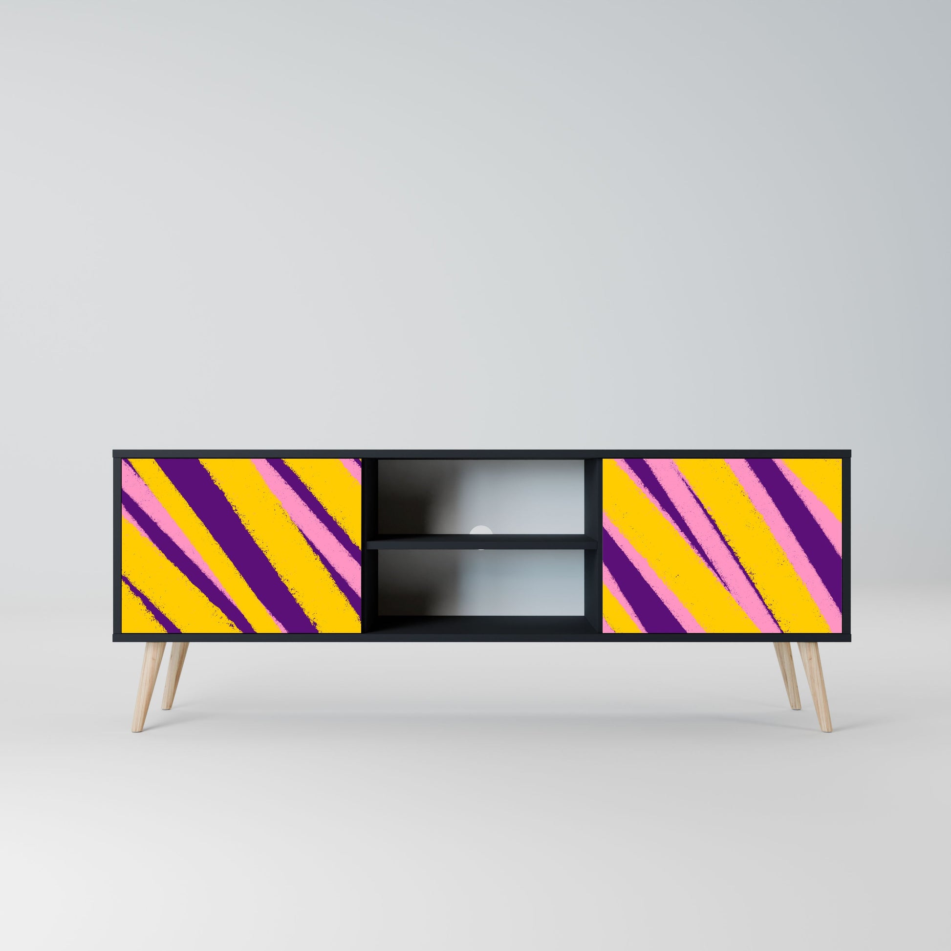Il corpo nero conferisce al mobile TV un aspetto elegante e moderno, mentre i frontali con una stampa eccezionale attirano l'attenzione, rendendolo il punto focale di ogni stanza. L'interno spazioso offre spazio per dispositivi elettronici, cavi, telecomandi e altri accessori, aiutandoti a mantenere ordine e organizzazione.