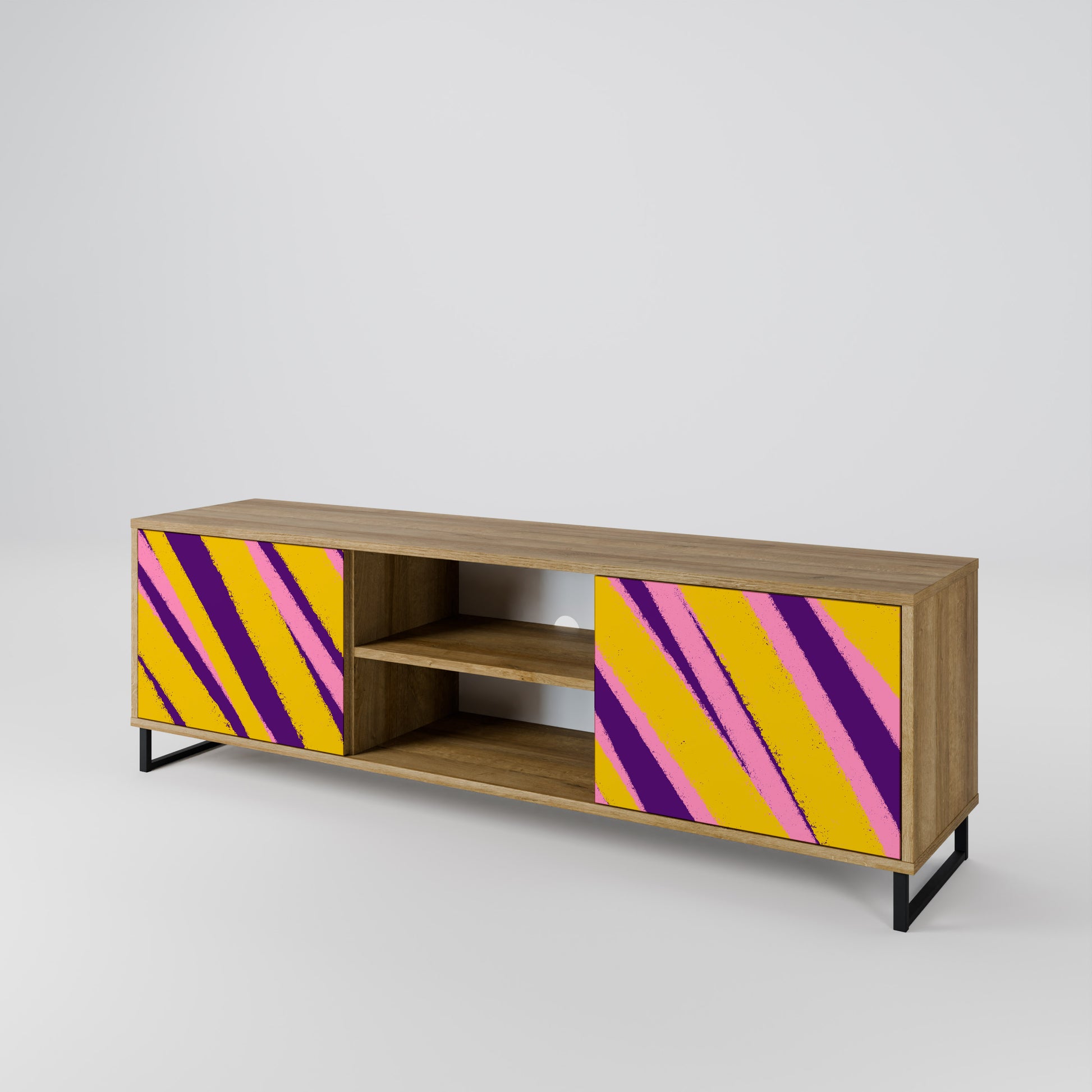 Ti invitiamo a scoprire il nostro mobile porta TV a 2 ante che unisce semplicità e stile eccezionale. Realizzato con materiali di altissima qualità, questo elegante pezzo nei toni della quercia, con ante in legno con finitura stampata, è l'aggiunta perfetta a qualsiasi soggiorno moderno.