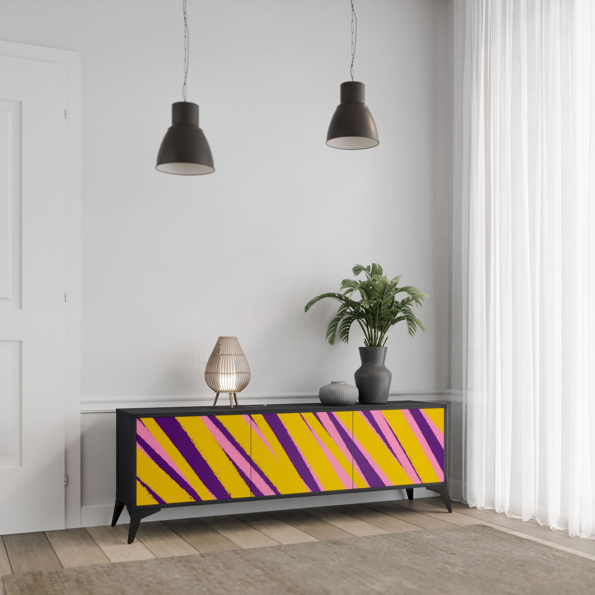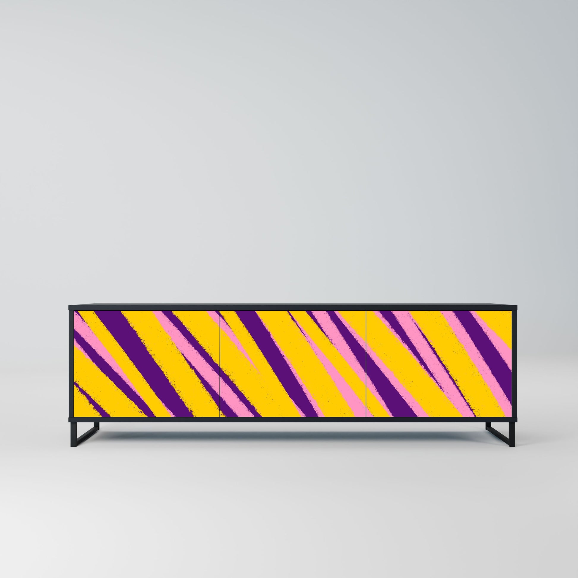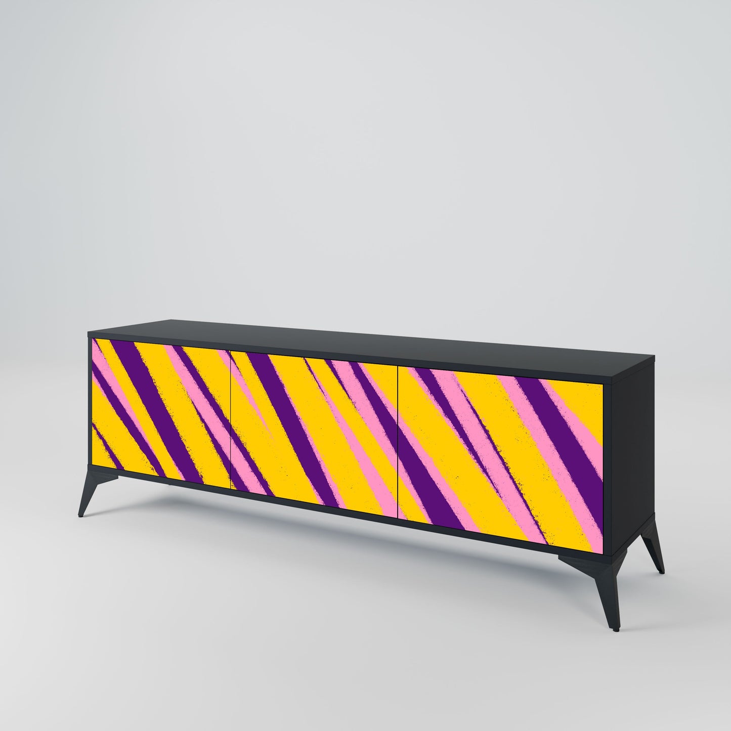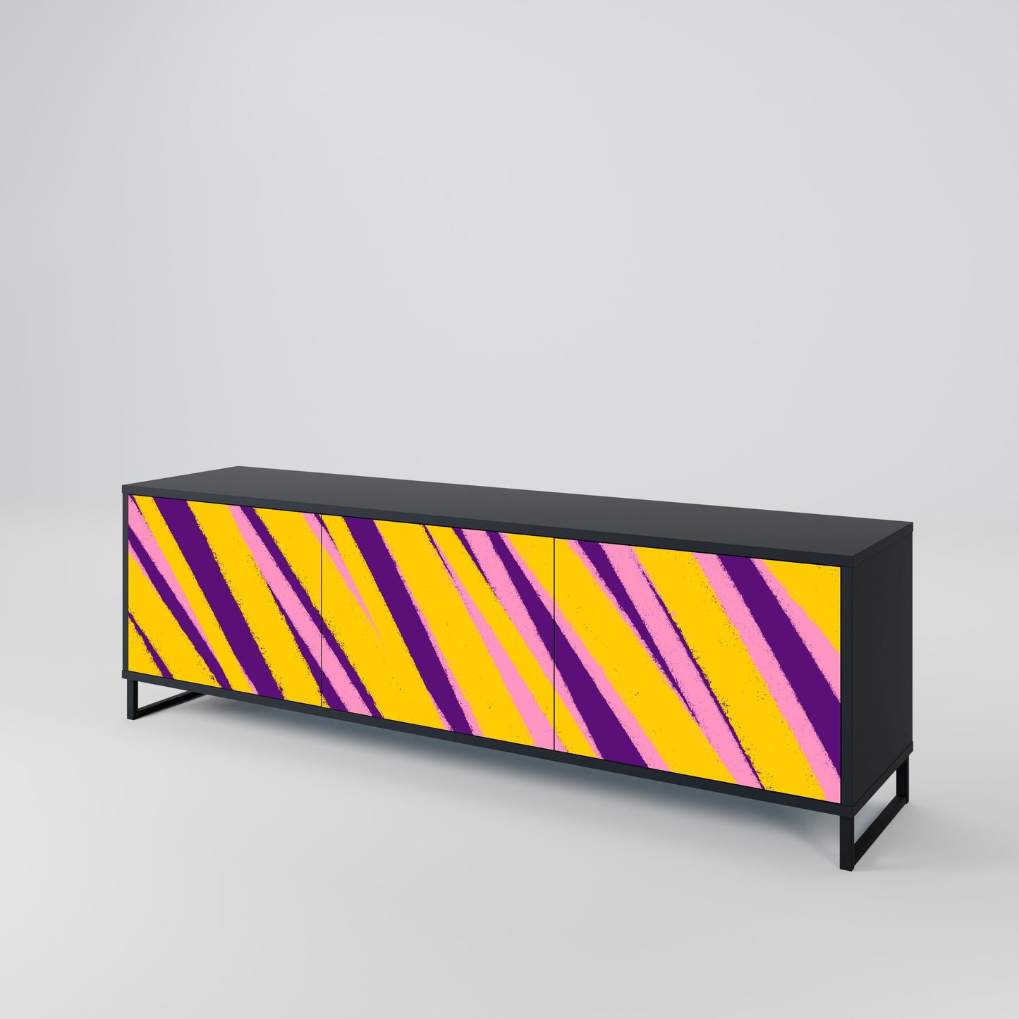 Il corpo nero del supporto crea un accento audace e moderno che si abbina magnificamente ad allestimenti industriali e minimalisti. I frontali con una stampa di design aggiungono carattere e unicità, rendendo questo pezzo non solo pratico ma anche un elemento decorativo di spicco.