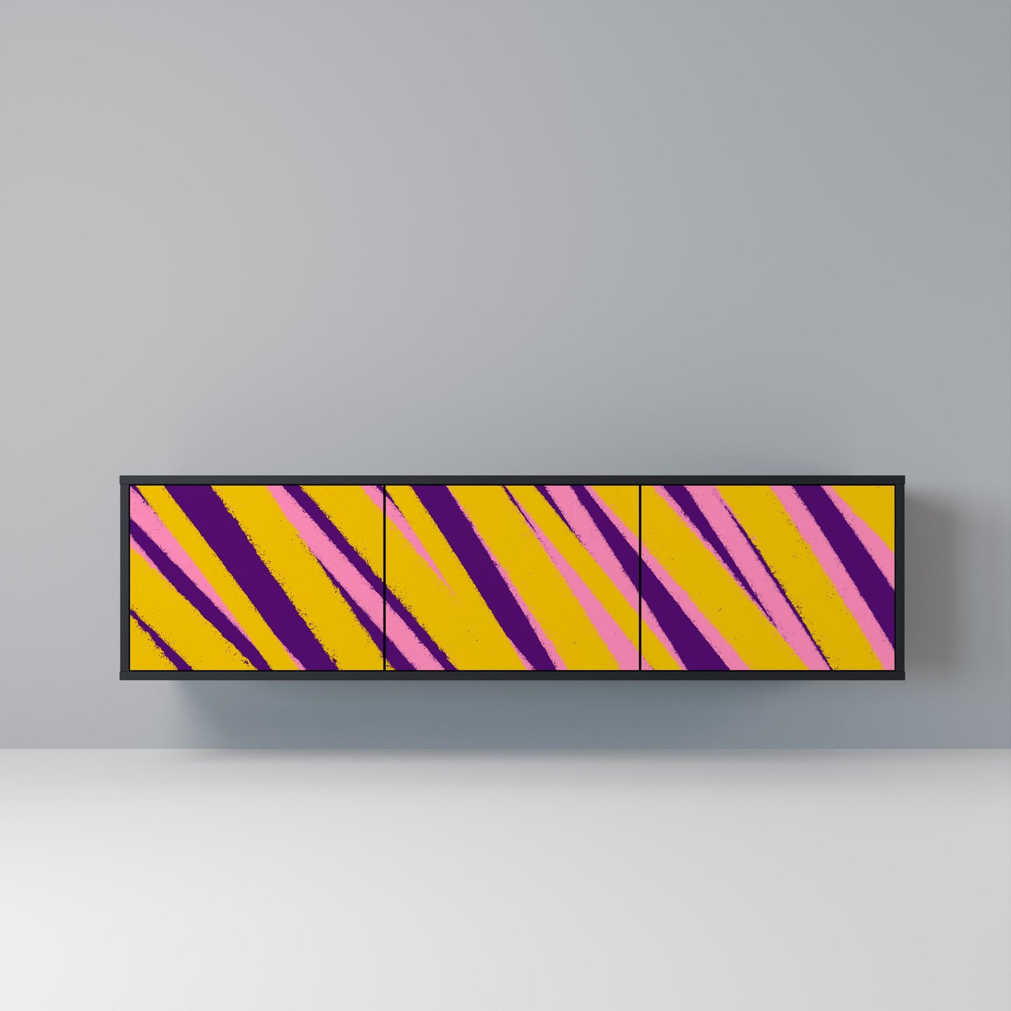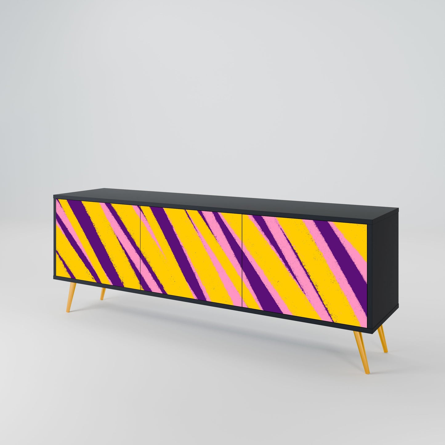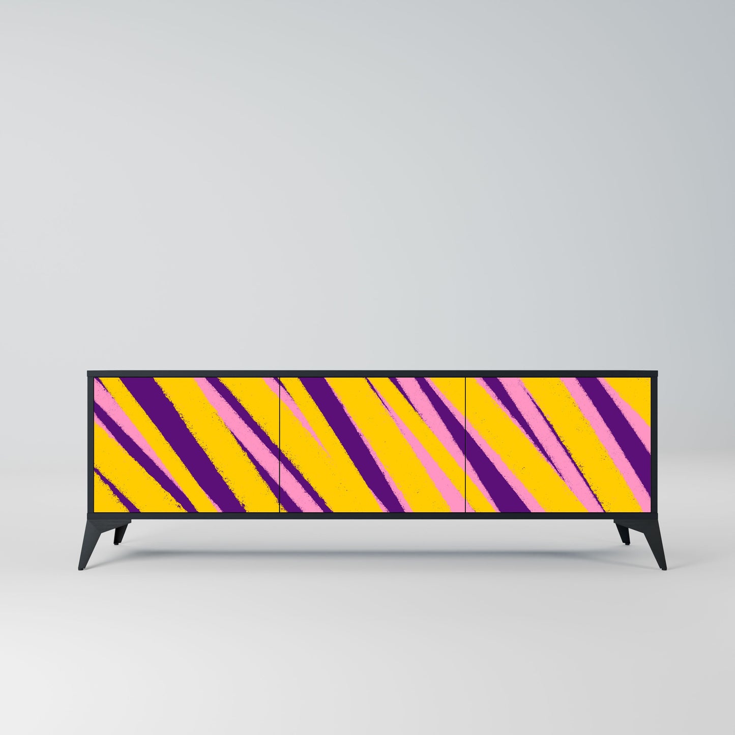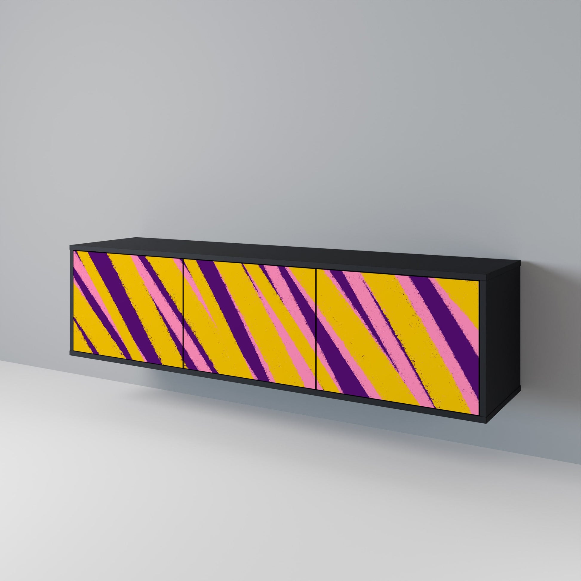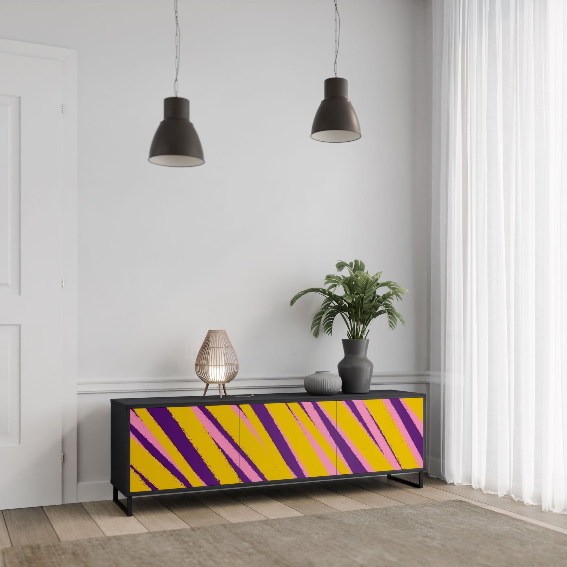 Il corpo nero del supporto crea un accento audace e moderno che si abbina magnificamente ad allestimenti industriali e minimalisti. I frontali con una stampa di design aggiungono carattere e unicità, rendendo questo pezzo non solo pratico ma anche un elemento decorativo di spicco.
