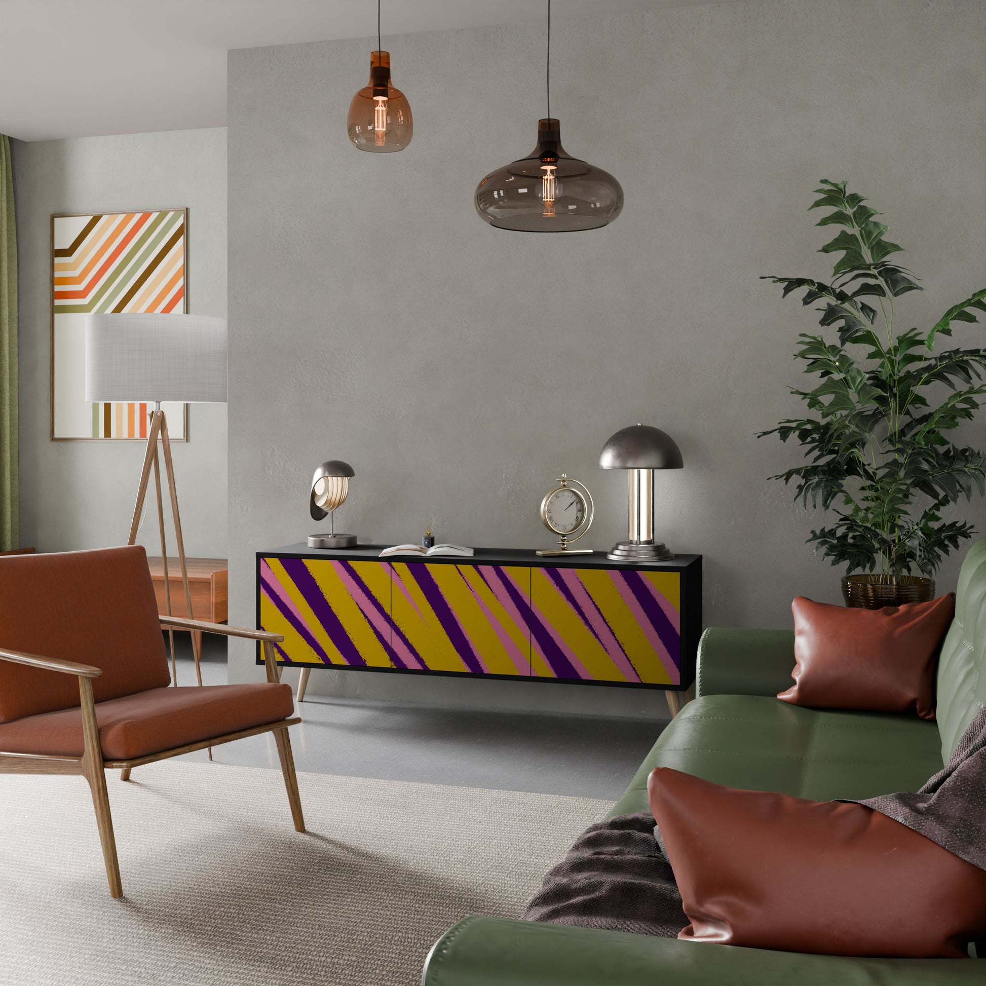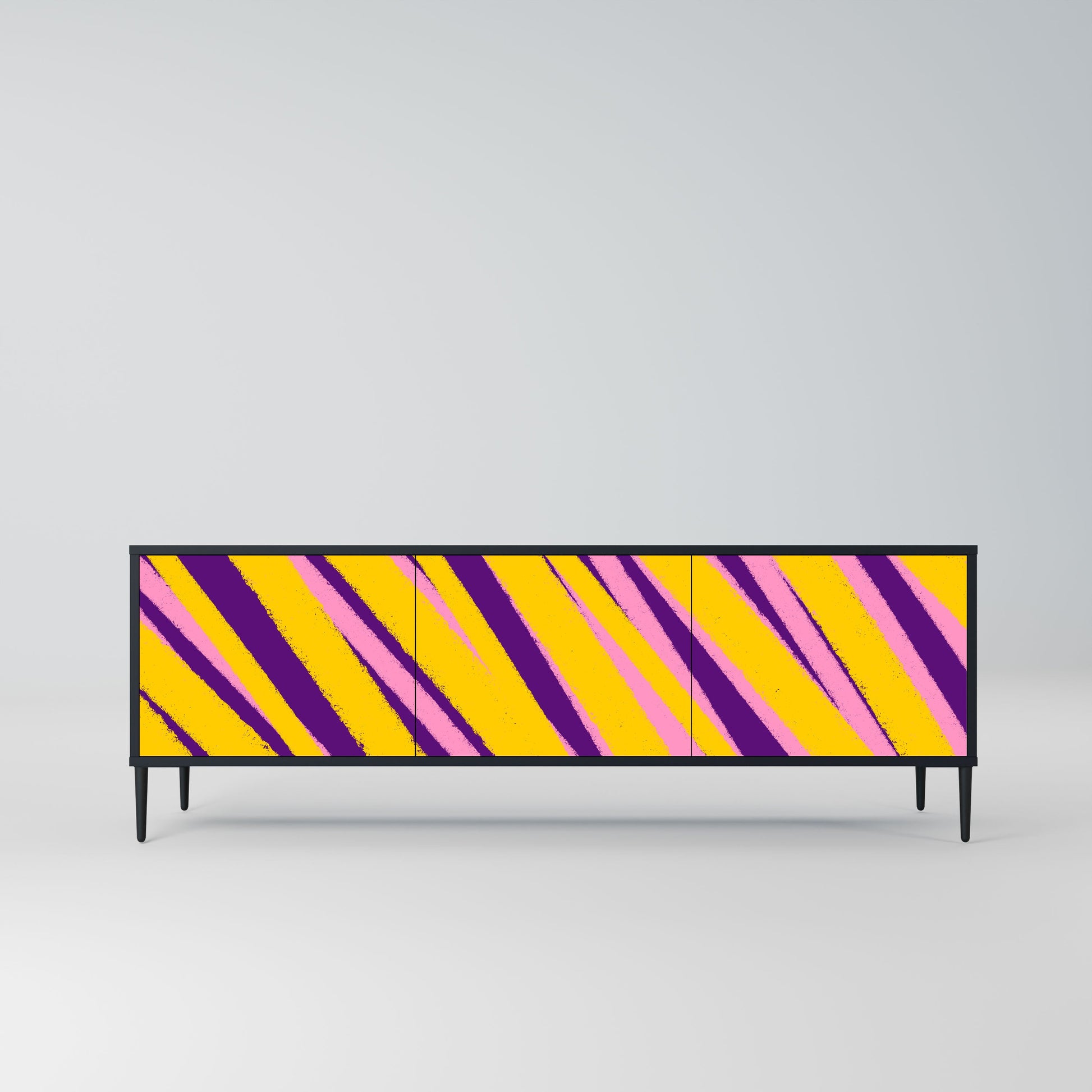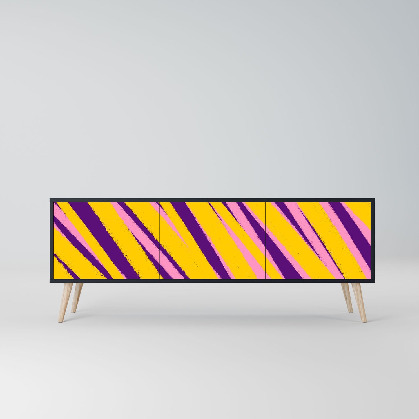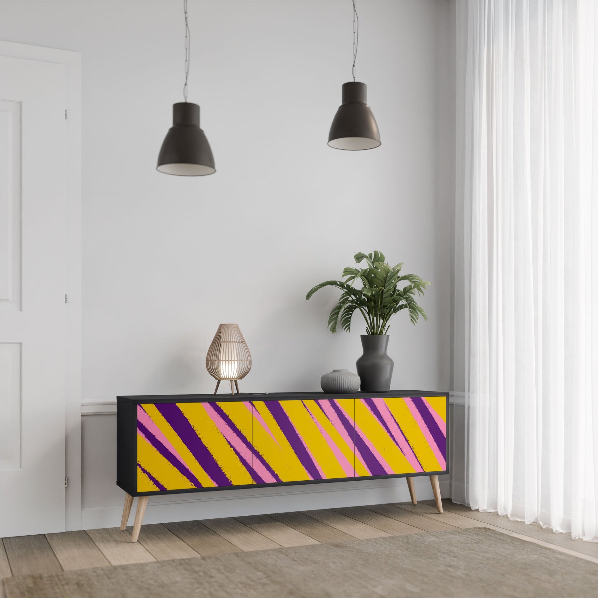 Il corpo nero del supporto crea un accento audace e moderno che si abbina magnificamente ad allestimenti industriali e minimalisti. I frontali con una stampa di design aggiungono carattere e unicità, rendendo questo pezzo non solo pratico ma anche un elemento decorativo di spicco.