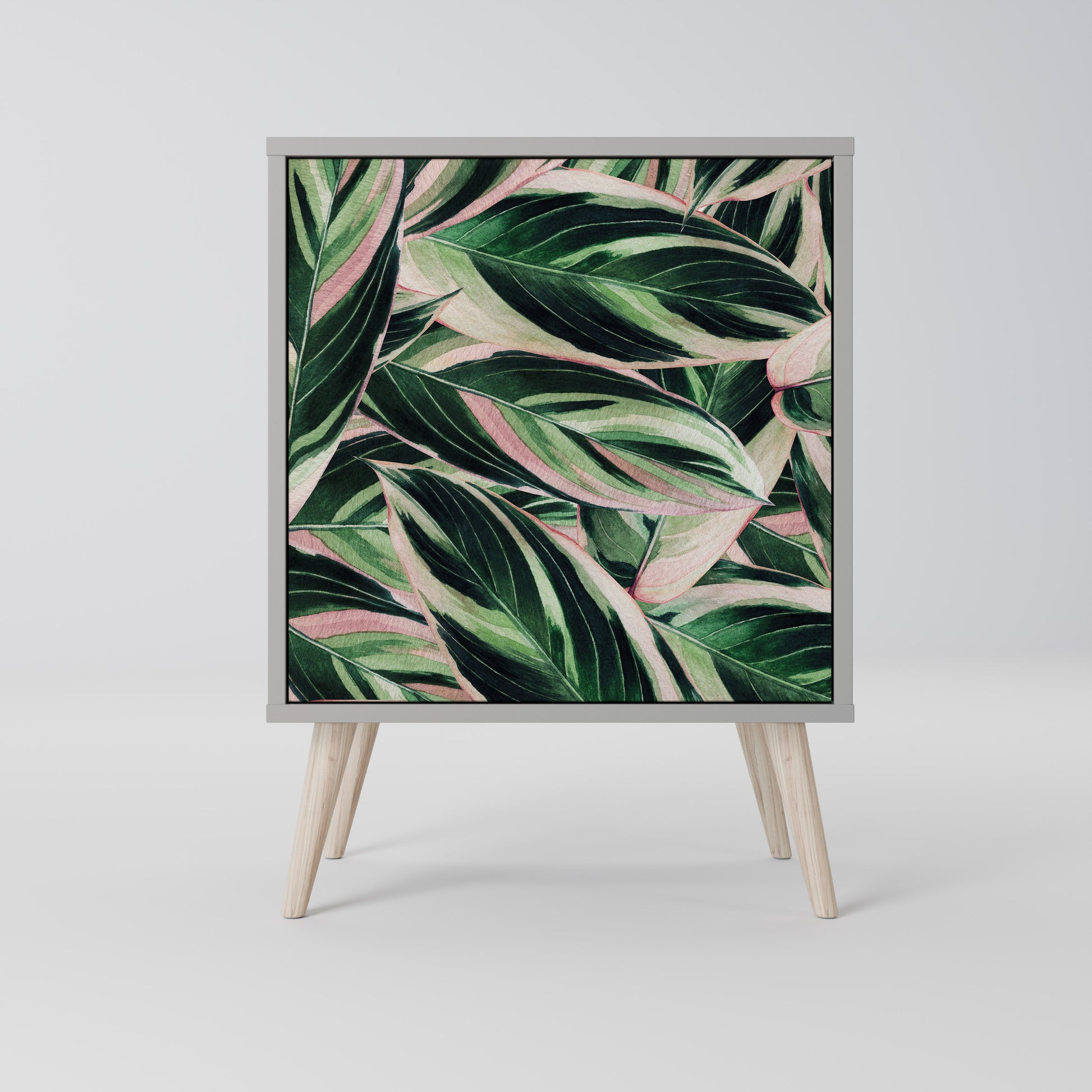 Questo mobile compatto ma straordinariamente elegante colpisce per il suo design minimalista, che si adatta perfettamente sia agli interni moderni che a quelli classici. Il tenue colore grigio della struttura conferisce al mobile un carattere discreto ma distintivo, mentre i frontali con una stampa esclusiva aggiungono un tocco artistico.