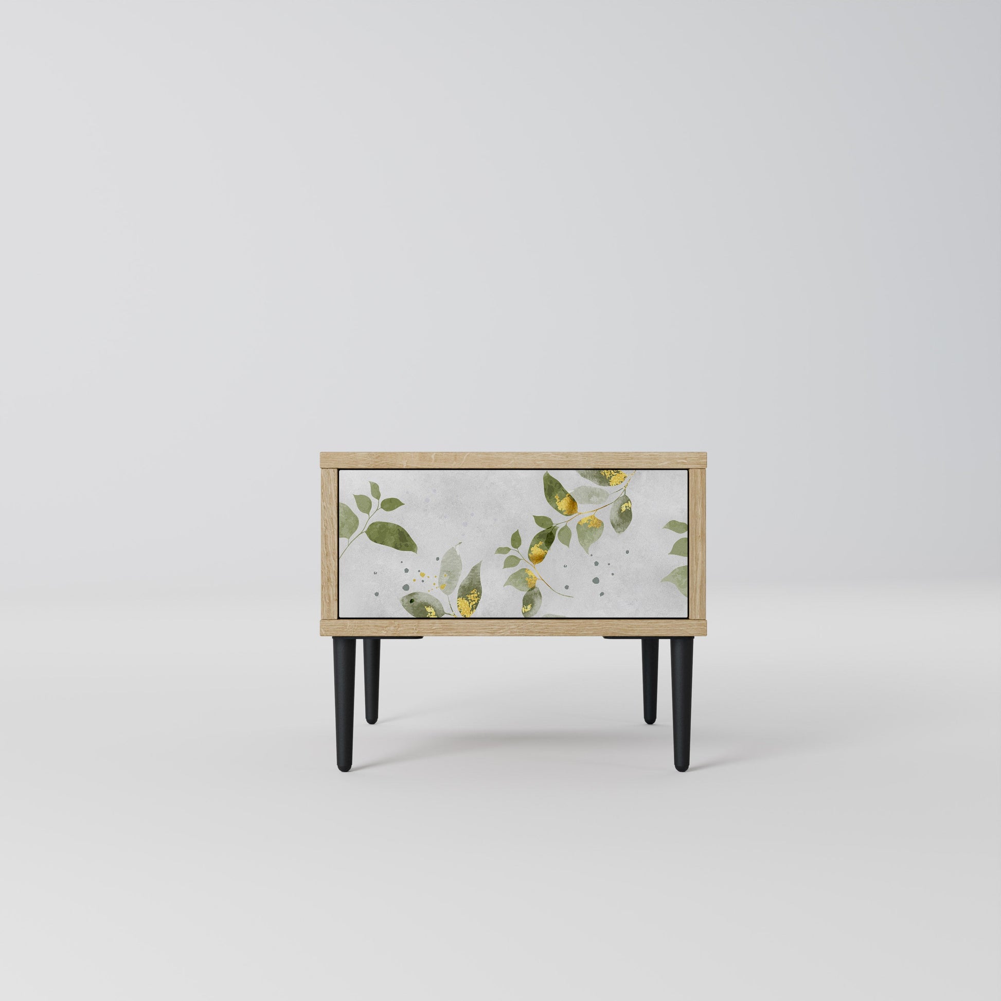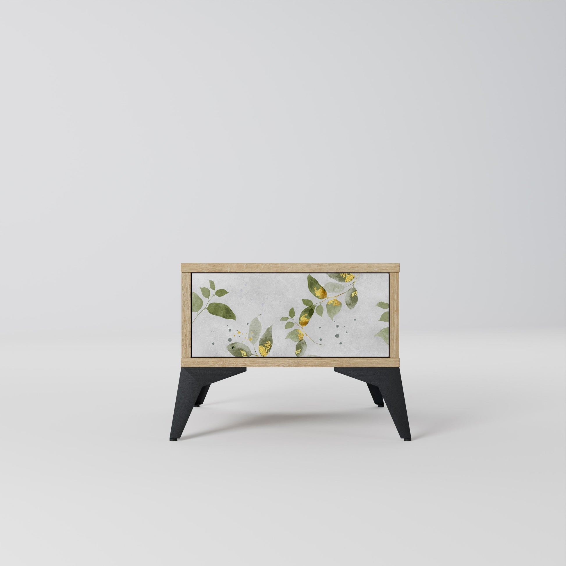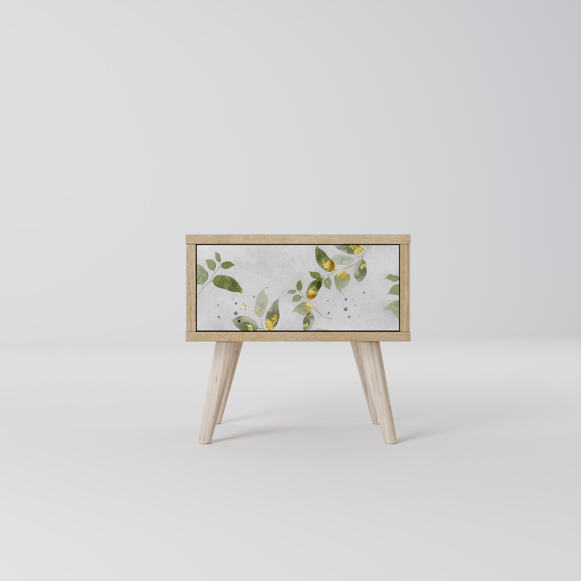 Scopri funzionalità ed eleganza in un formato compatto con il nostro comodino con cassetto. Questo mobile pratico ed elegante coniuga perfettamente la bellezza naturale del legno con il design moderno del frontale del cassetto, creando un elemento armonioso per qualsiasi camera da letto.