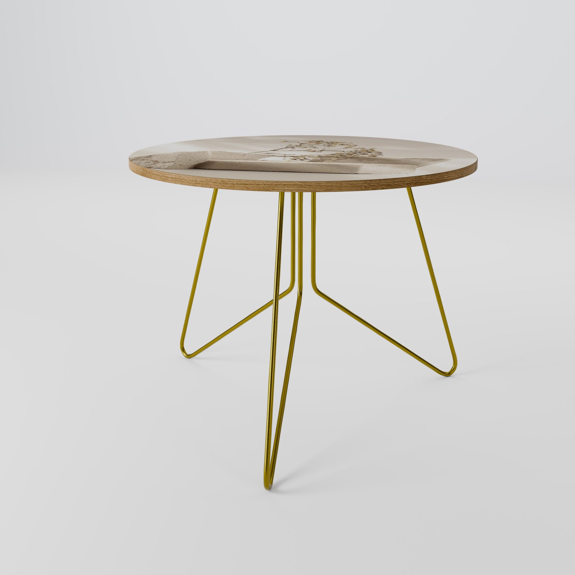 - Gambe con pinna dorata / Bordo del piano del tavolo effetto rovere