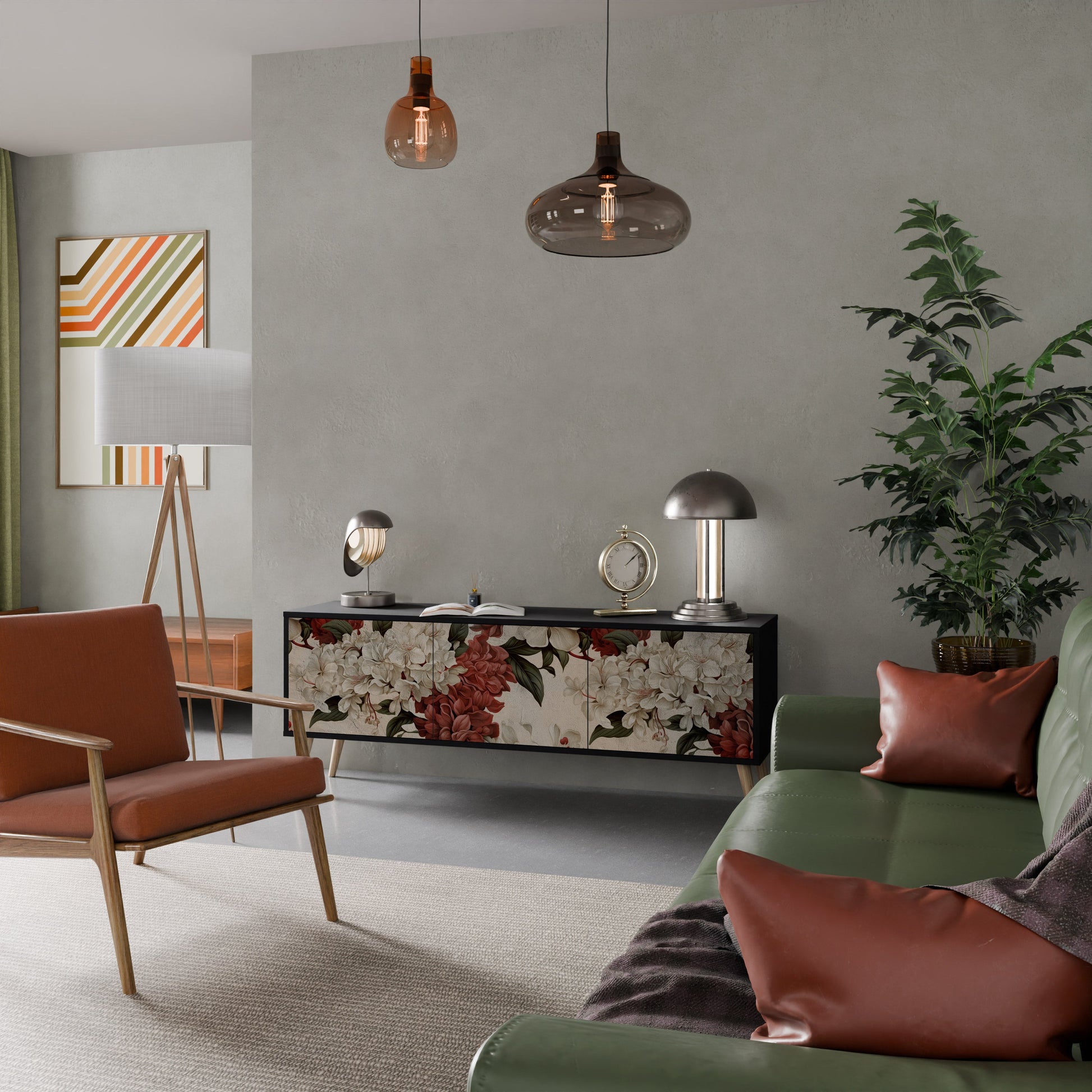 Il corpo nero del supporto crea un accento audace e moderno che si abbina magnificamente ad allestimenti industriali e minimalisti. I frontali con una stampa di design aggiungono carattere e unicità, rendendo questo pezzo non solo pratico ma anche un elemento decorativo di spicco.