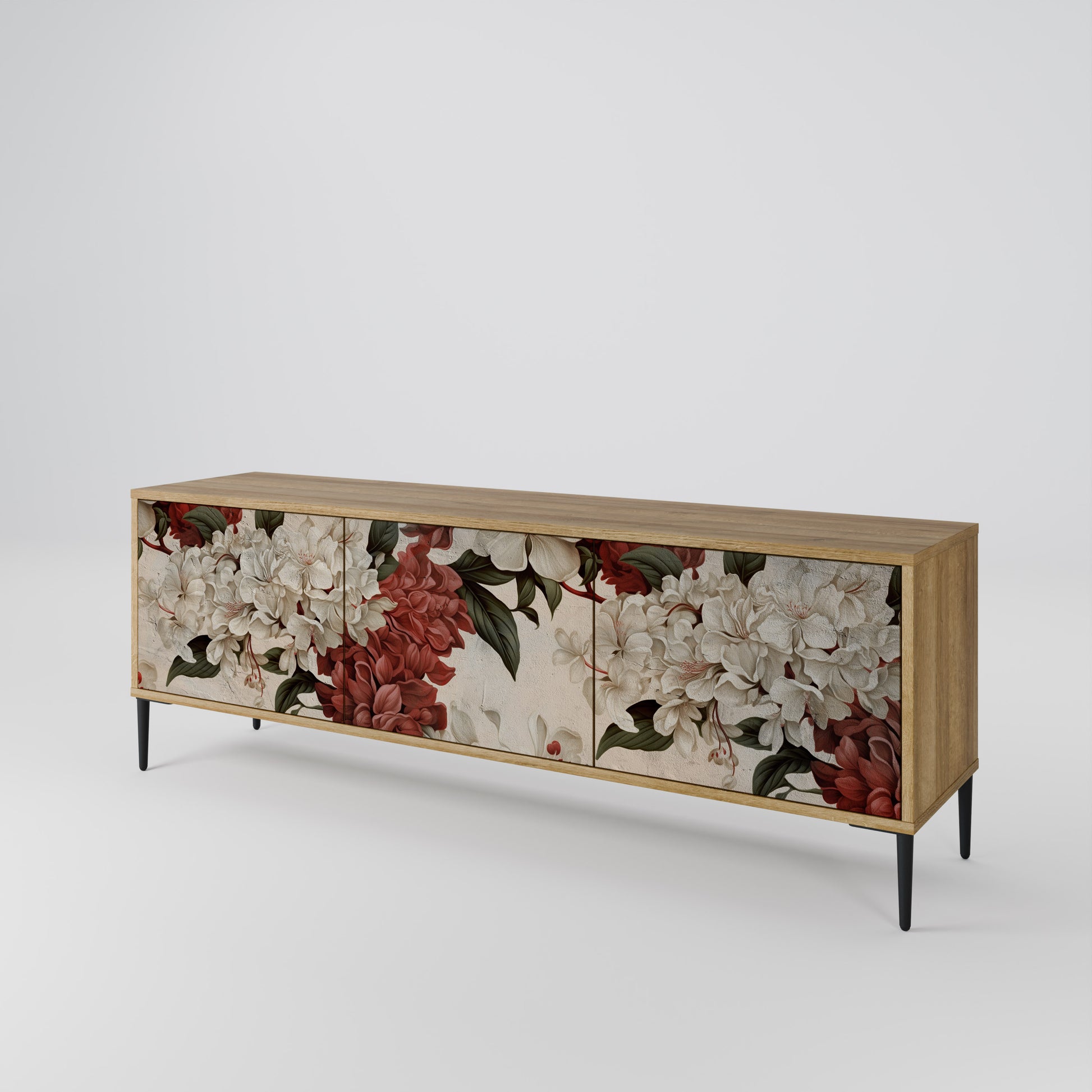 Scopri la soluzione perfetta per riporre e organizzare con il nostro mobile TV a 3 ante. Realizzato con materiali resistenti, che combinano gambe in legno con un corpo laminato, questo mobile è sia elegante che funzionale. Le ante in legno con una stampa accattivante aggiungono un tocco di eleganza, rendendolo una scelta eccellente per qualsiasi interno.