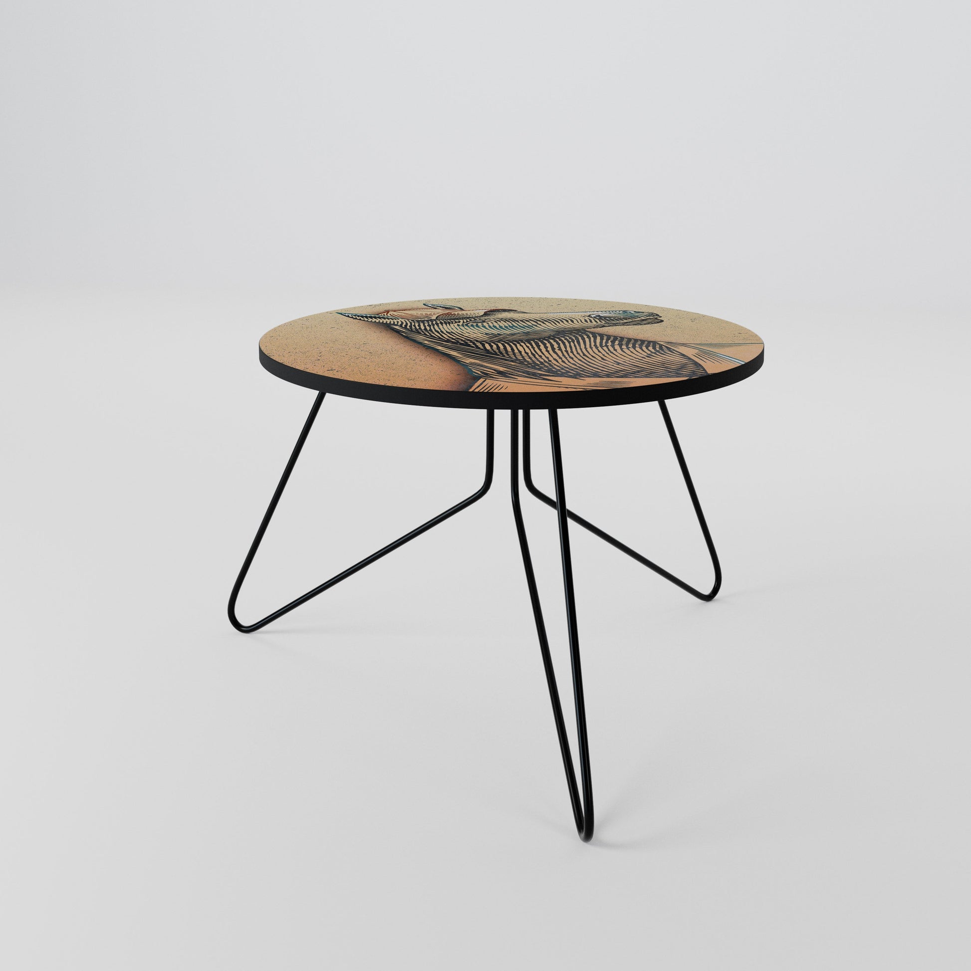 Il piano del tavolo presenta un motivo stampato di alta qualità, che aggiunge un tocco artistico distintivo al tuo spazio. Realizzato in resistente truciolato rivestito in laminato, garantisce un utilizzo duraturo e resistenza all'usura quotidiana.