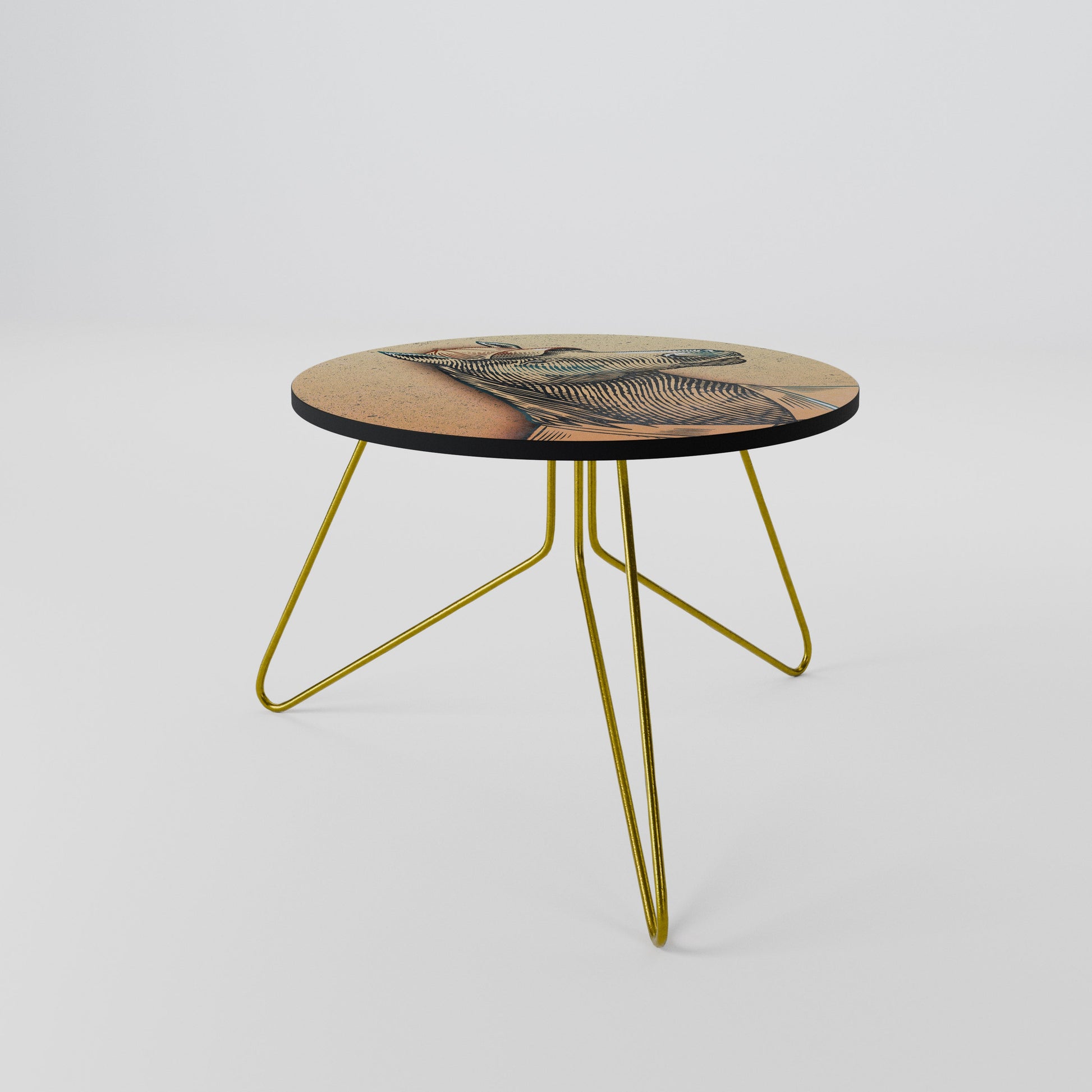 - Gambe con pinna dorata / Bordo del tavolo con finitura nera