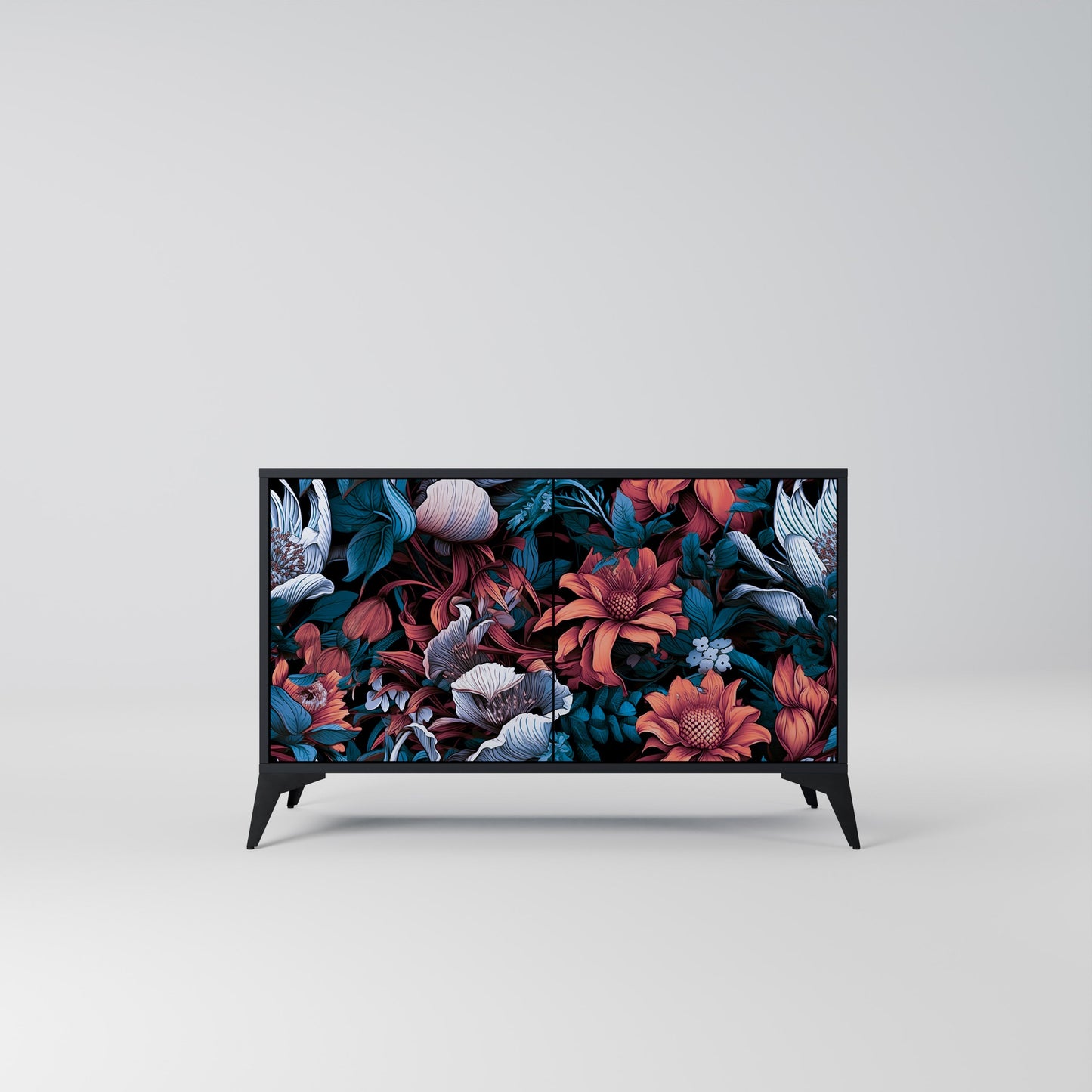 Credenza ETHEREAL BLOSSOMS a 2 ante in finitura nera