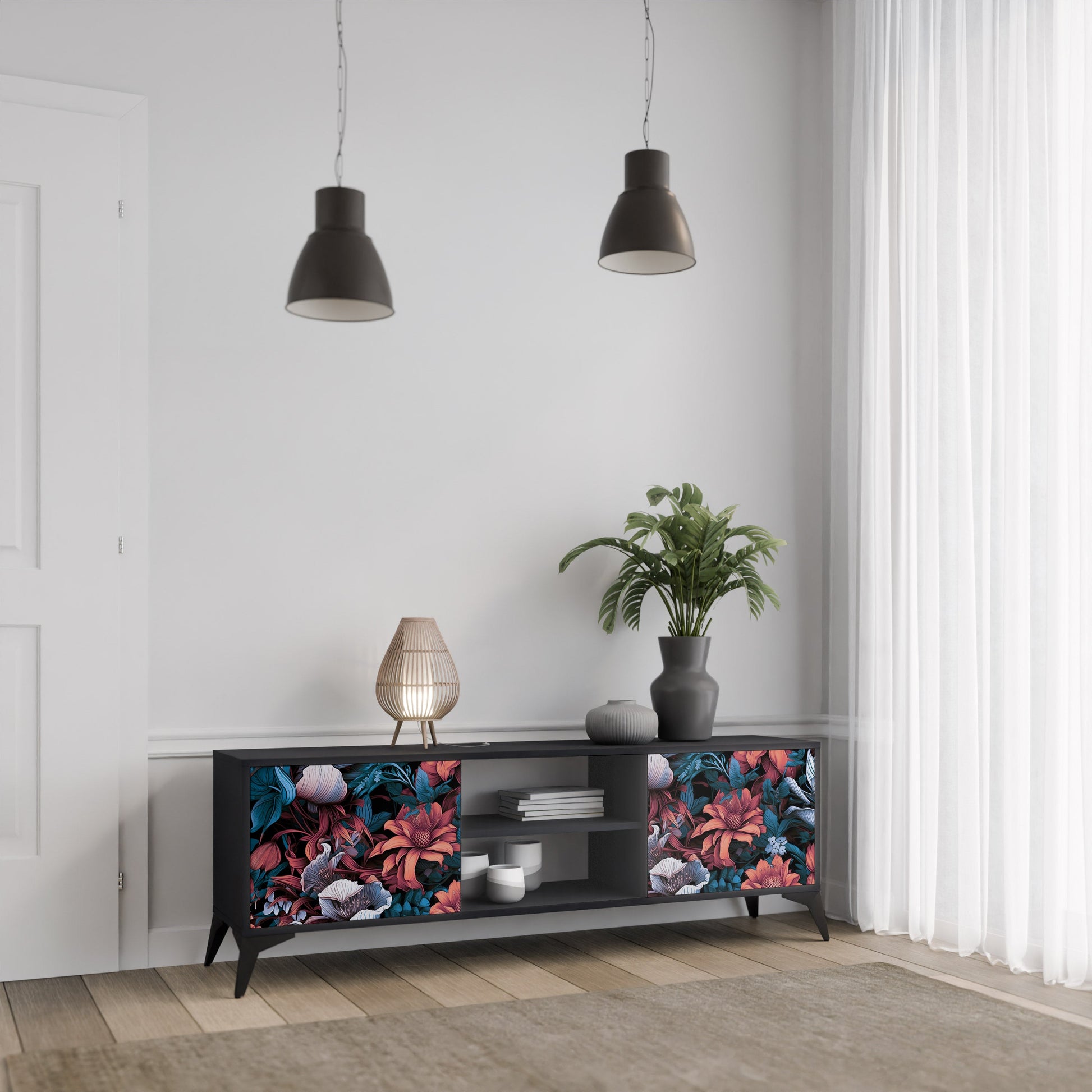 Mobile TV ETHEREAL BLOSSOMS a 2 ante con finitura nera