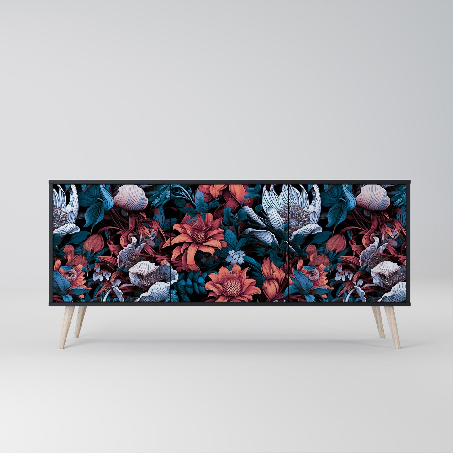Credenza ETHEREAL BLOSSOMS a 3 ante in finitura nera