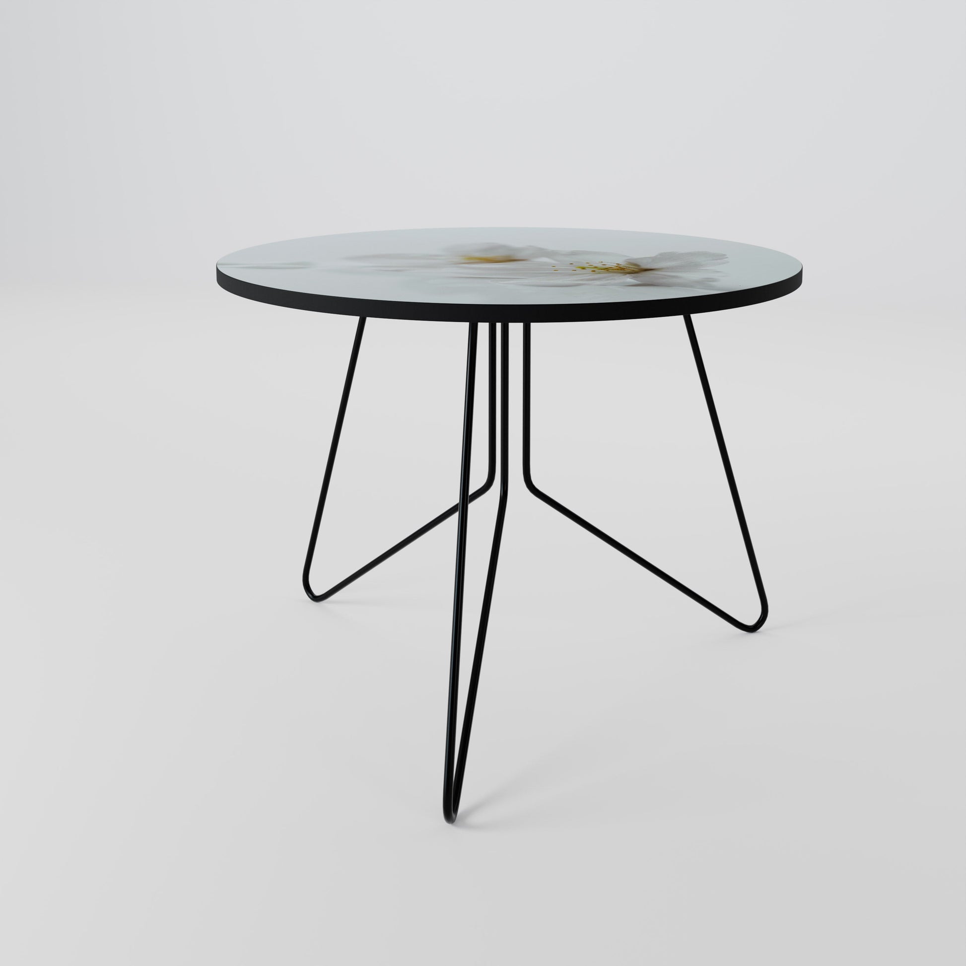 - Gambe con pinna nera / Bordo del tavolo con finitura nera