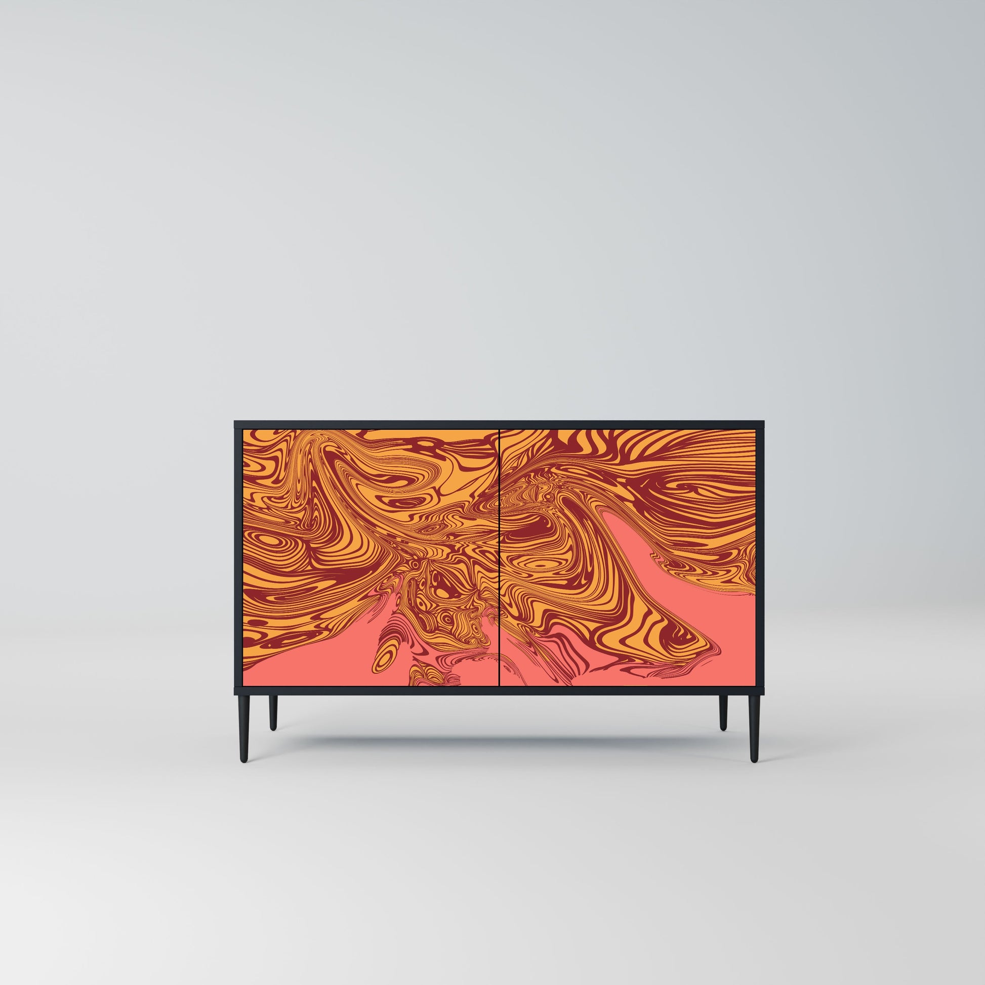 Eleganza e funzionalità in un unico mobile: la nostra credenza a 2 ante con corpo nero è la soluzione perfetta per gli amanti degli interni eleganti e moderni. Il corpo nero enfatizza il carattere audace del mobile, mentre i frontali con una stampa unica aggiungono un tocco artistico. Si adatta perfettamente al soggiorno, alla camera da letto o all'ufficio, completando sia gli arrangiamenti moderni che quelli industriali.