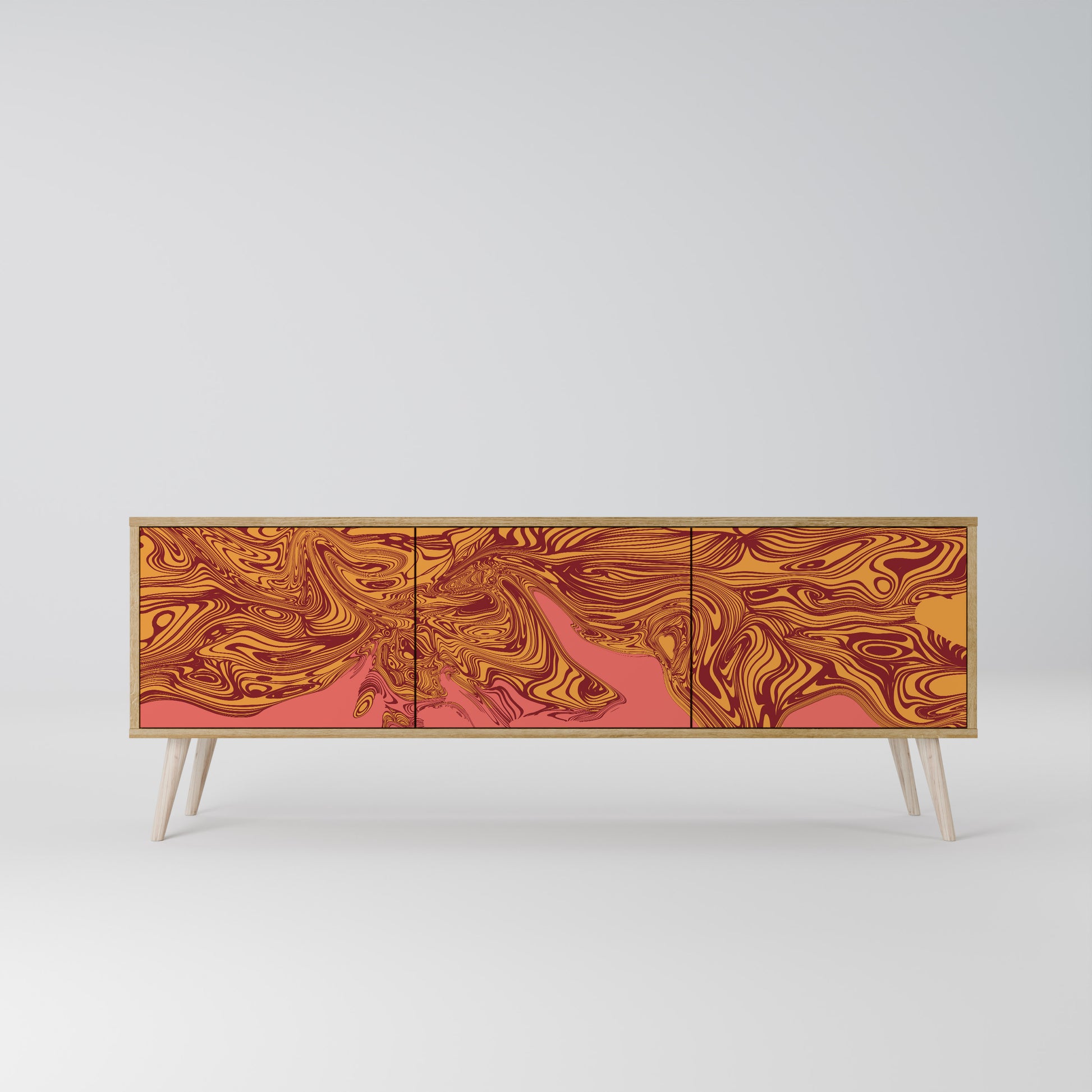Scopri la soluzione perfetta per riporre e organizzare con il nostro mobile TV a 3 ante. Realizzato con materiali resistenti, che combinano gambe in legno con un corpo laminato, questo mobile è sia elegante che funzionale. Le ante in legno con una stampa accattivante aggiungono un tocco di eleganza, rendendolo una scelta eccellente per qualsiasi interno.