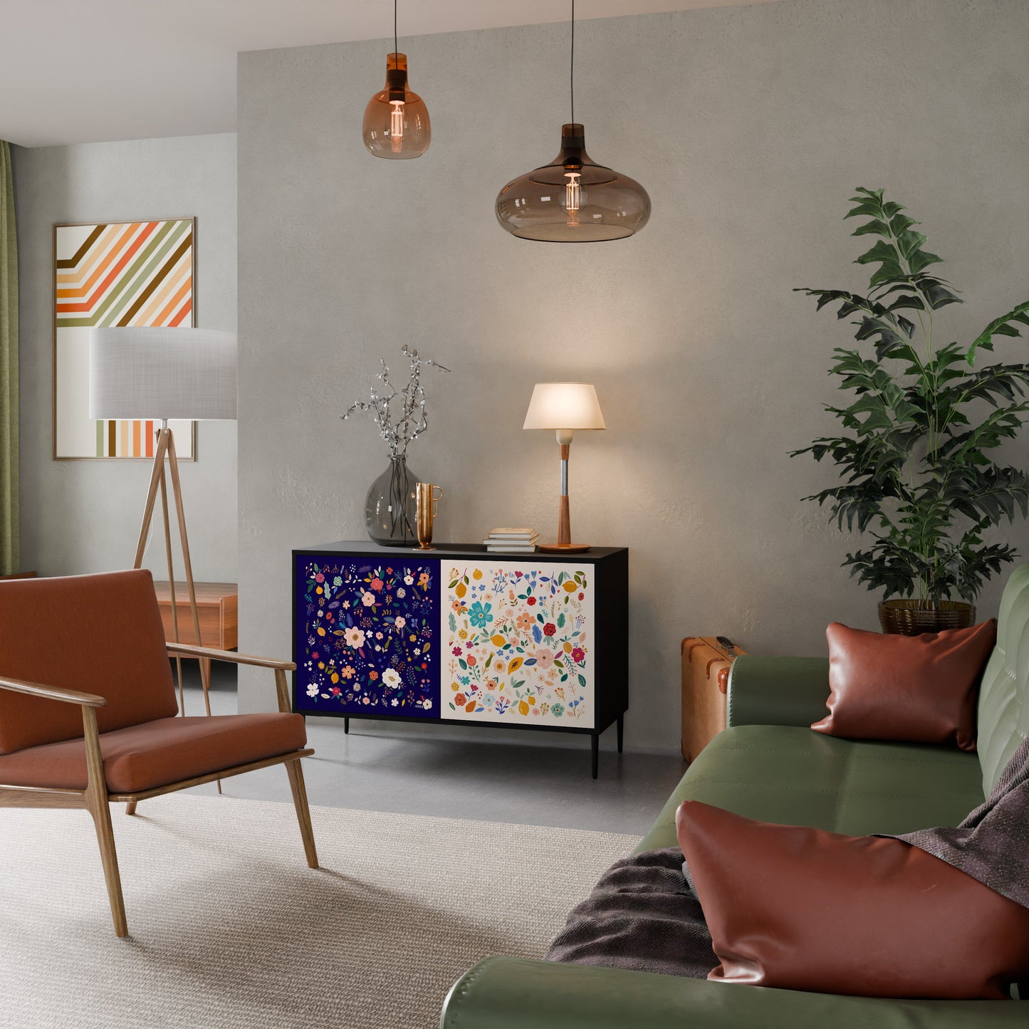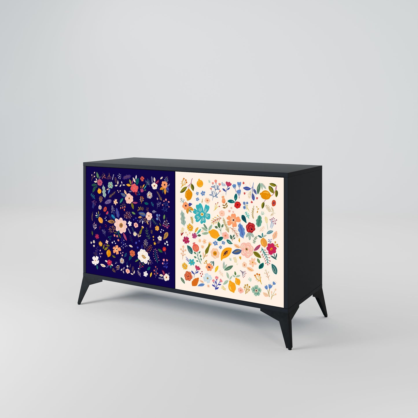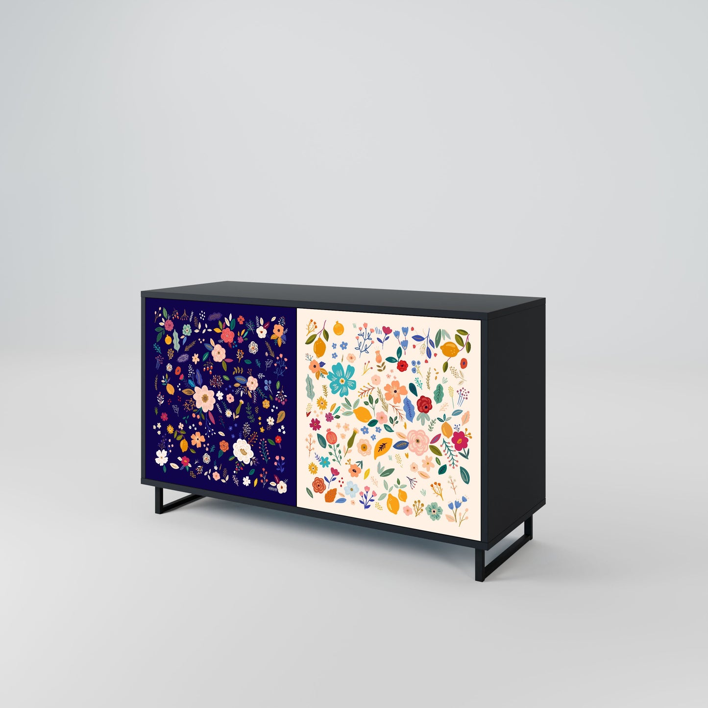 Credenza a 2 ante FLORAL COMBINATION in finitura nera