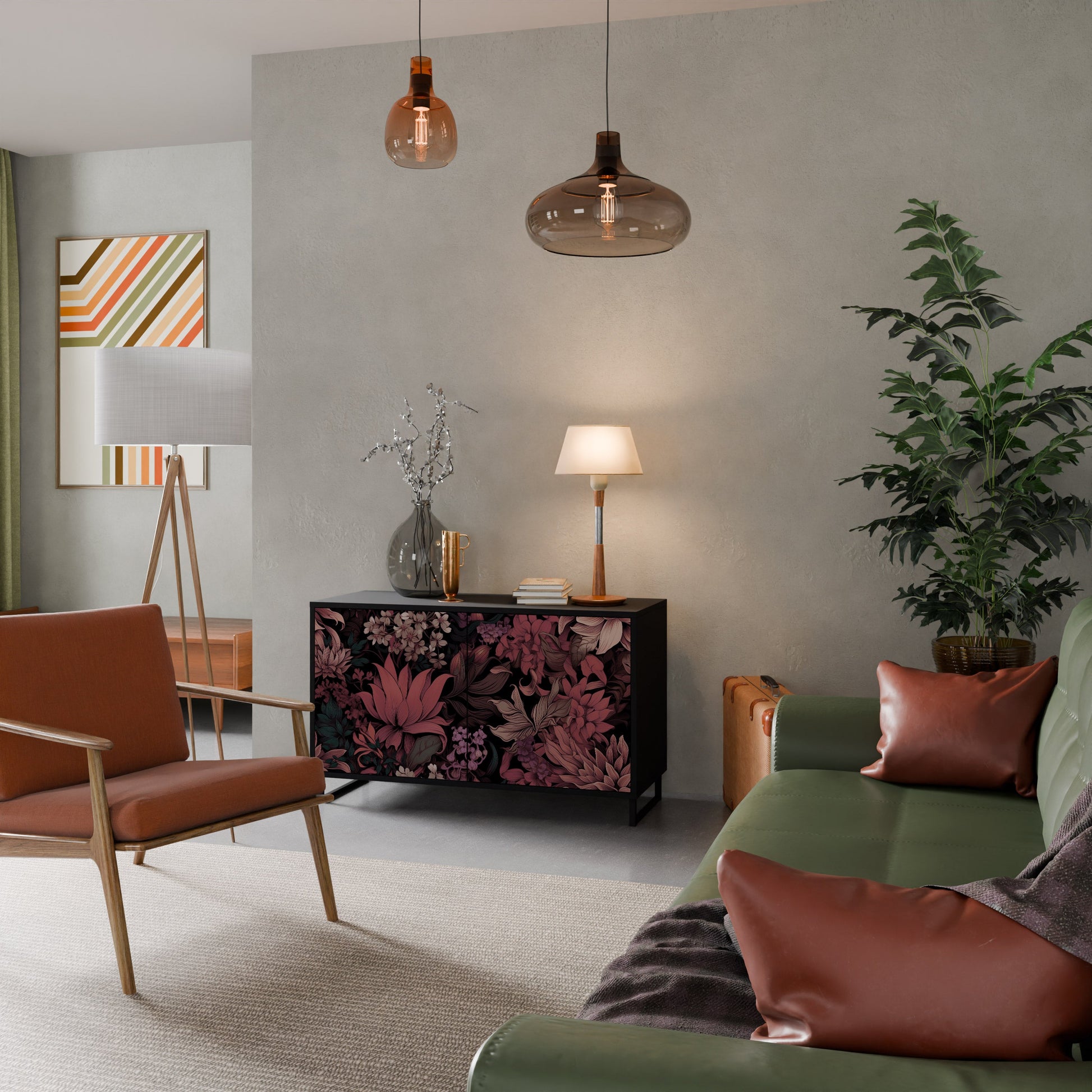 Credenza a 2 ante FLORAL WHISPER in finitura nera