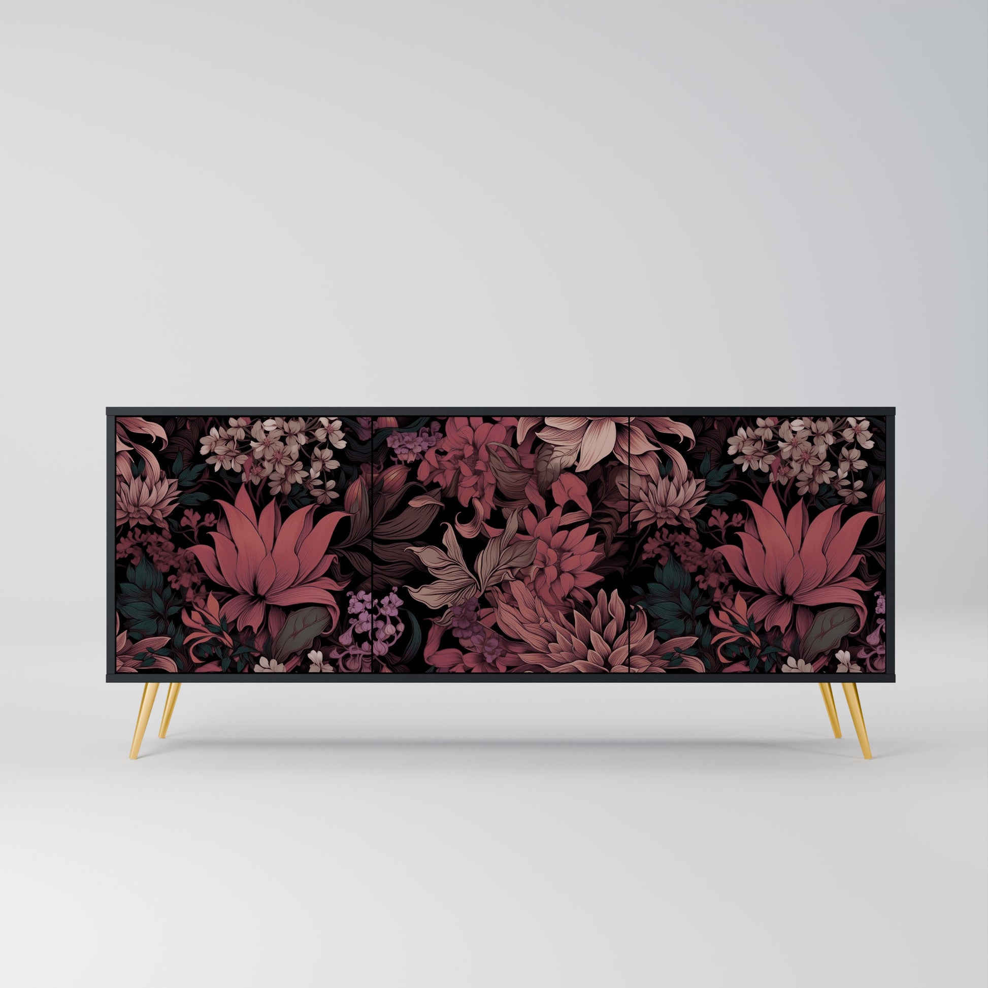 Credenza a 3 ante FLORAL WHISPER in finitura nera