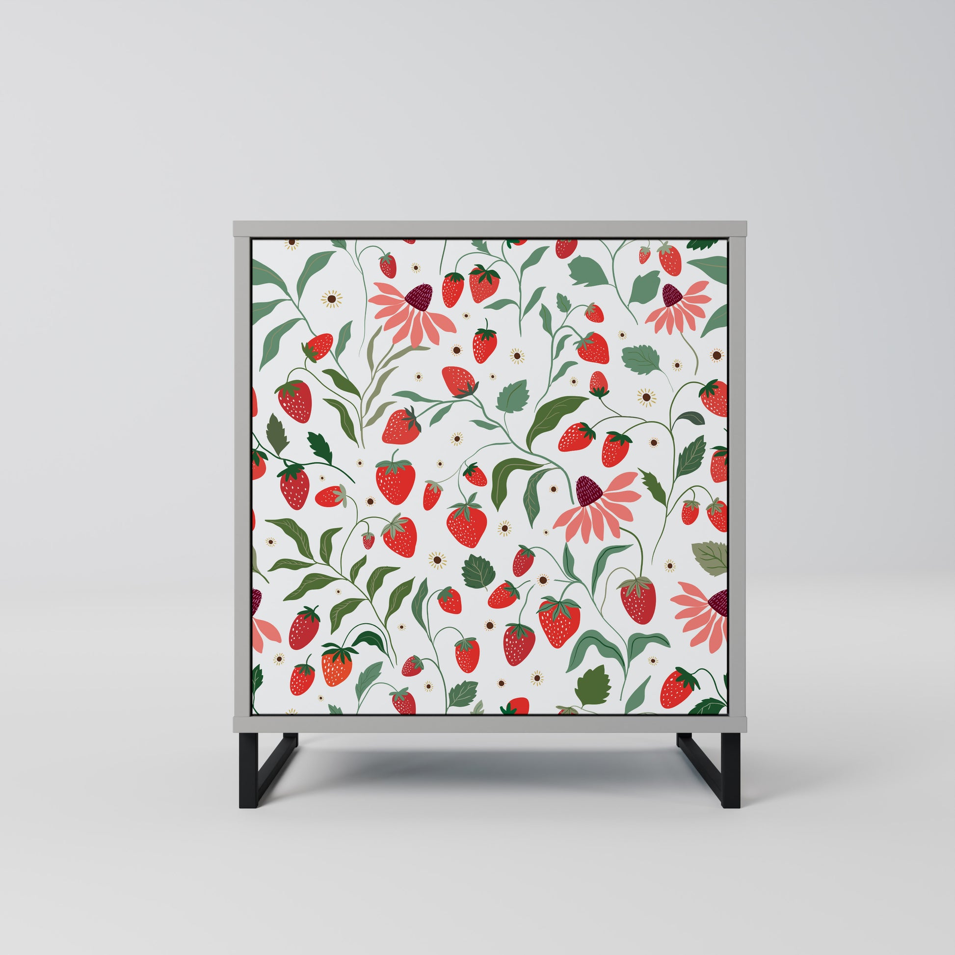 Credenza a 1 anta FLOWERS AND STRAWBERRIES in finitura grigia
