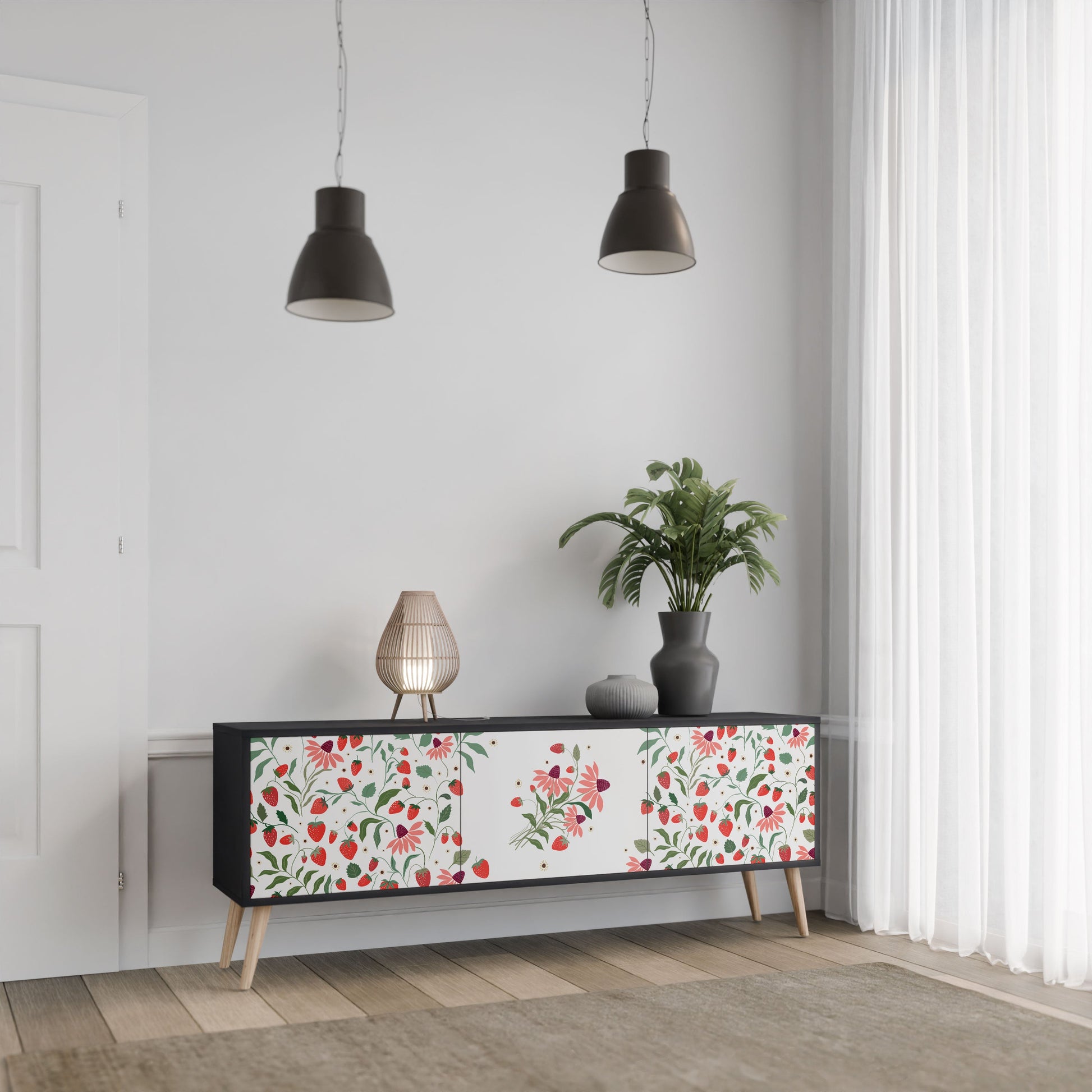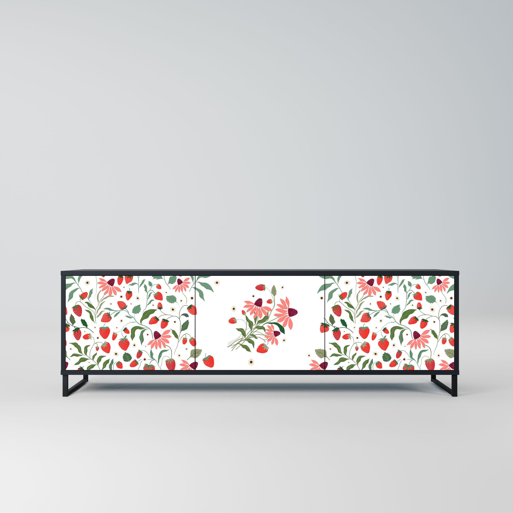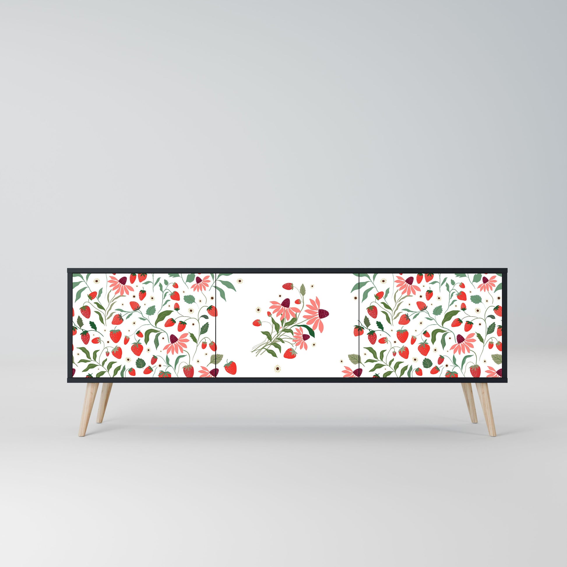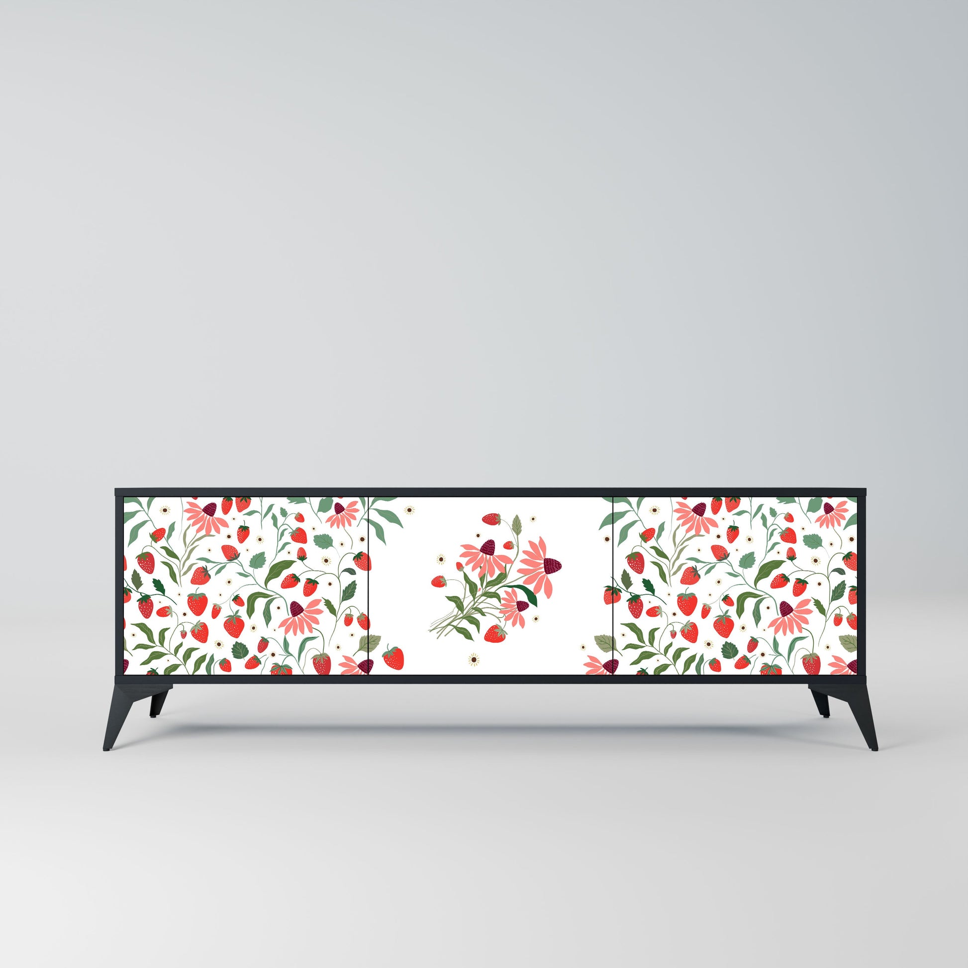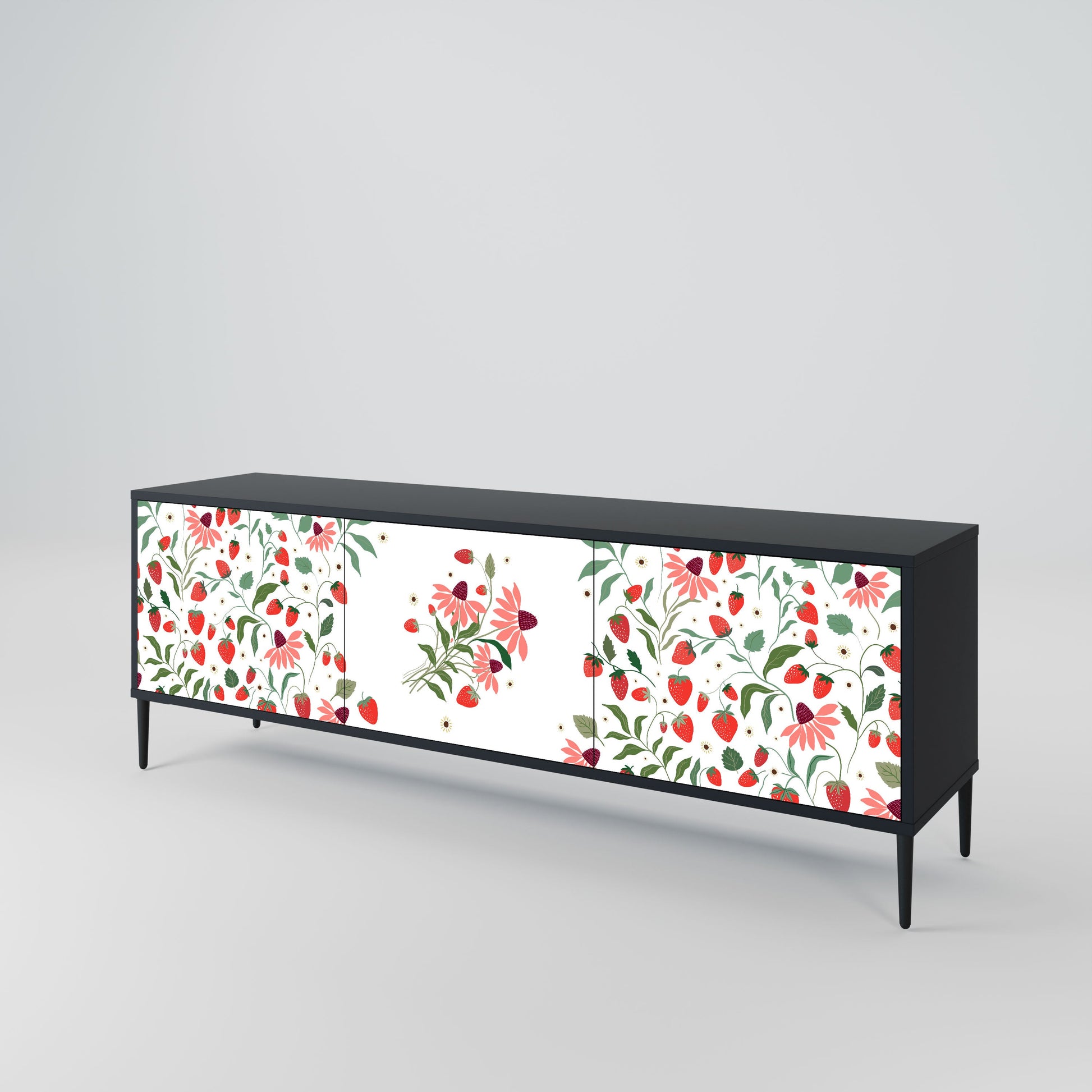 Mobile TV a 3 ante FLOWERS AND STRAWBERRIES in finitura nera