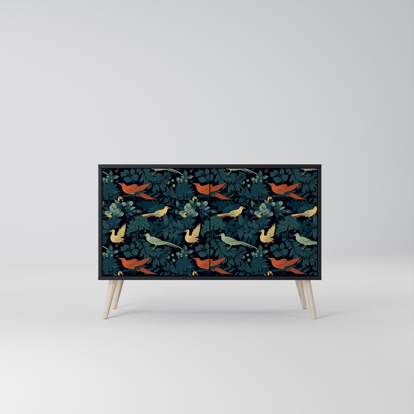 Credenza a 2 ante FOWL ORNAMENT in finitura nera