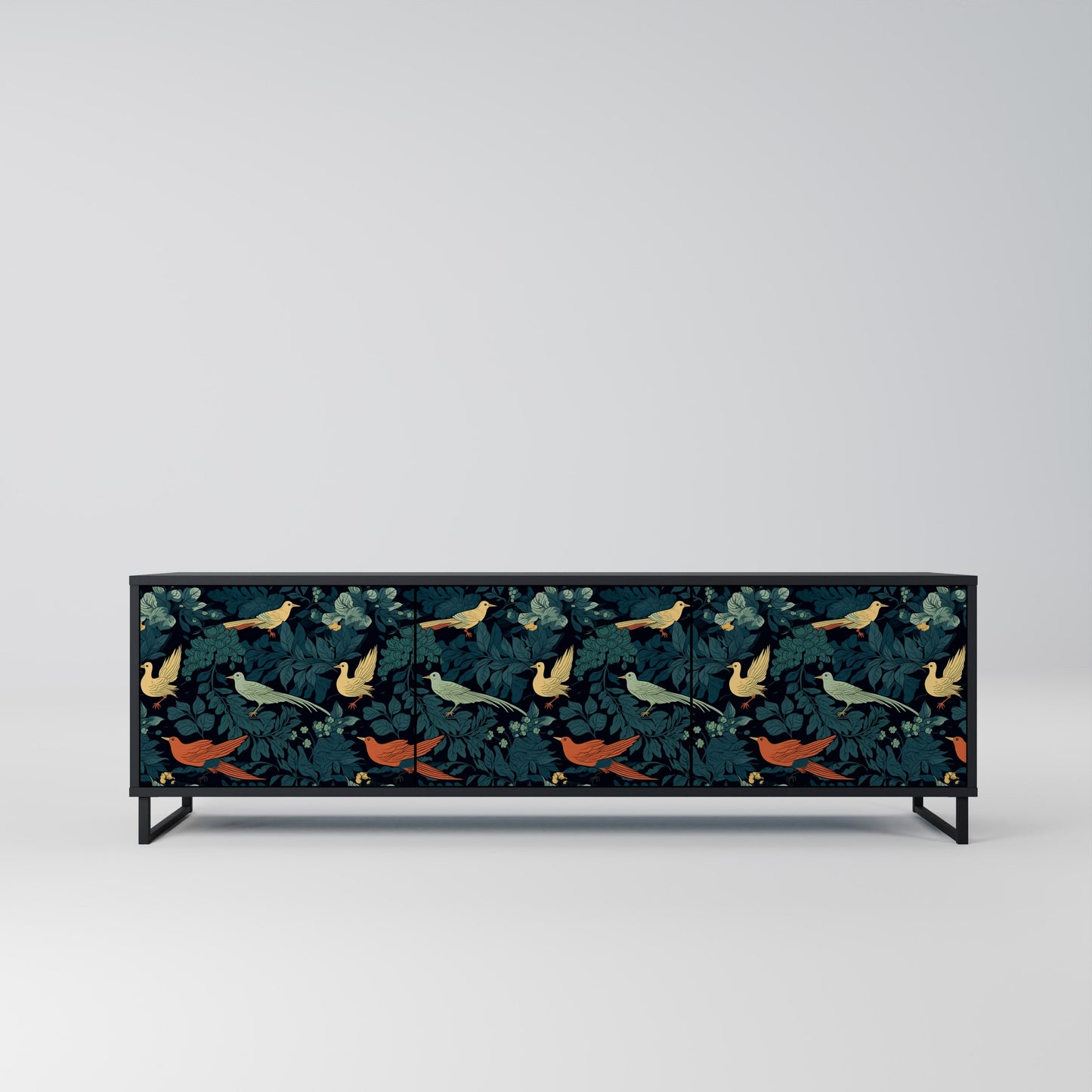 Mobile TV FOWL ORNAMENT a 3 ante con finitura nera