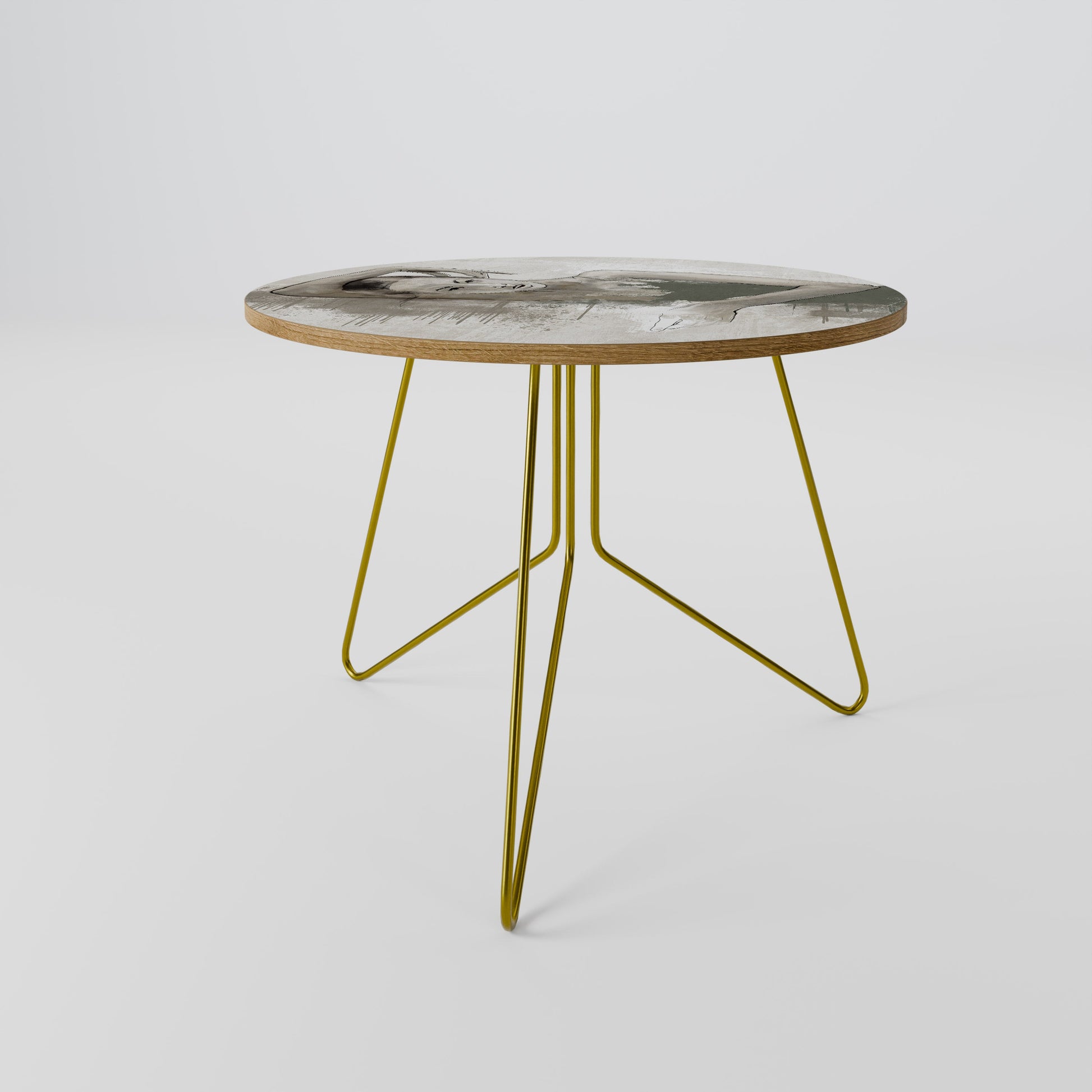 - Gambe con pinna dorata / Bordo del piano del tavolo effetto rovere