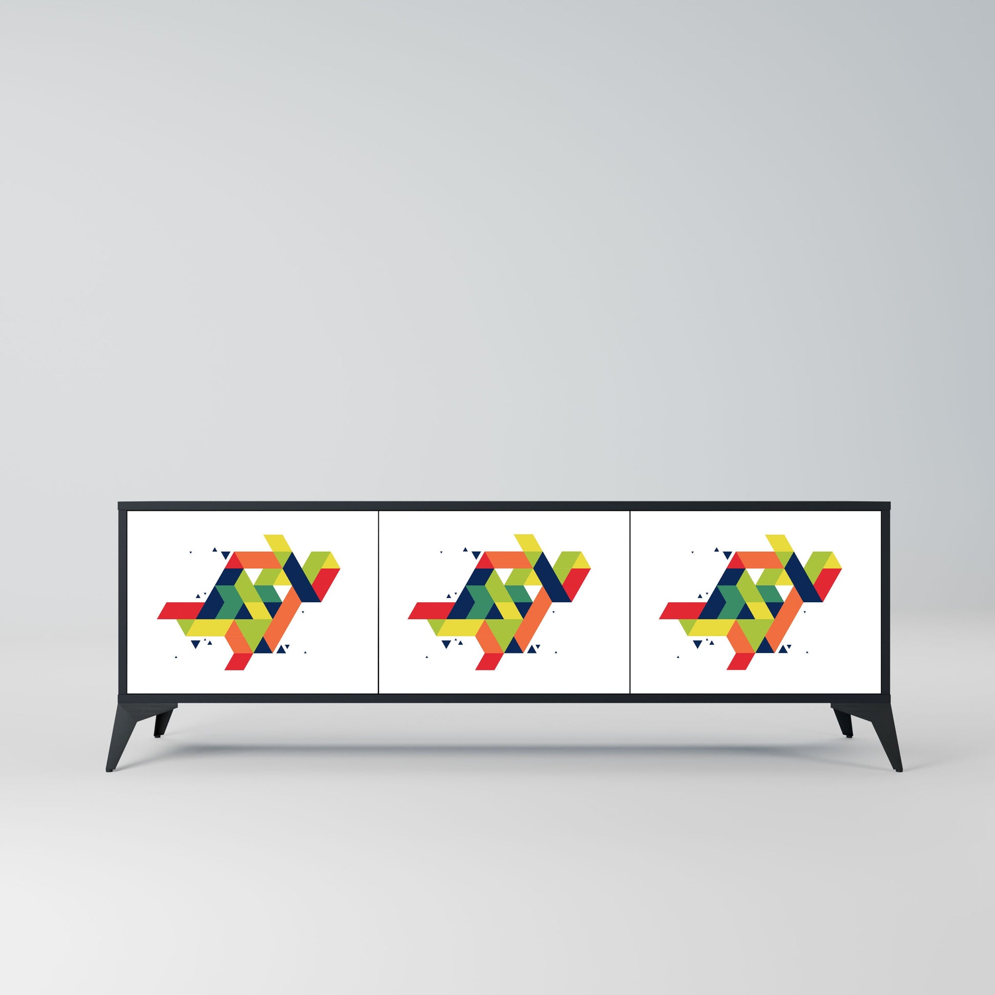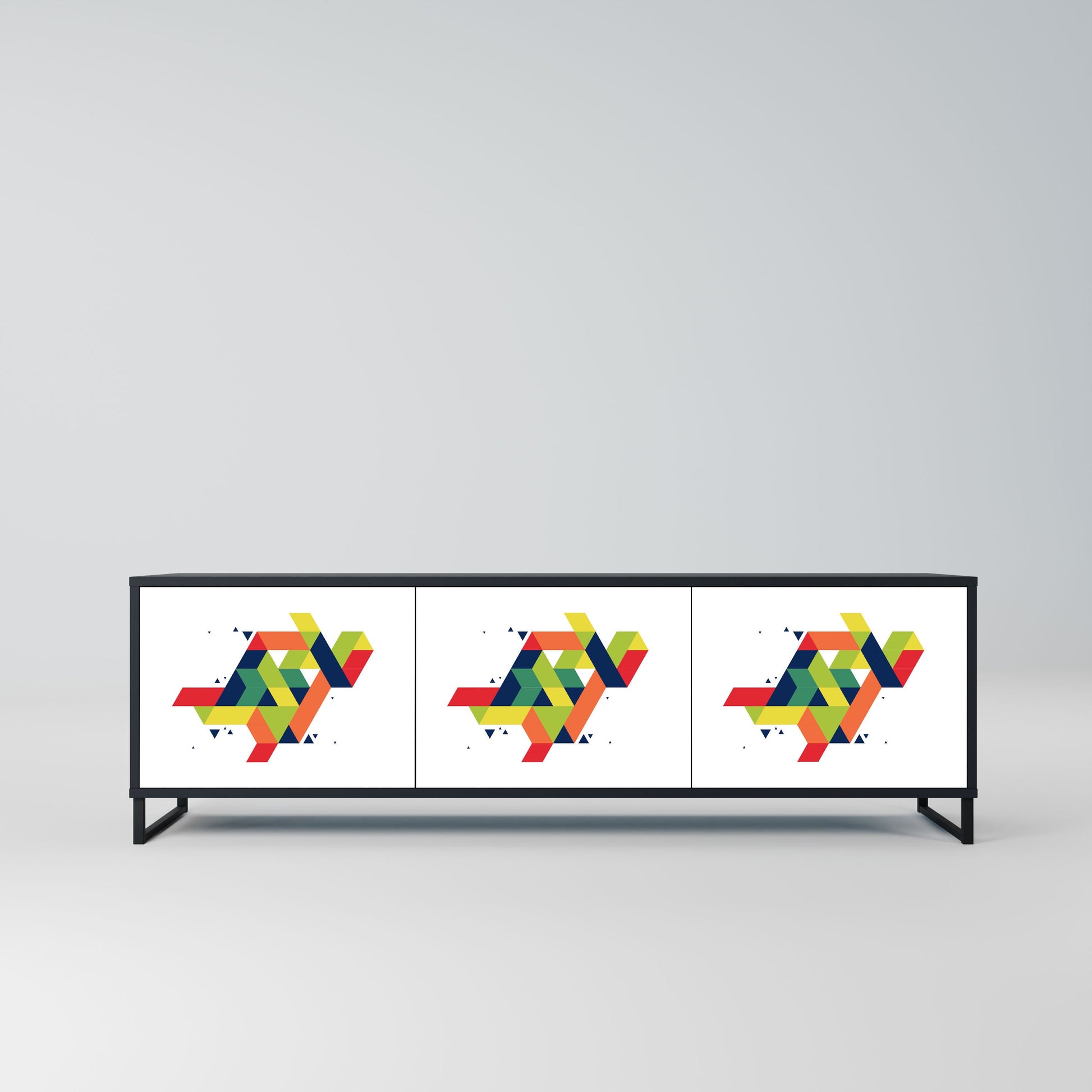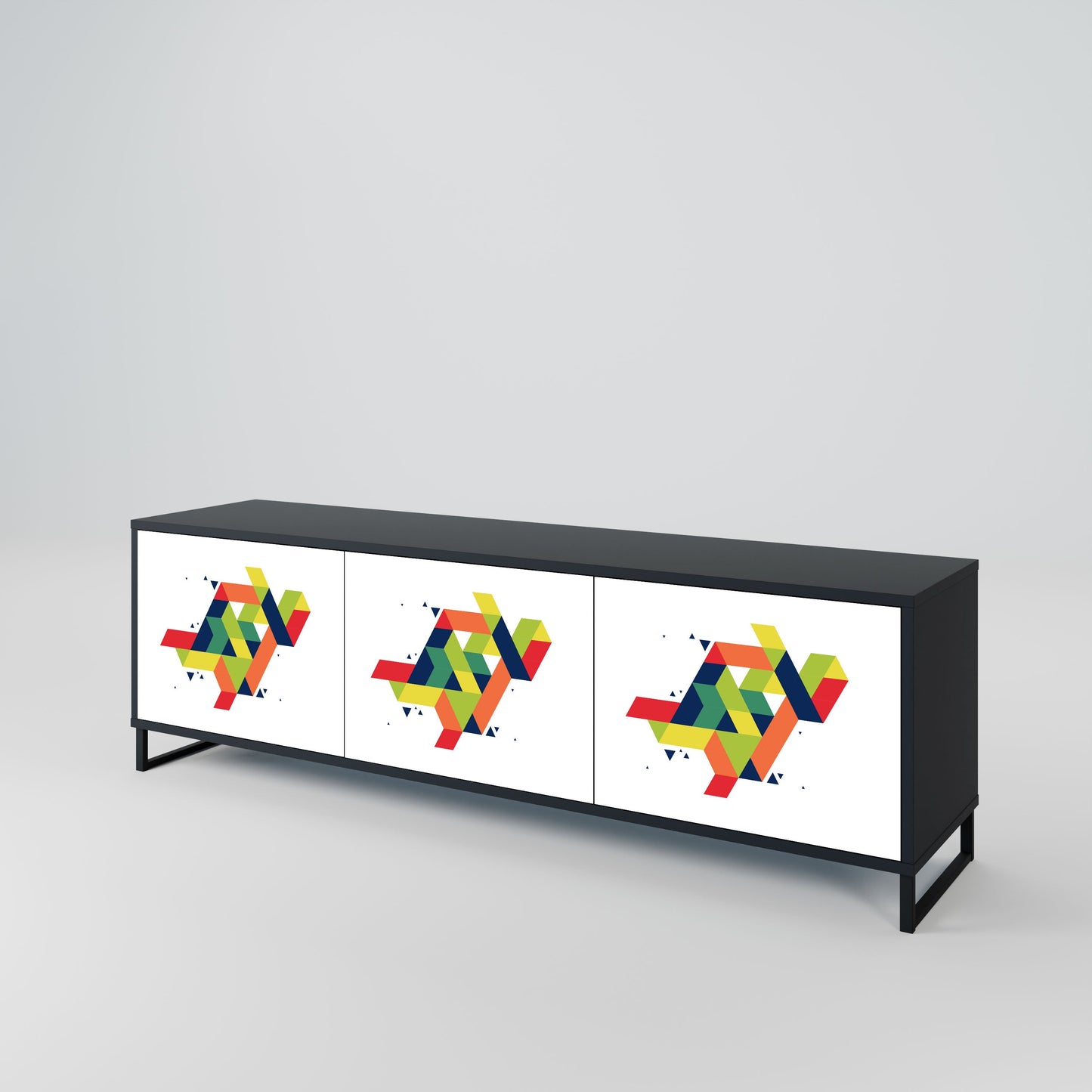 Il corpo nero del supporto crea un accento audace e moderno che si abbina magnificamente ad allestimenti industriali e minimalisti. I frontali con una stampa di design aggiungono carattere e unicità, rendendo questo pezzo non solo pratico ma anche un elemento decorativo di spicco.