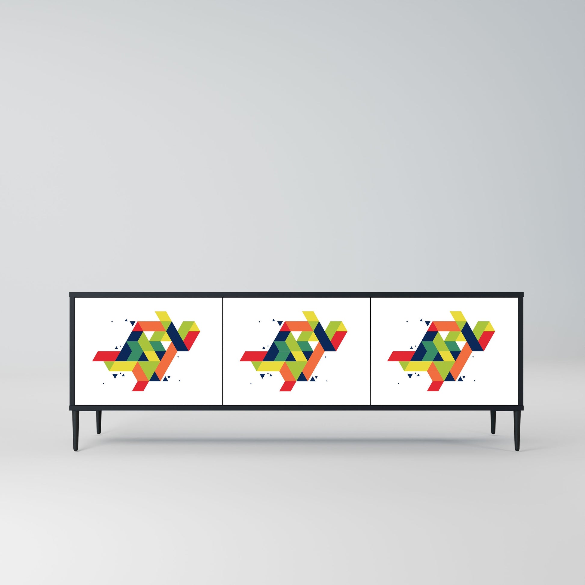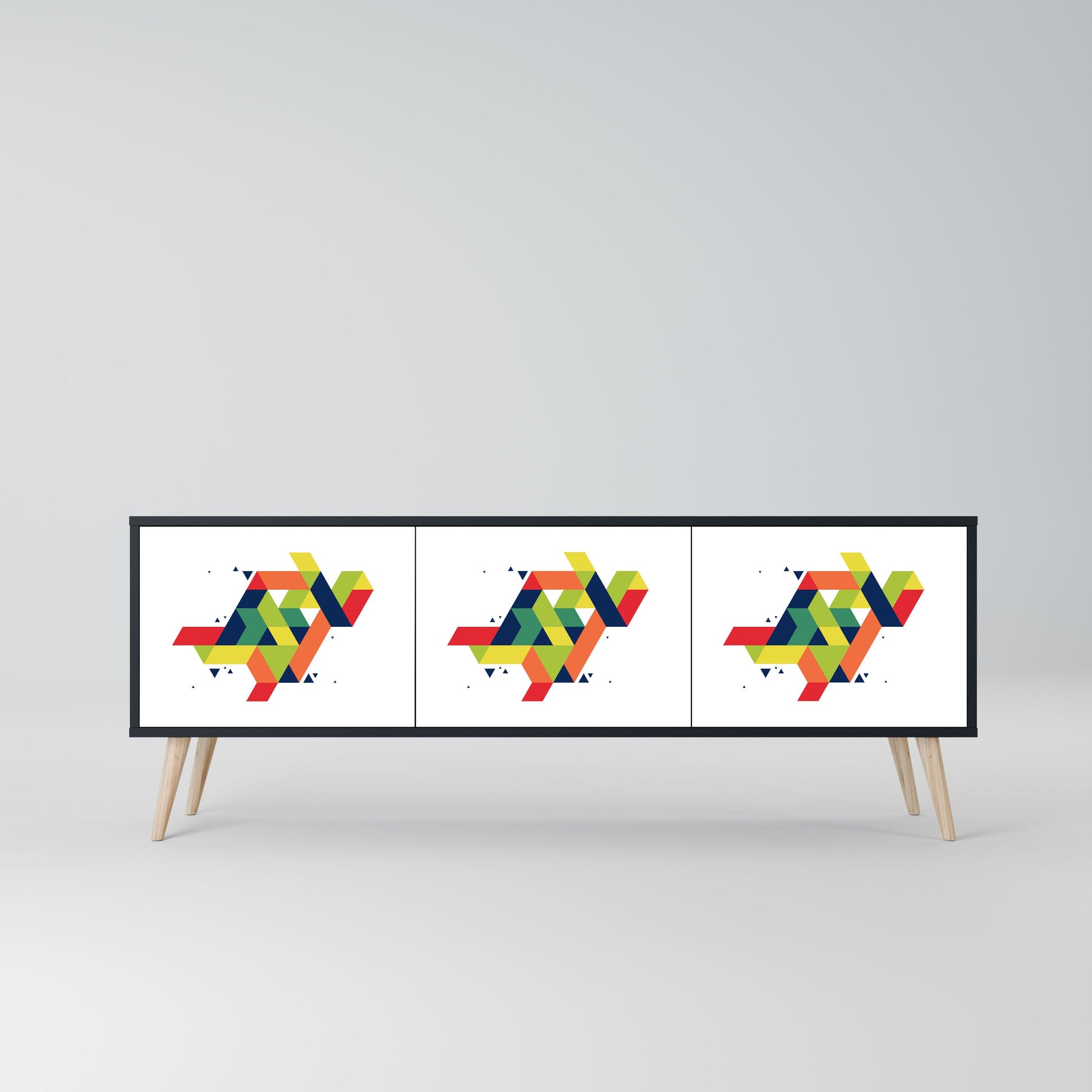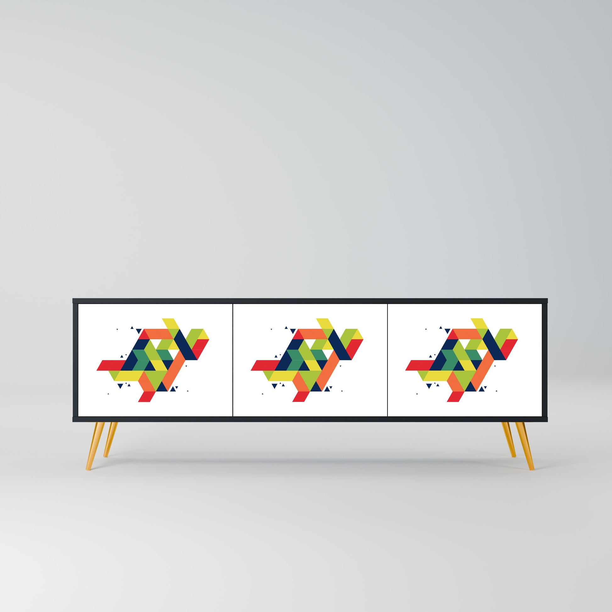 Il corpo nero del supporto crea un accento audace e moderno che si abbina magnificamente ad allestimenti industriali e minimalisti. I frontali con una stampa di design aggiungono carattere e unicità, rendendo questo pezzo non solo pratico ma anche un elemento decorativo di spicco.