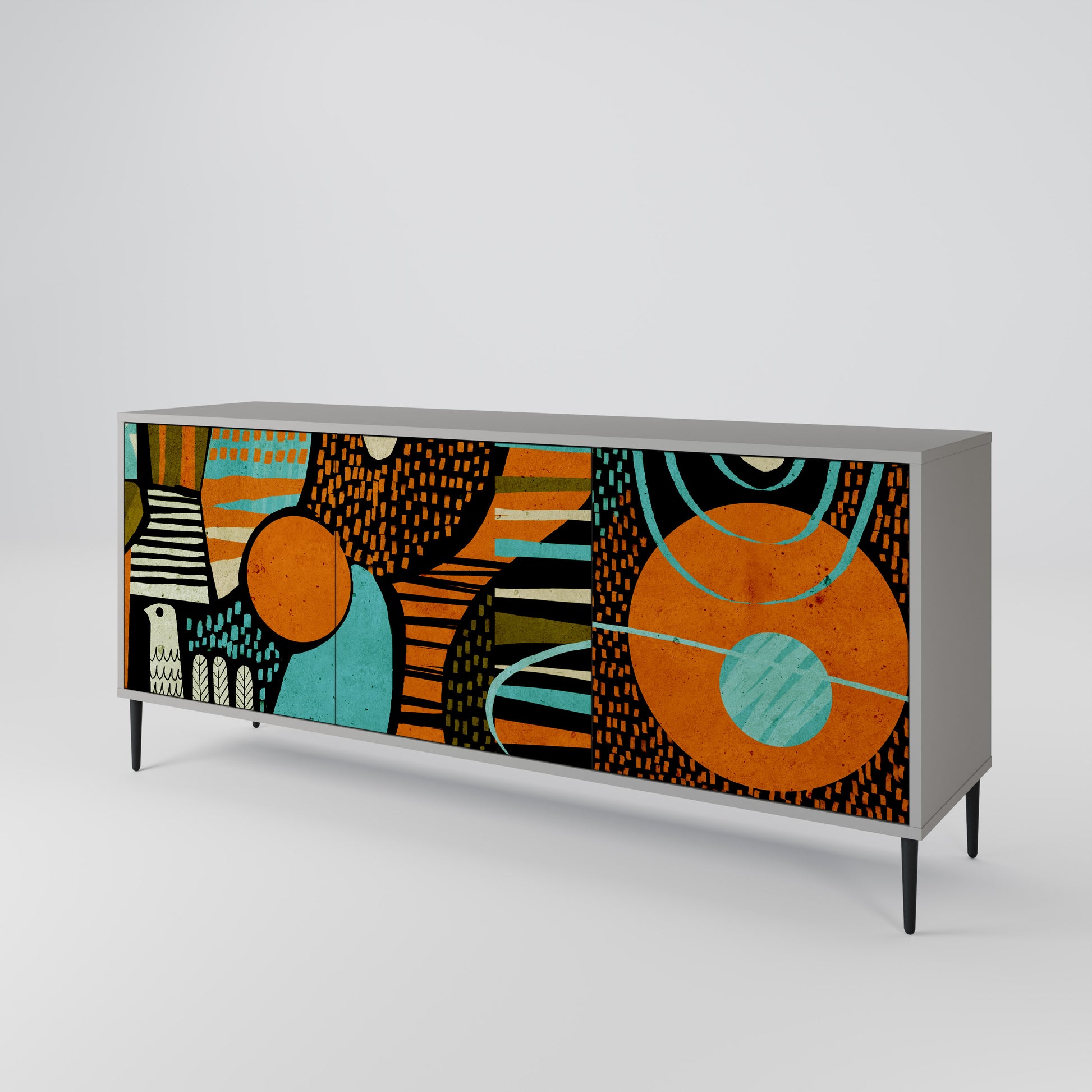 Eleganza e funzionalità in un unico mobile: la nostra credenza a 3 ante con struttura grigia è la soluzione perfetta per gli amanti degli interni eleganti e moderni. La struttura grigia enfatizza il carattere raffinato del mobile, mentre i frontali con una stampa esclusiva aggiungono un tocco artistico. Si adatta perfettamente al soggiorno, alla camera da letto o all'ufficio, completando sia gli arredi moderni che quelli industriali.