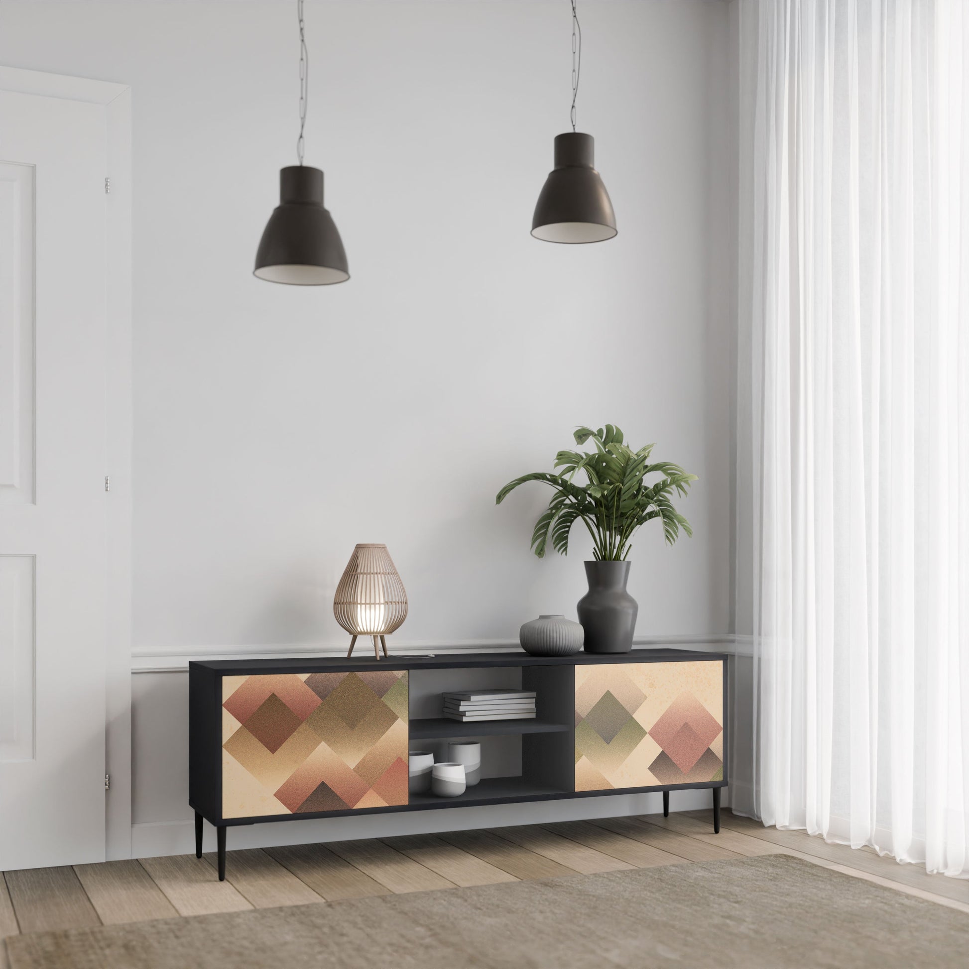 Mobile TV GEOMETRIC FUSION a 2 ante in finitura nera