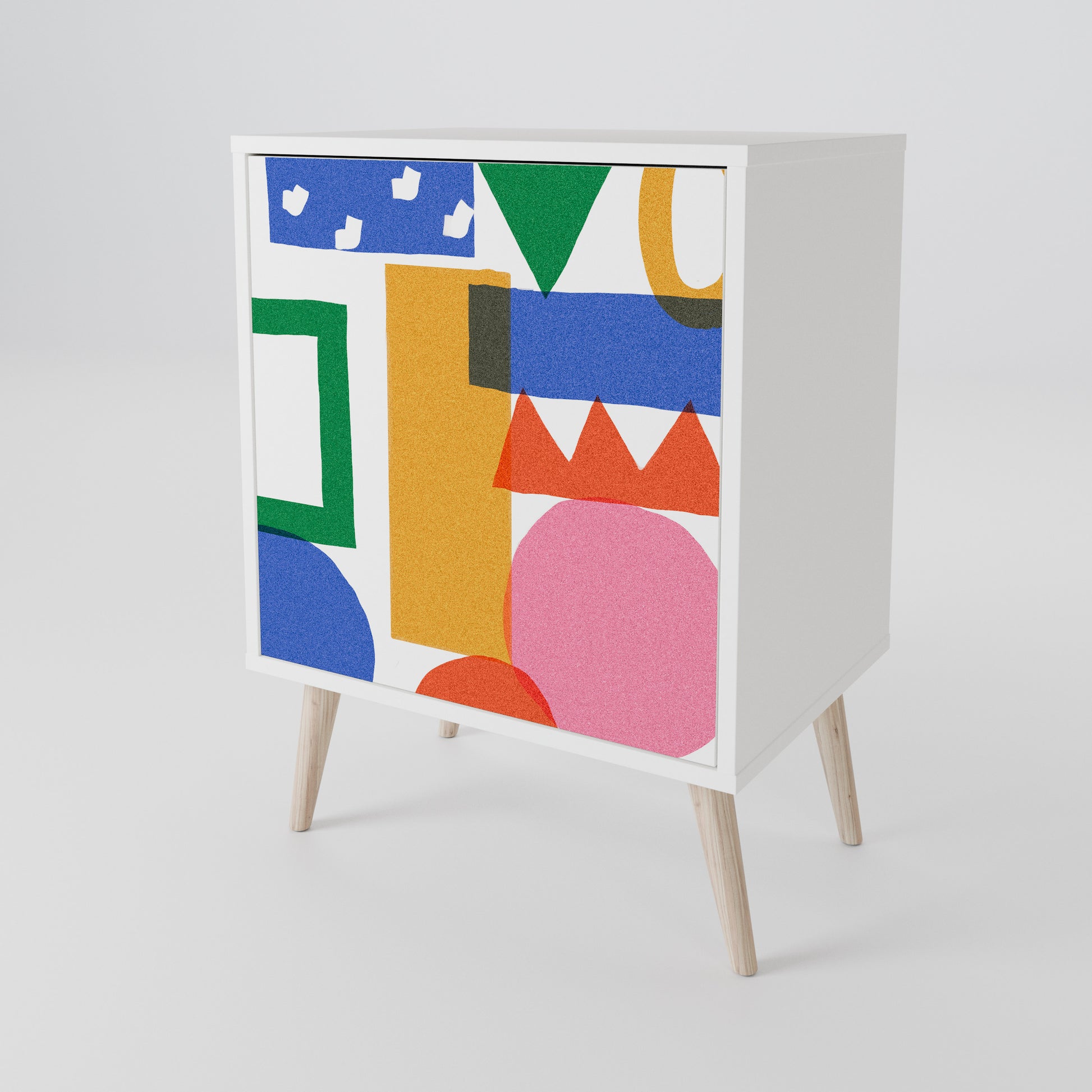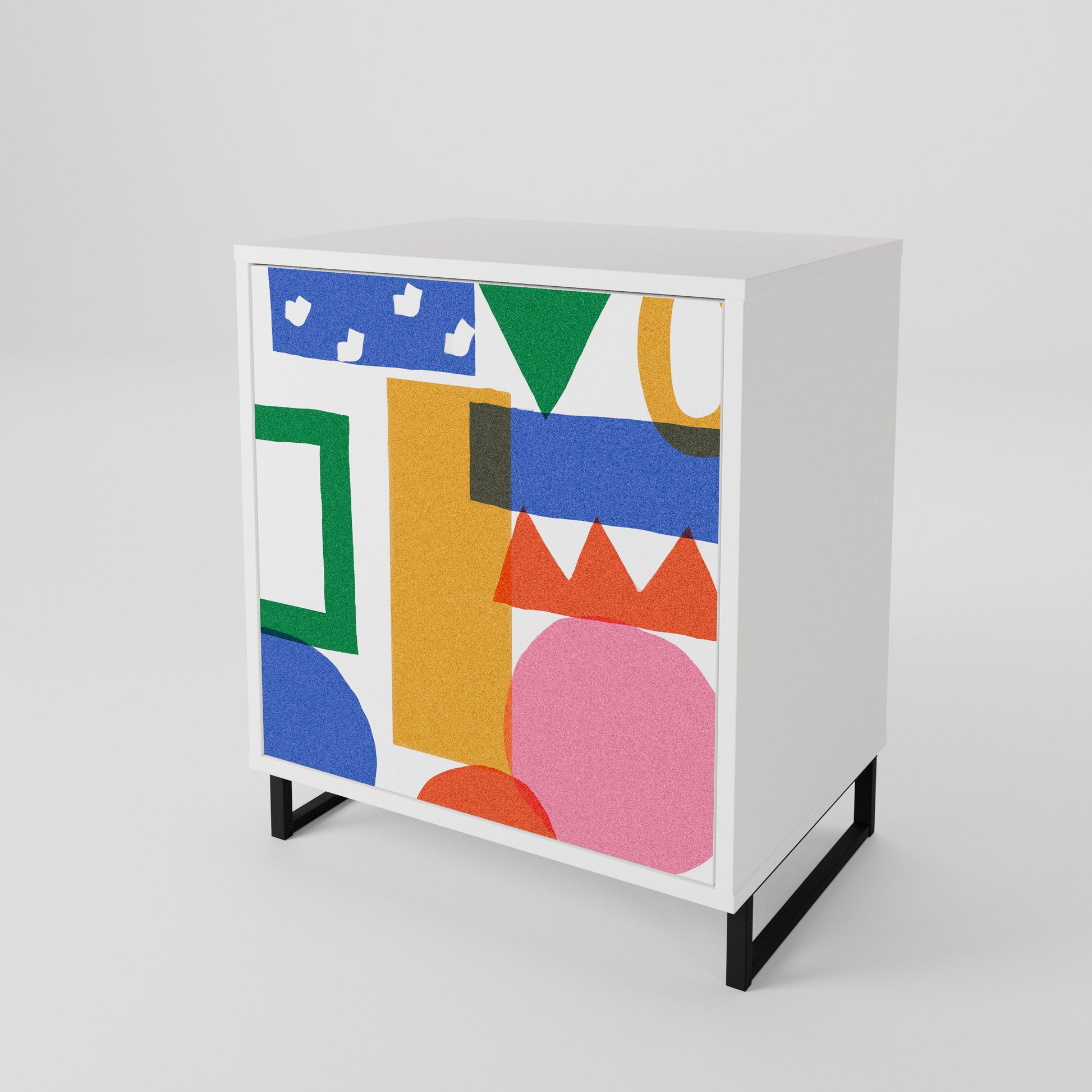 Questo mobile compatto ma straordinariamente elegante colpisce per il suo design minimalista, adattandosi perfettamente sia ad interni moderni che classici. Il colore bianco candido del corpo conferisce al mobile un carattere luminoso e rinfrescante, mentre i frontali con una stampa unica aggiungono un tocco artistico.