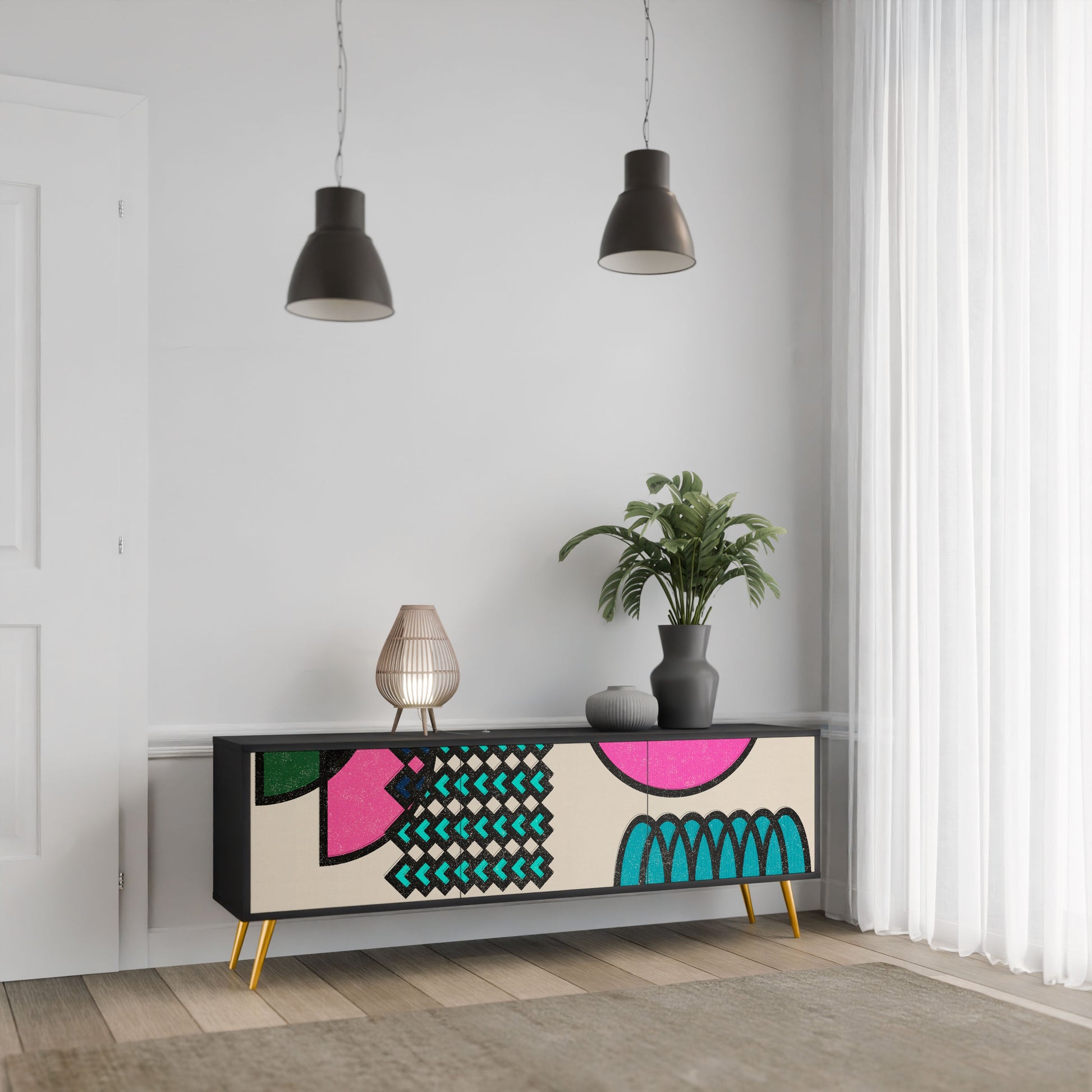 Mobile TV GEOMETRIC RHAPSODY a 3 ante con finitura nera