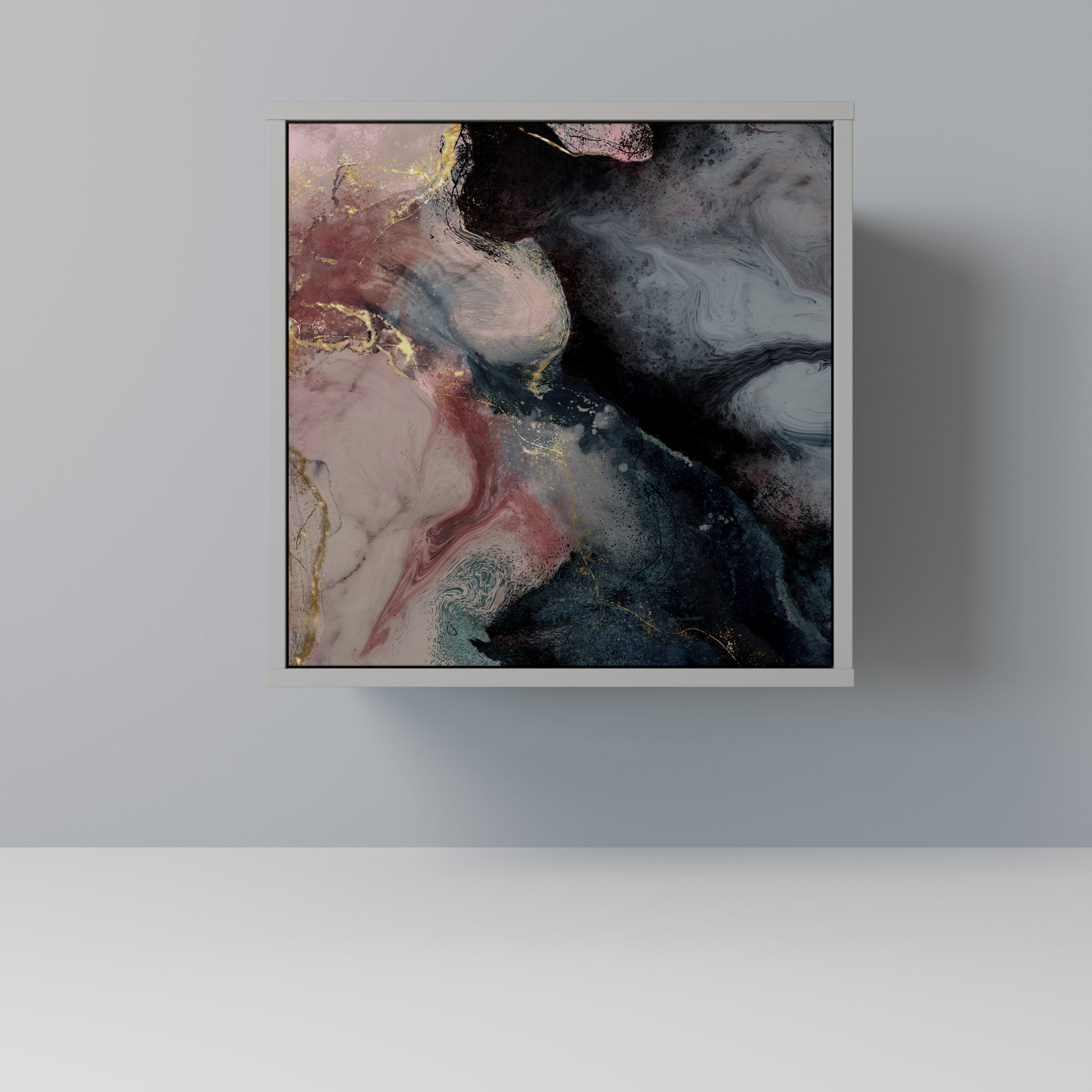 Questo mobile compatto ma straordinariamente elegante colpisce per il suo design minimalista, che si adatta perfettamente sia agli interni moderni che a quelli classici. Il tenue colore grigio della struttura conferisce al mobile un carattere discreto ma distintivo, mentre i frontali con una stampa esclusiva aggiungono un tocco artistico.