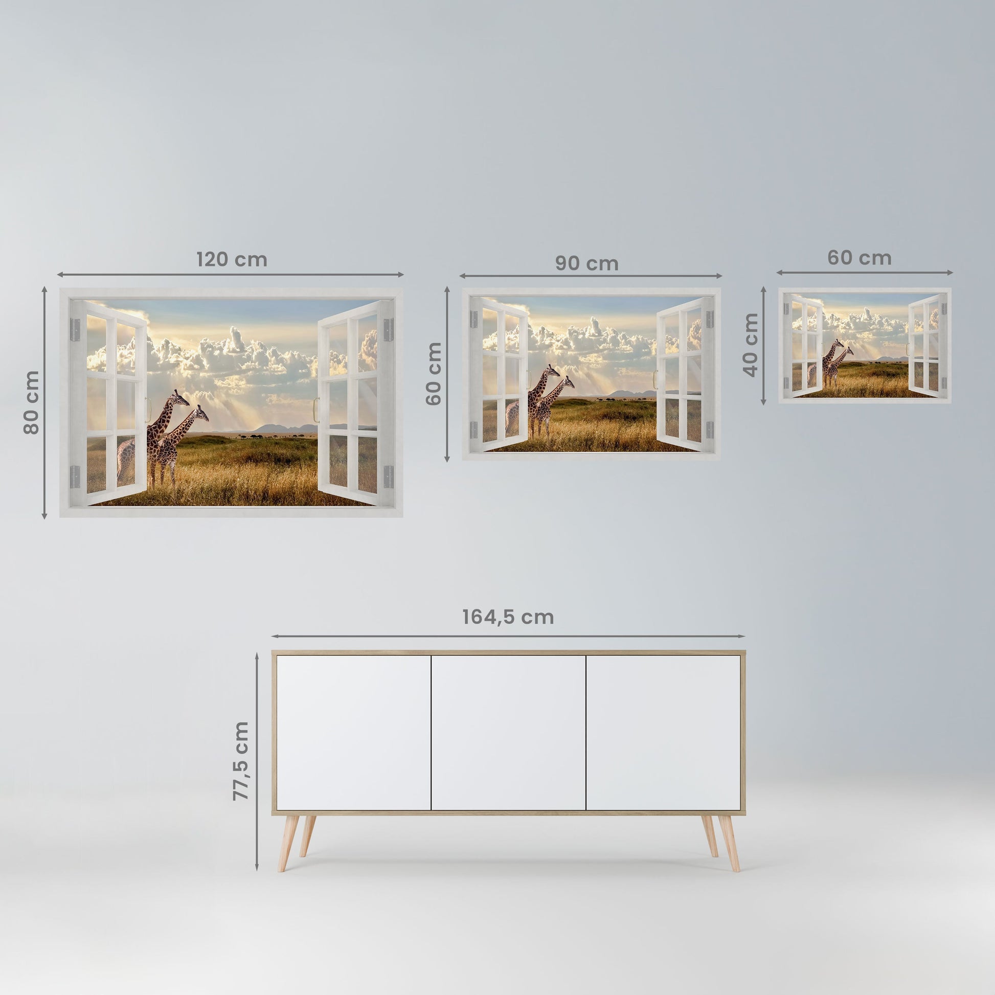 FINESTRA SGUARDO GIRAFFA Poster orizzontale staccabile e attaccabile