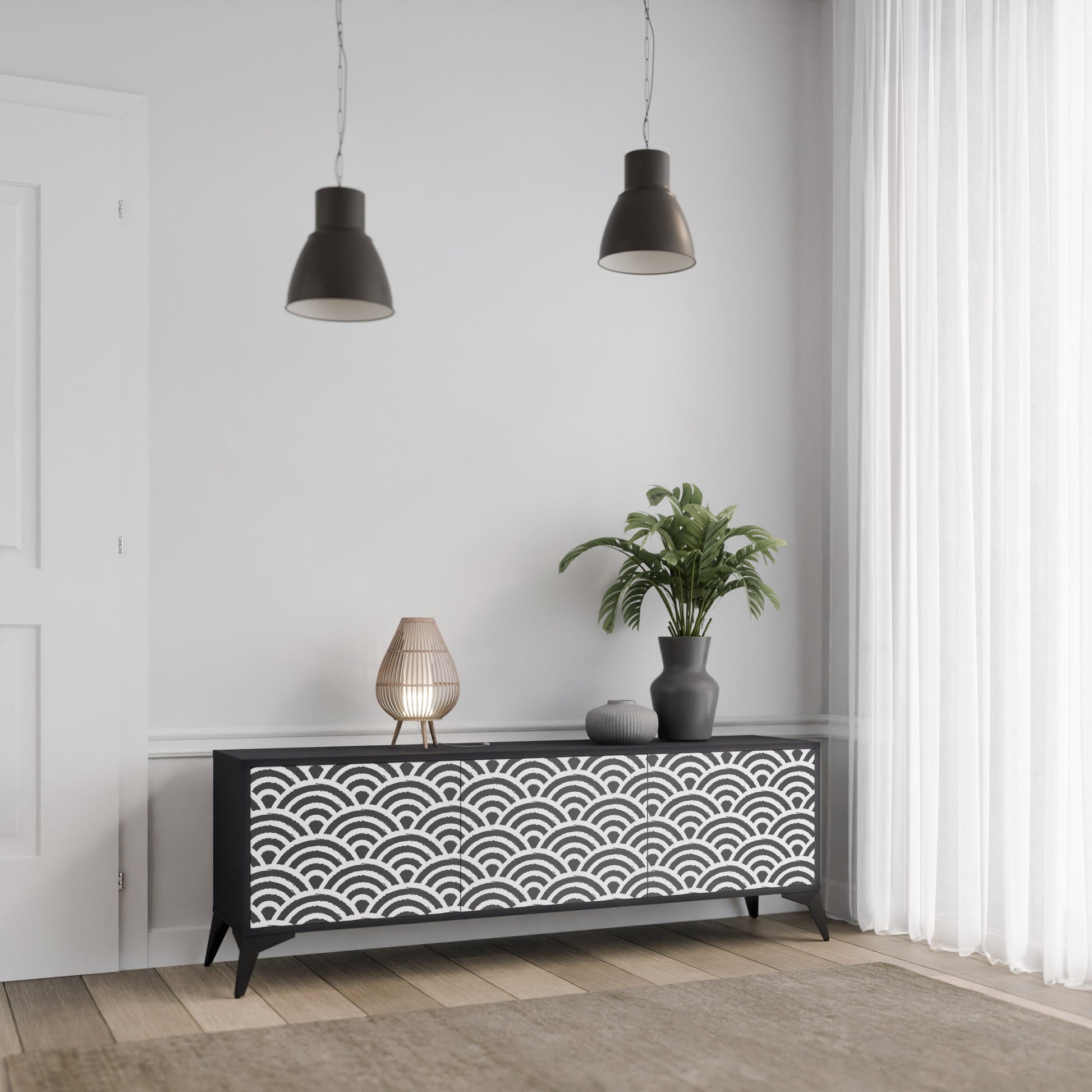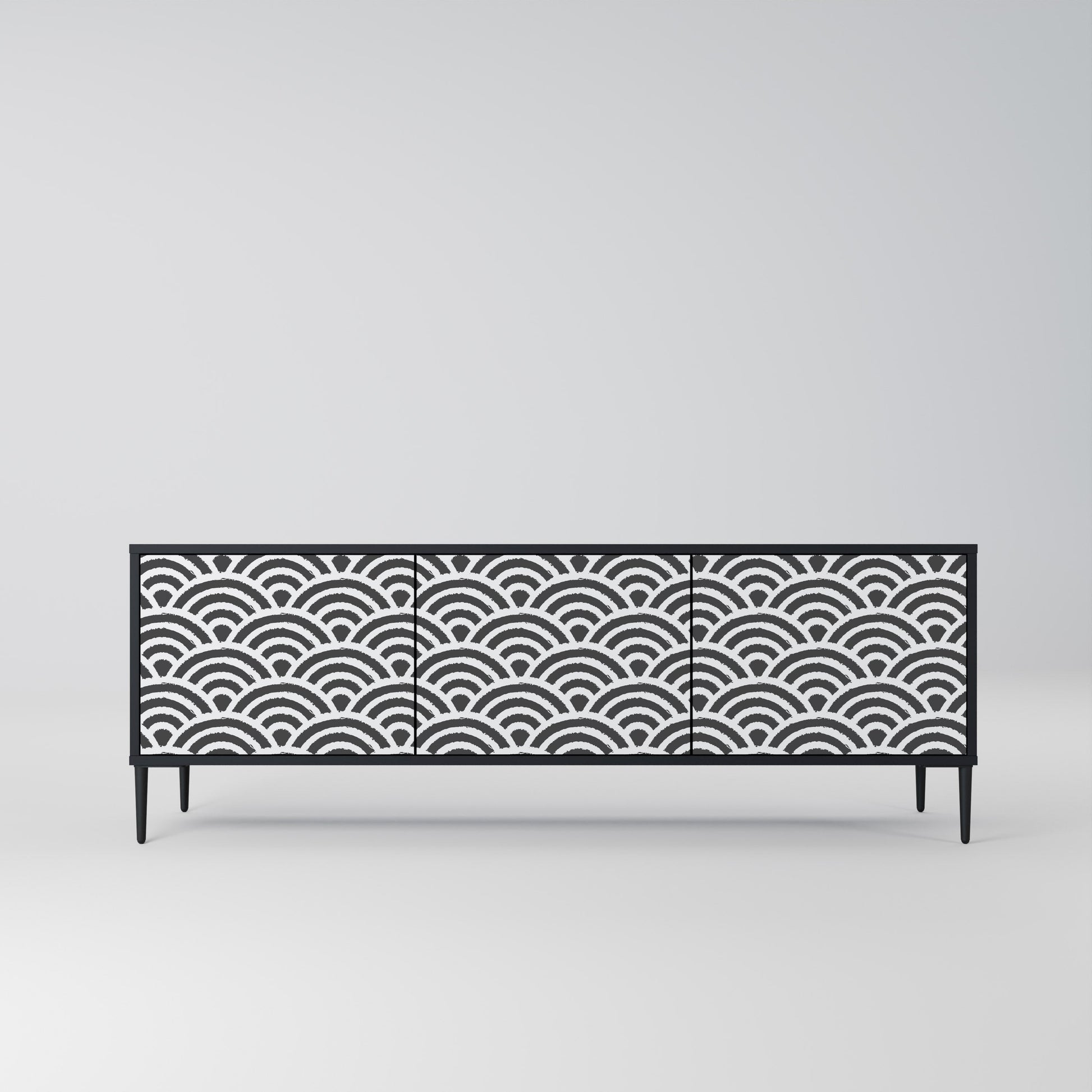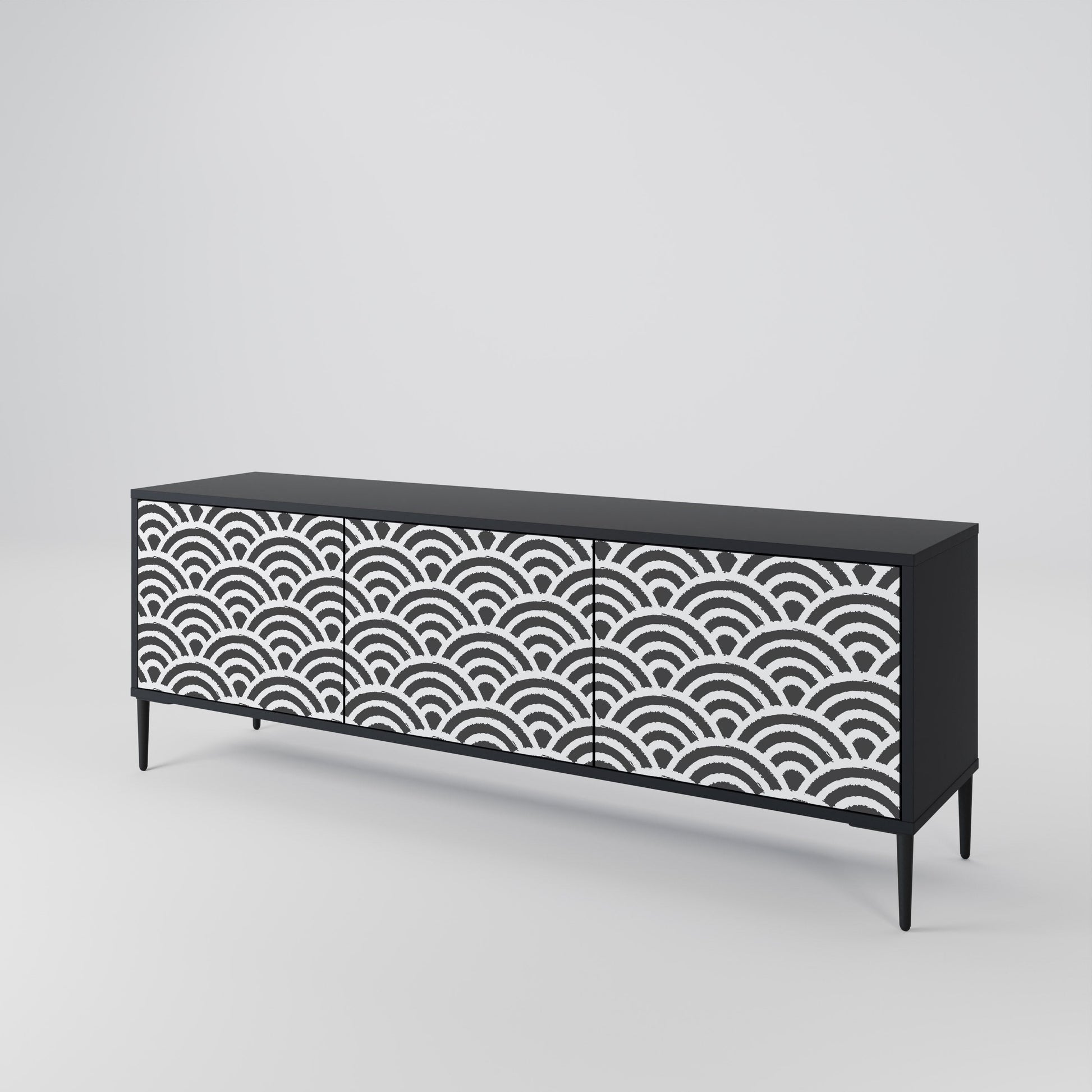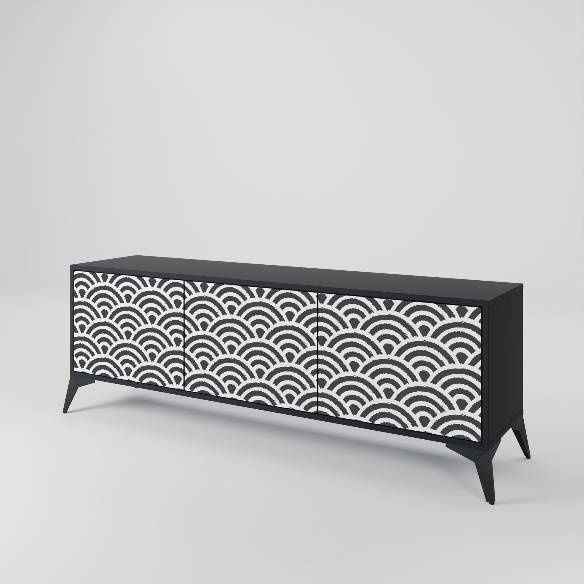 Il corpo nero del supporto crea un accento audace e moderno che si abbina magnificamente ad allestimenti industriali e minimalisti. I frontali con una stampa di design aggiungono carattere e unicità, rendendo questo pezzo non solo pratico ma anche un elemento decorativo di spicco.