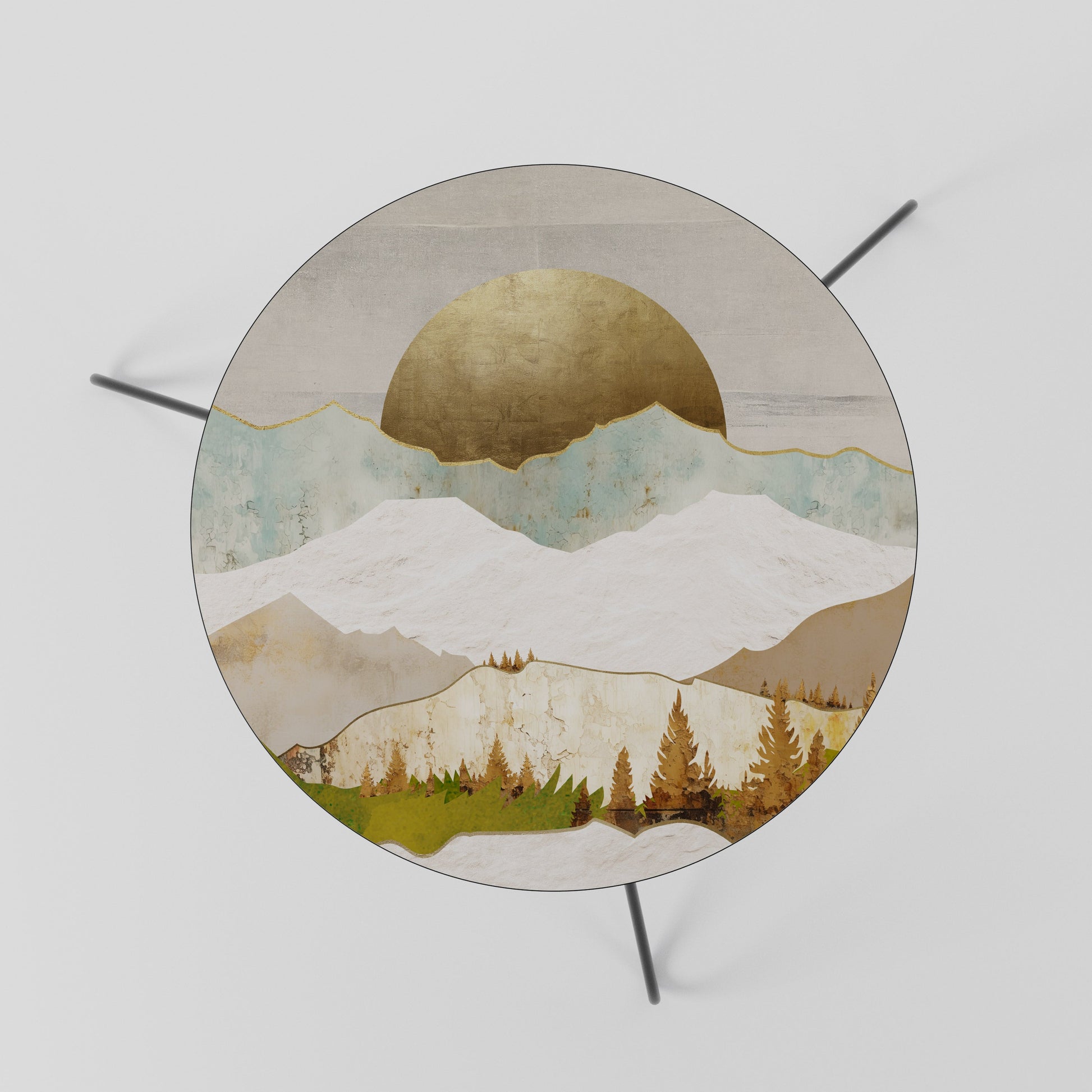 Il piano del tavolo presenta un motivo stampato di alta qualità, che aggiunge un tocco artistico distintivo al tuo spazio. Realizzato in resistente truciolato rivestito in laminato, garantisce un utilizzo duraturo e resistenza all'usura quotidiana.