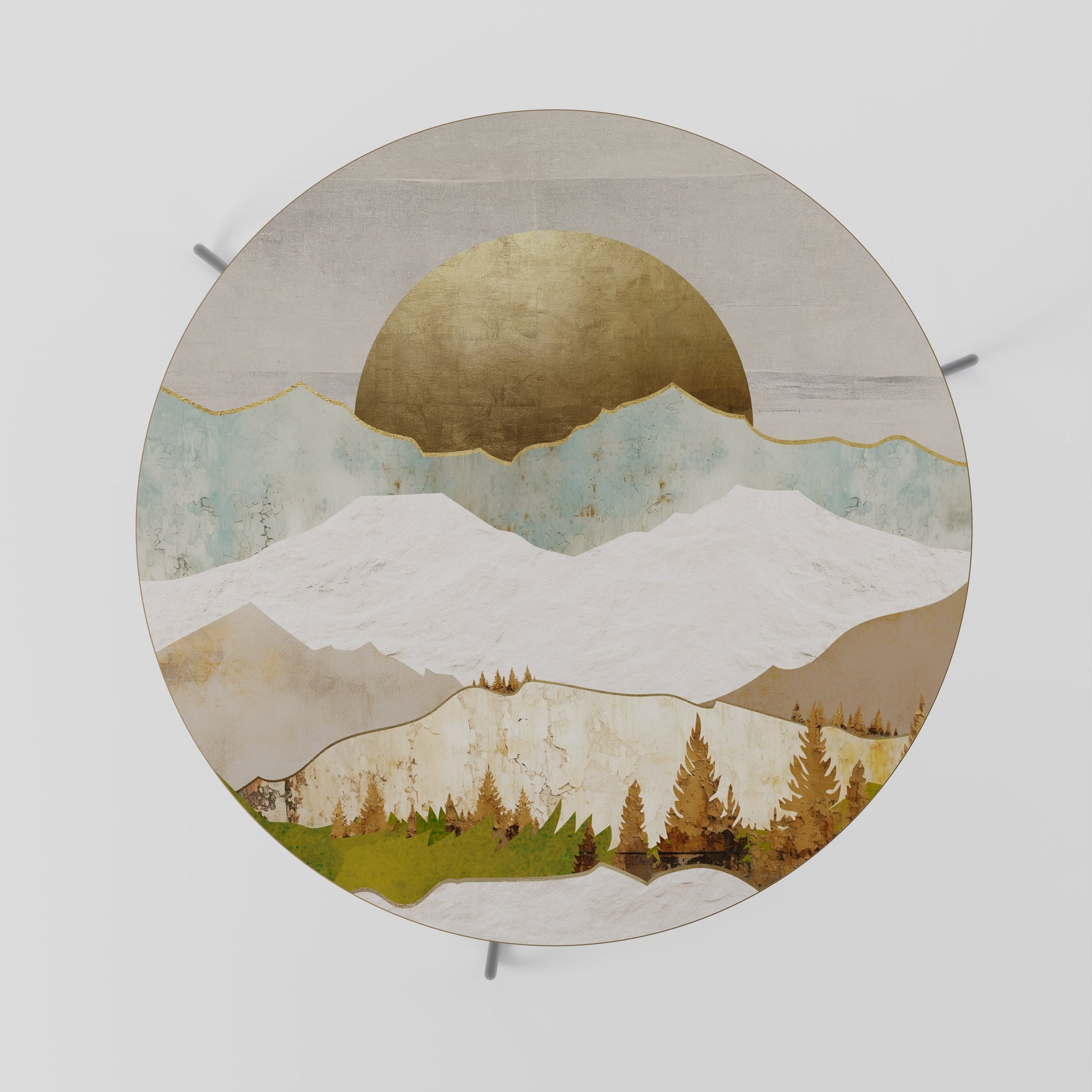 Il piano del tavolo presenta un motivo stampato di alta qualità, che aggiunge un tocco artistico distintivo al tuo spazio. Realizzato in resistente truciolato rivestito in laminato, garantisce un utilizzo duraturo e resistenza all'usura quotidiana.