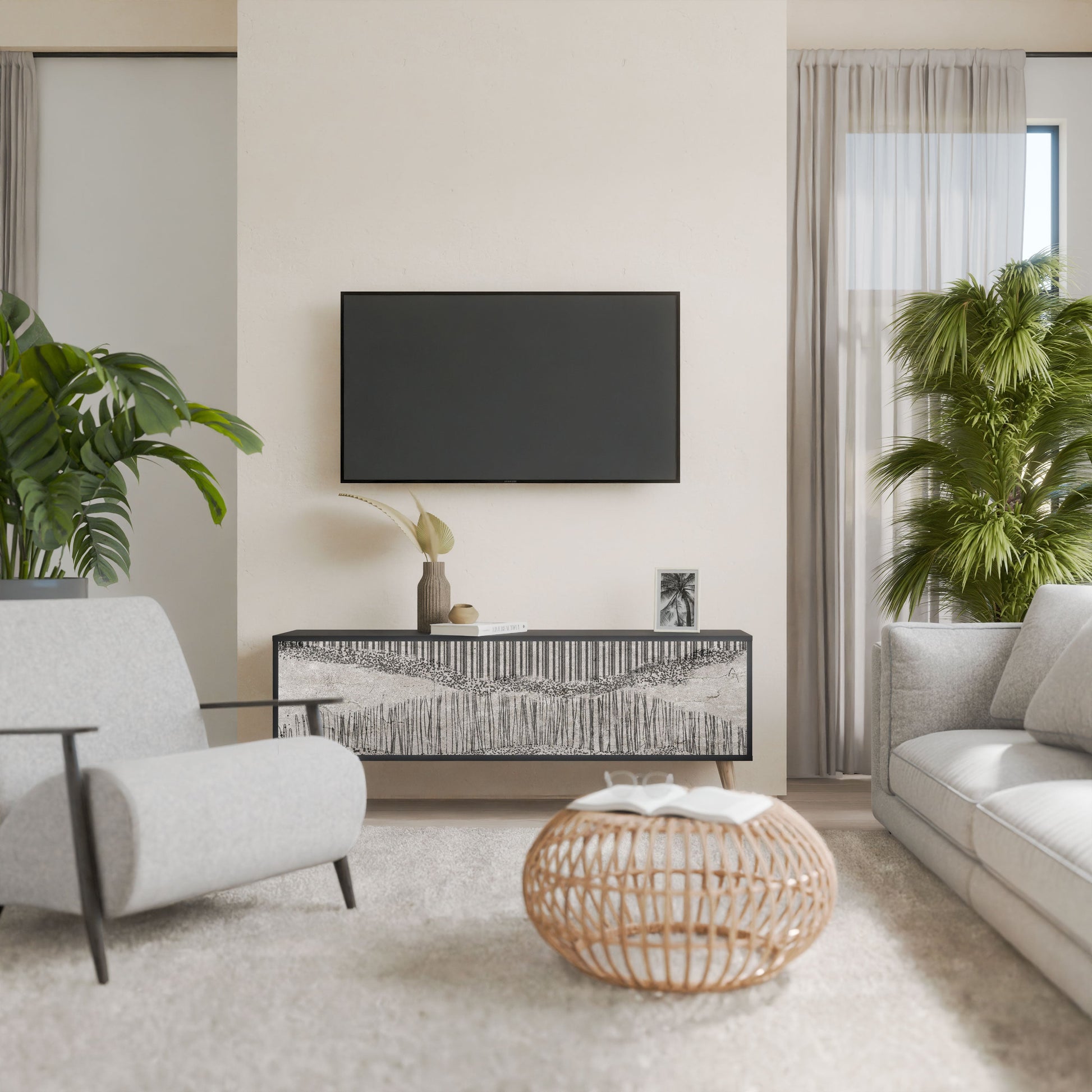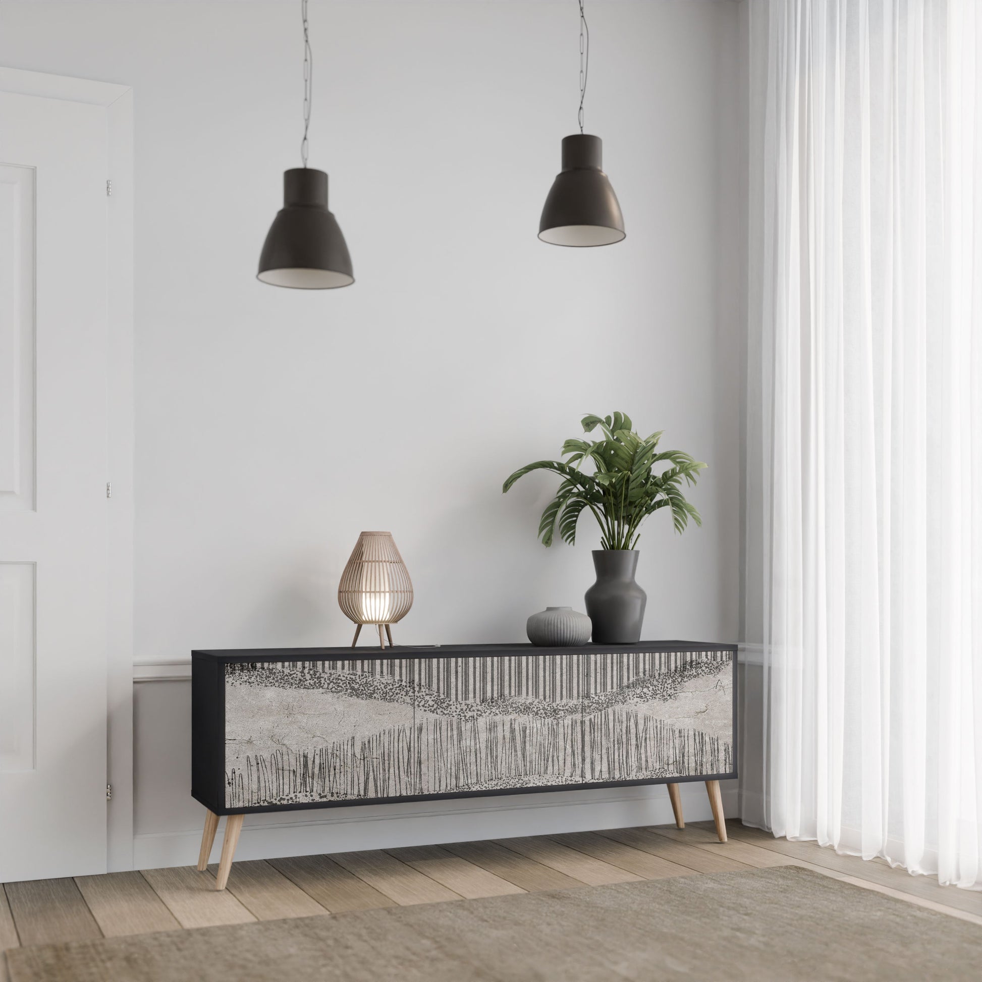 Mobile TV a 3 ante GRAIN LINES in finitura nera