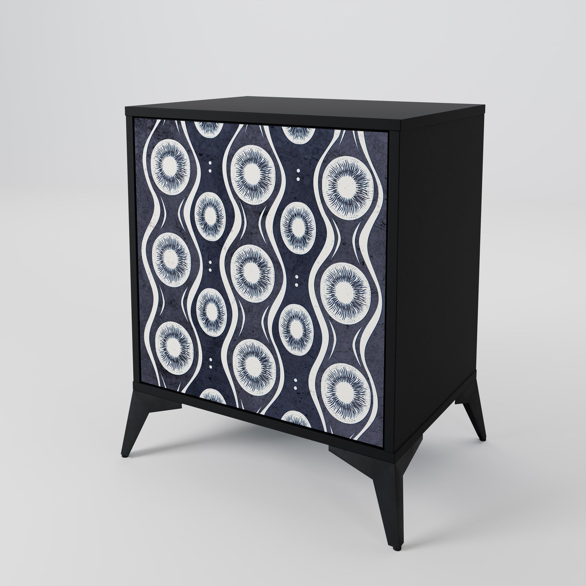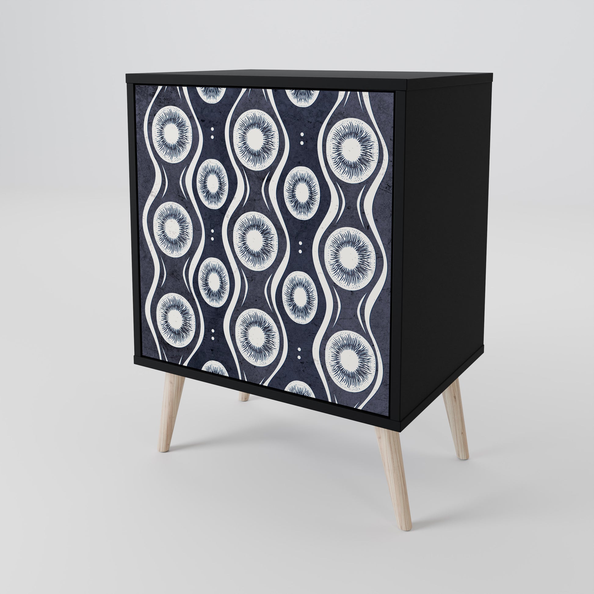 Questo mobile compatto ma straordinariamente elegante colpisce per il suo design minimalista, che si adatta perfettamente sia agli interni moderni che a quelli classici. Il corpo nero enfatizza il carattere audace del mobile, mentre i frontali con una stampa esclusiva aggiungono un tocco artistico.